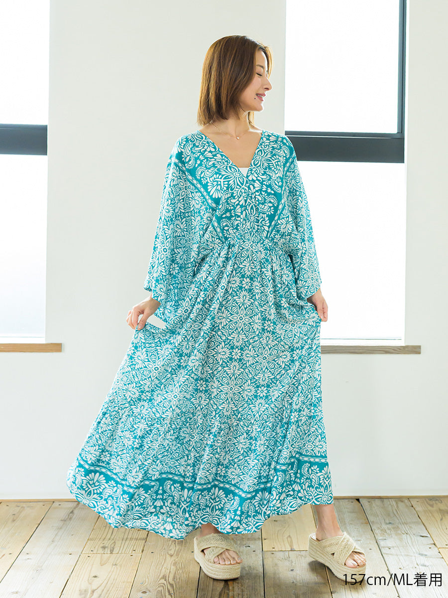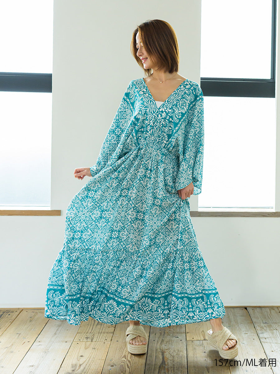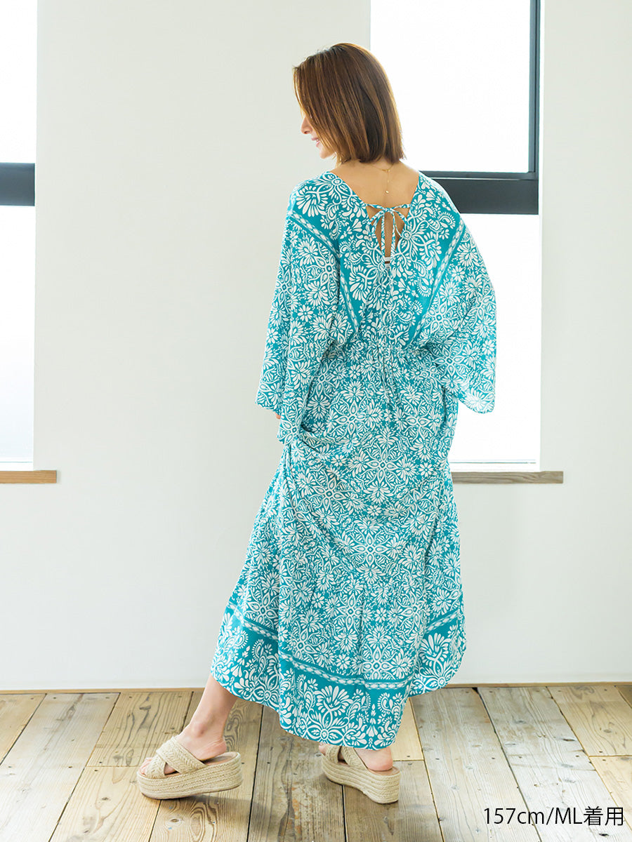 LAUT BLUE(ラウトブルー)ペイズリー柄カフタンワンピース