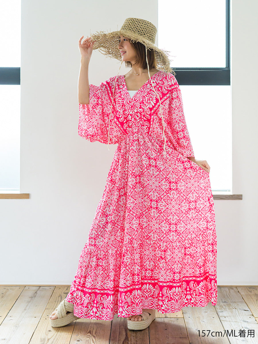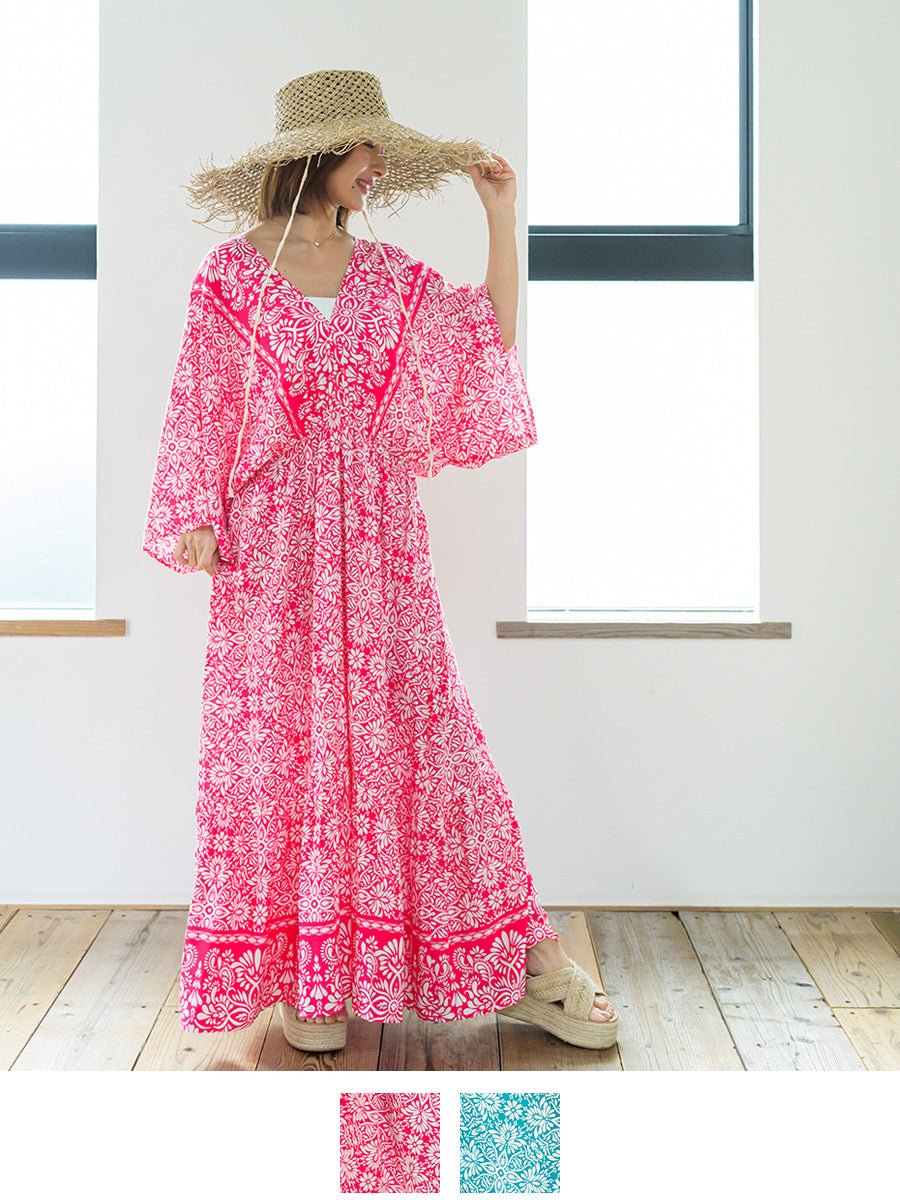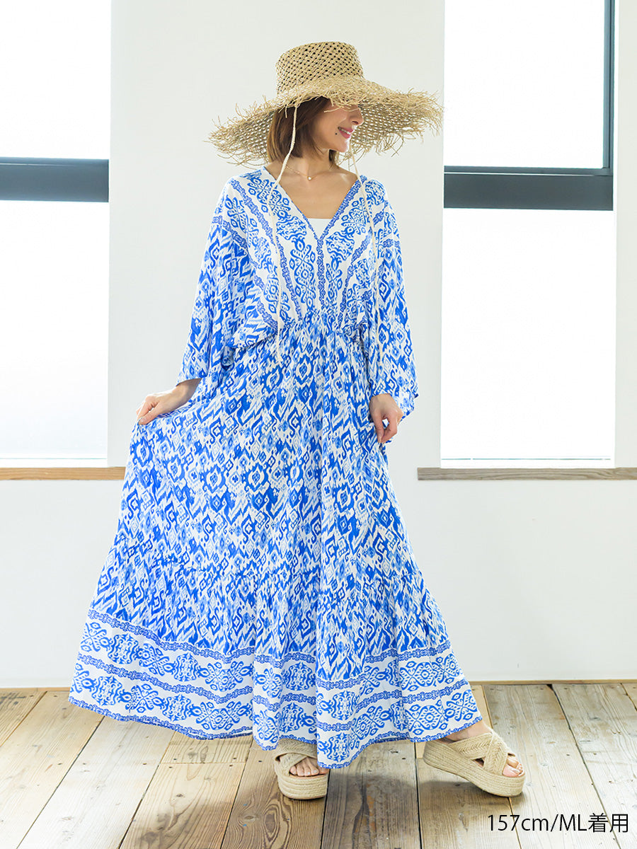 LAUT BLUE(ラウトブルー)ペイズリー柄カフタンワンピース