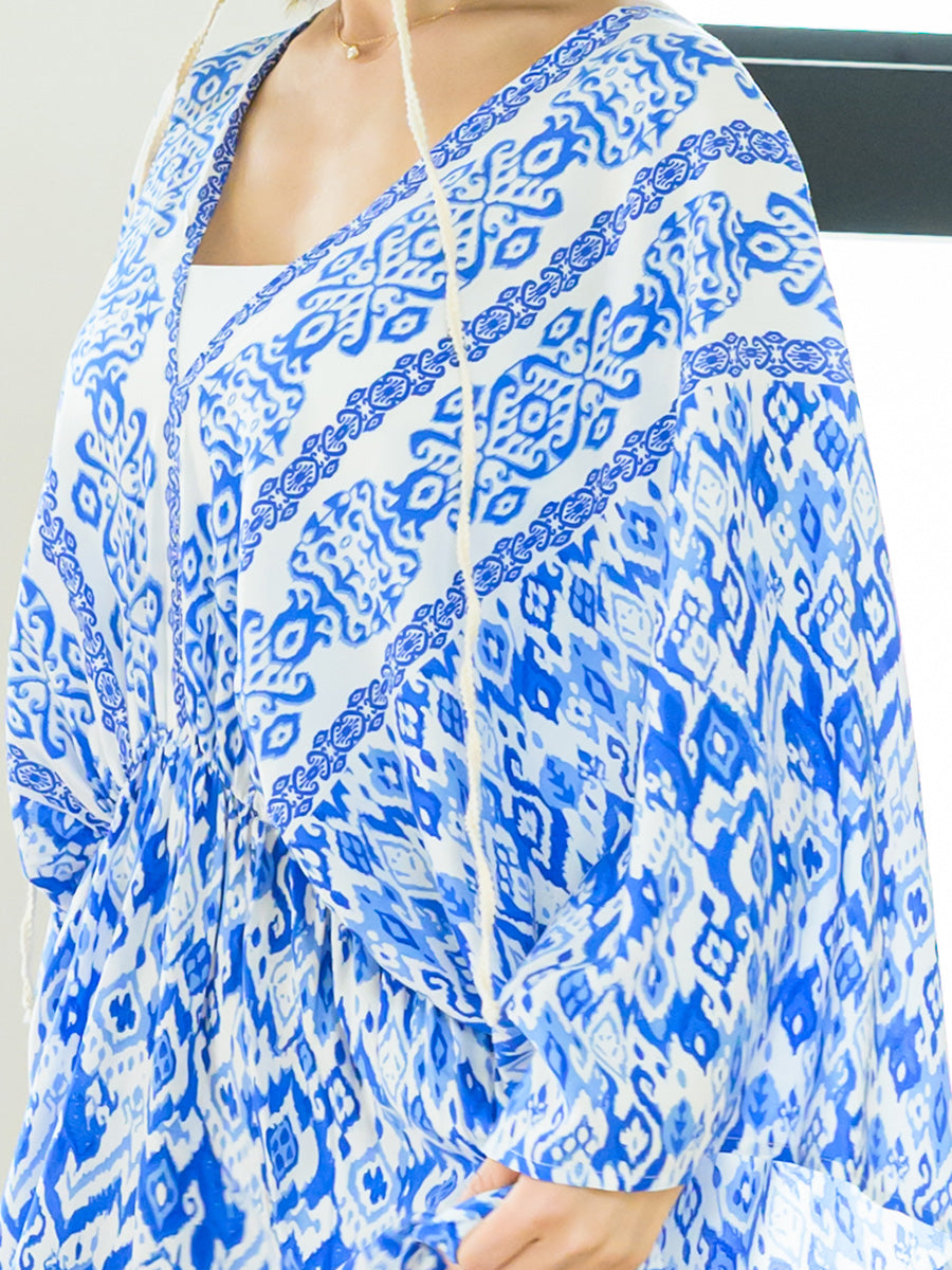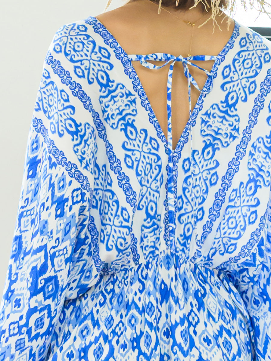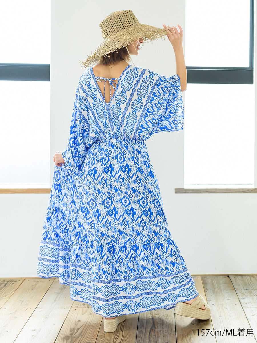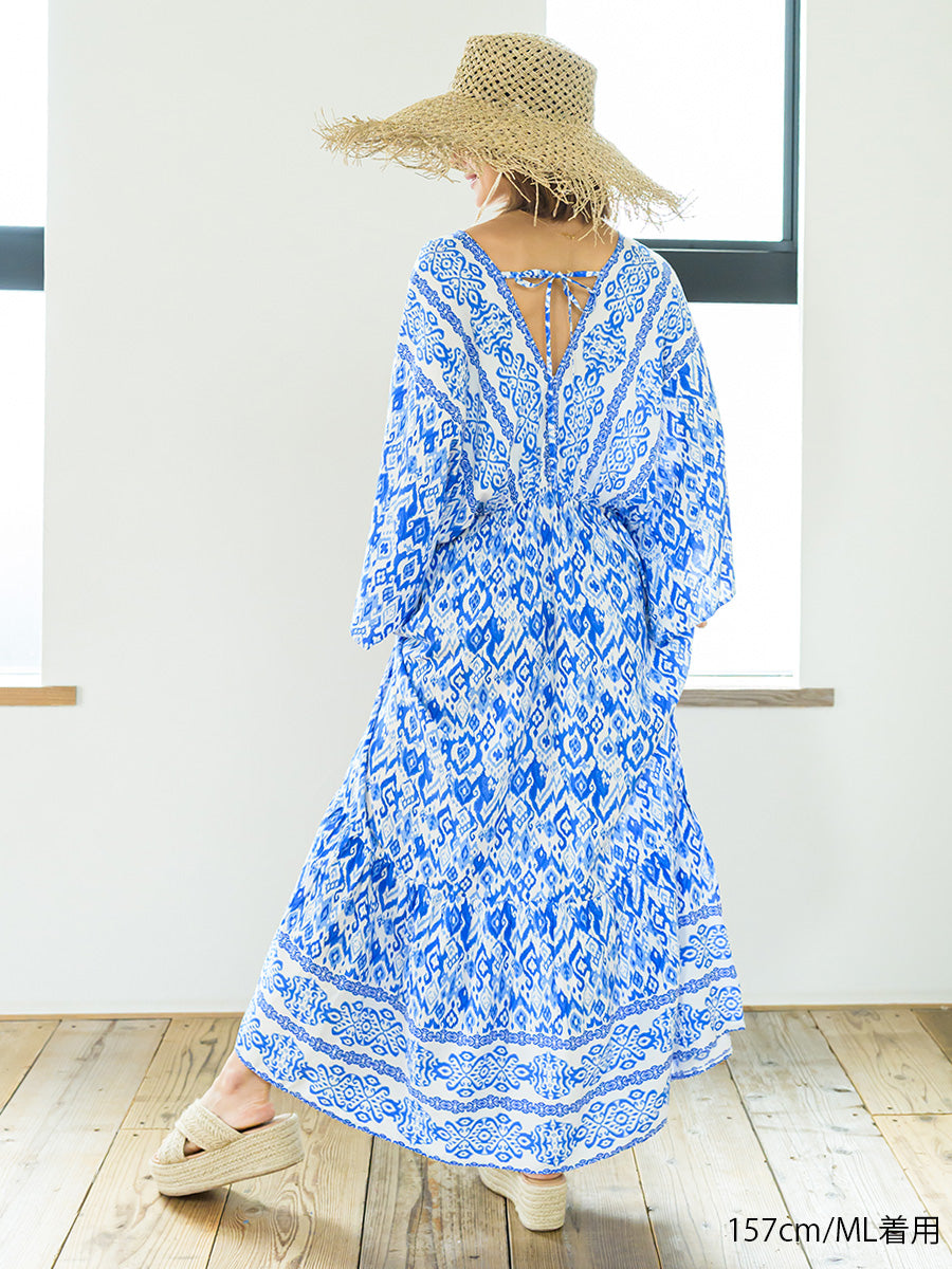 LAUT BLUE(ラウトブルー)オリエンタル柄カフタンワンピース