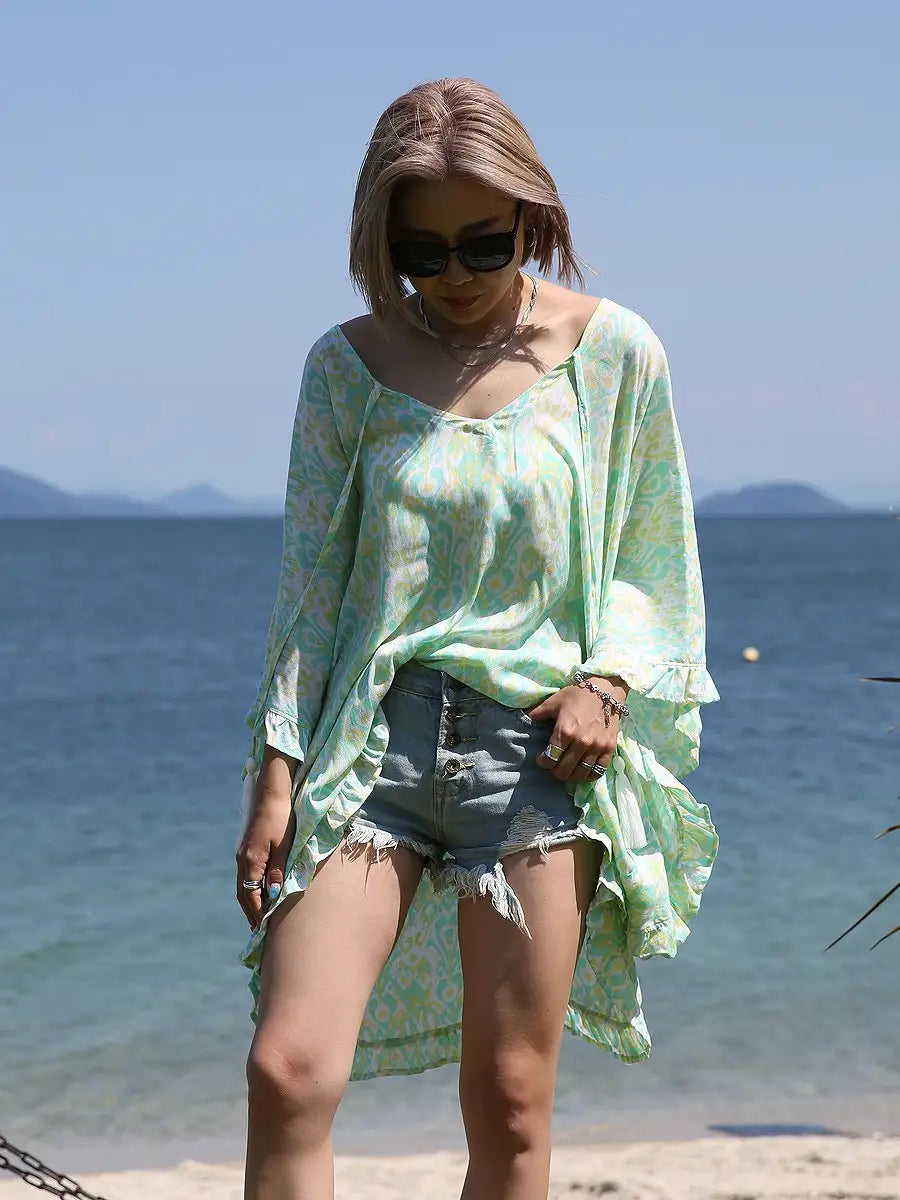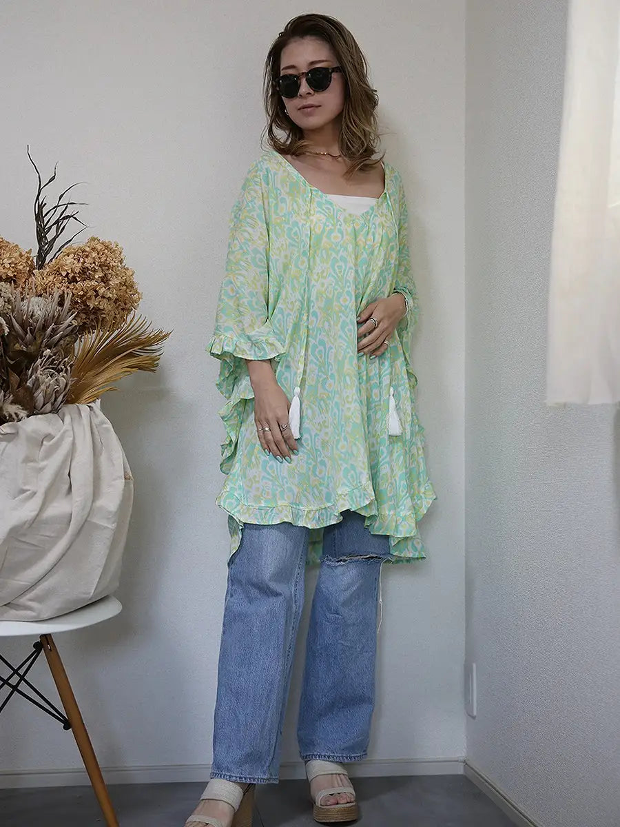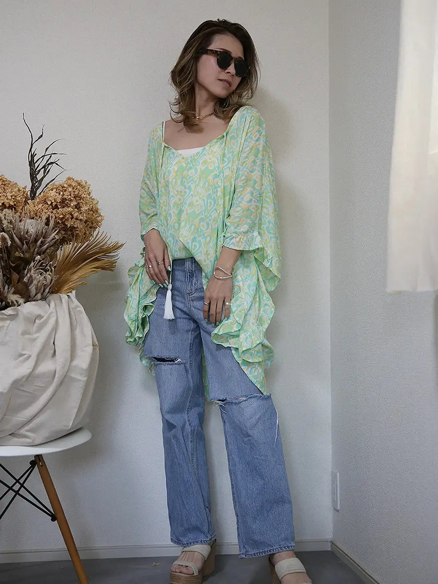 リゾートファッションの重要ポイントは着心地と着映えですが、こちらのチュニックはどちらも叶います。