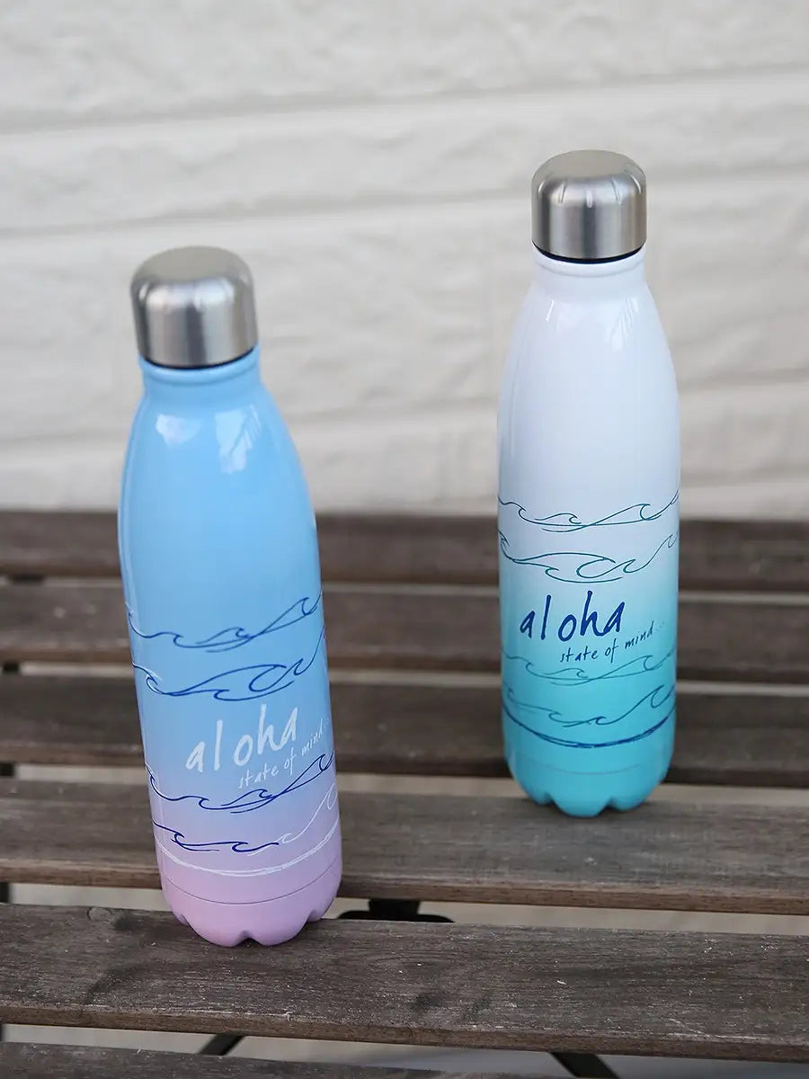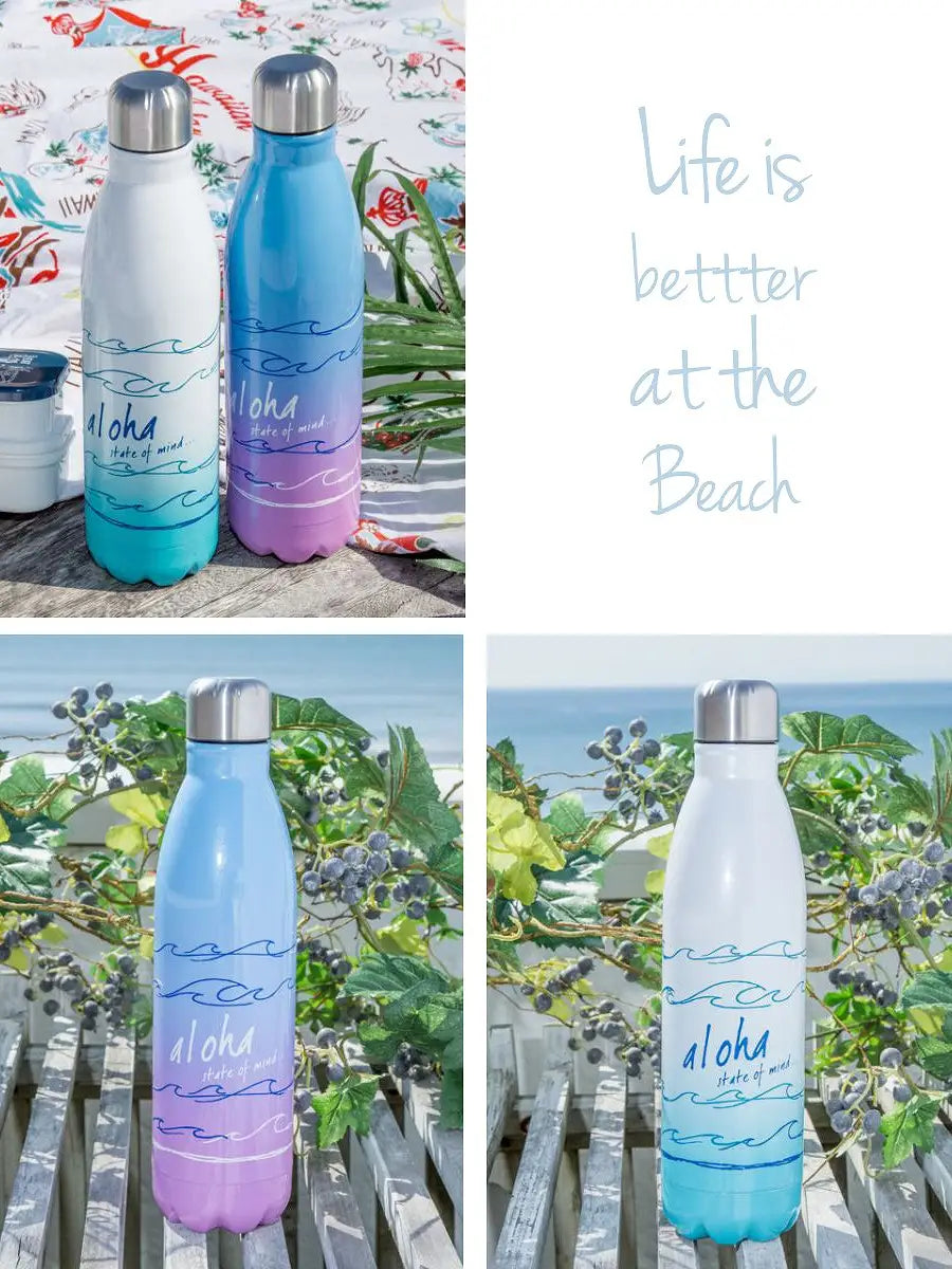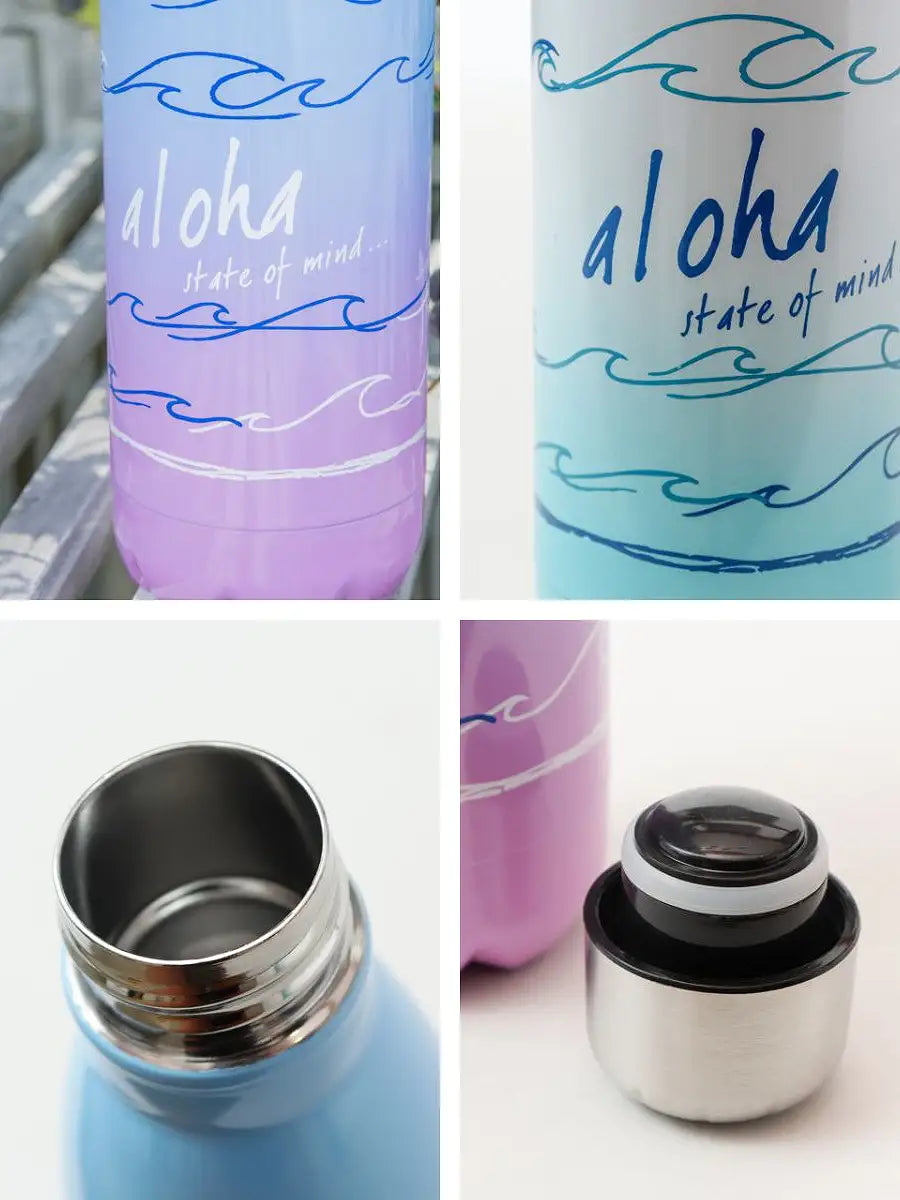 サンセットグラデーションと海のグラデーションをイメージしてデザインされたAlohaステンレスボトル。