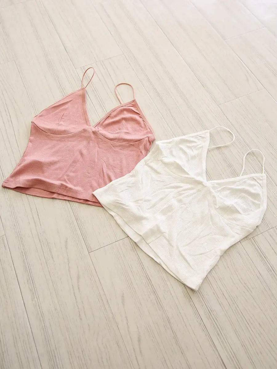 roomy by the sea(ルーミーバイザシー)リブVネックキャミソール。