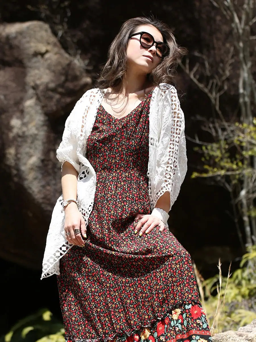 キャミソールにショーパンコーデの上に、マキシワンピースの上にサラッと!