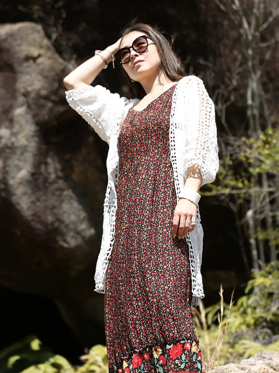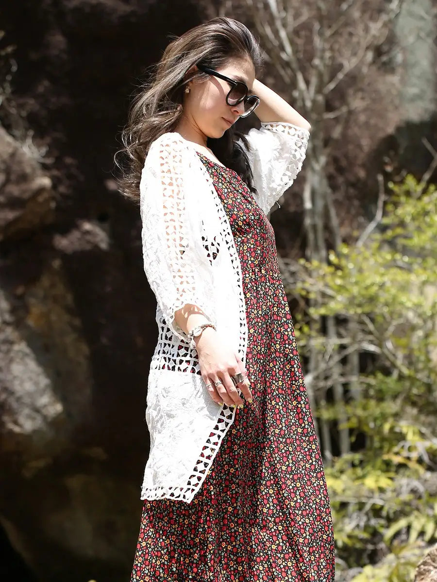 roomy by the sea(ルーミーバイザシー)エンブロイダリ五分袖羽織カーディガン