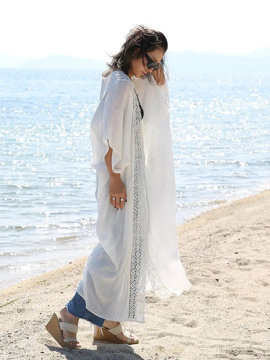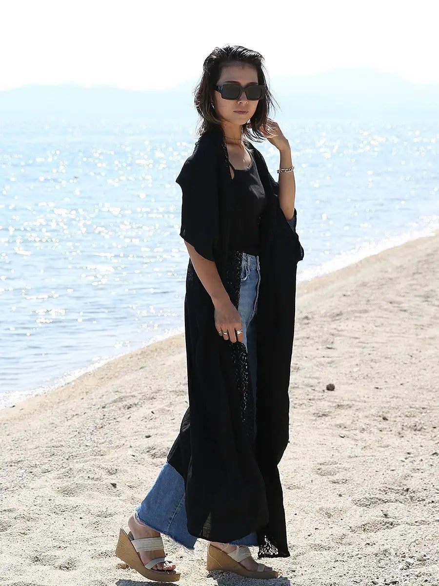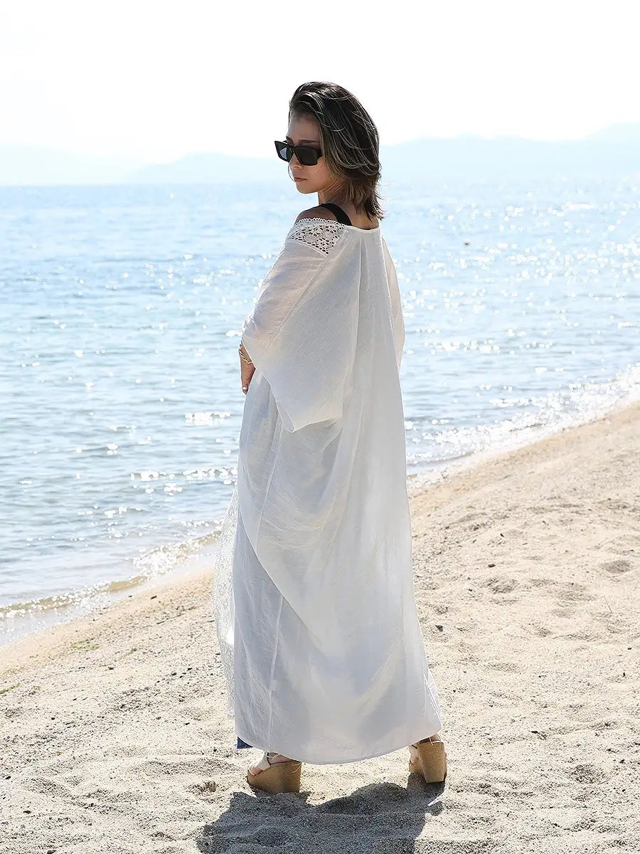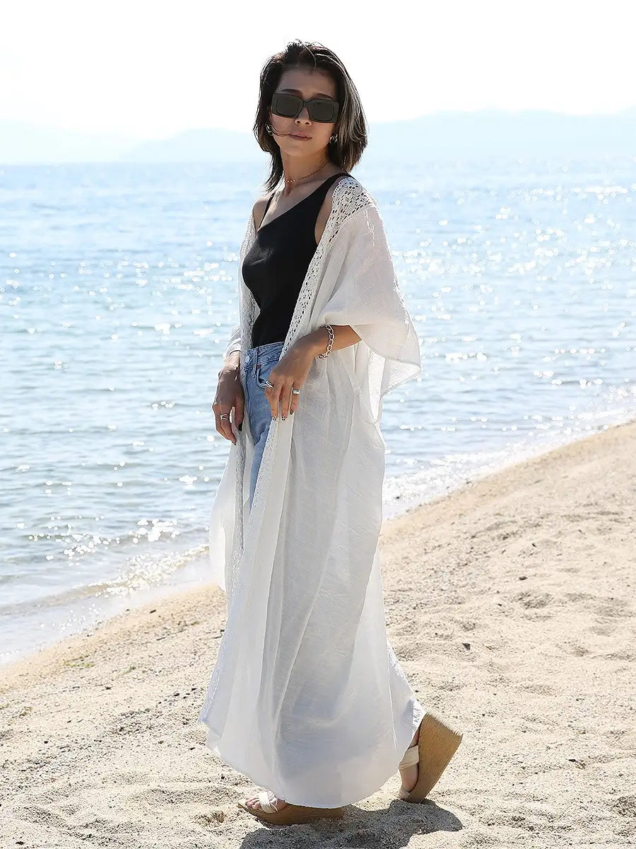 レース切り替えロング丈カバーアップは普段着として、ビーチ・リゾートシーンでのリゾートファッションとして、夏コーデの主役に!