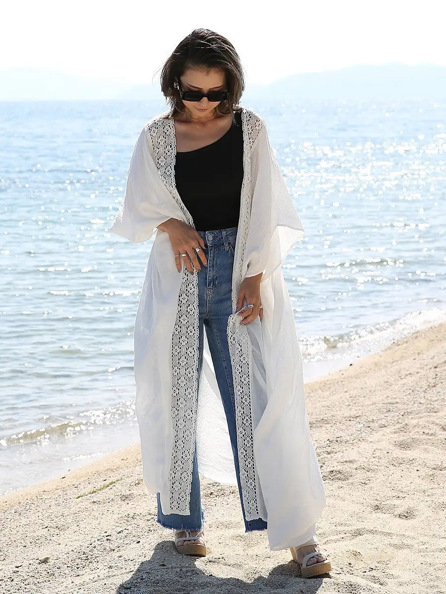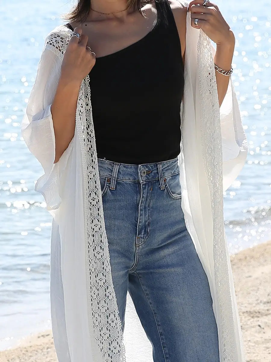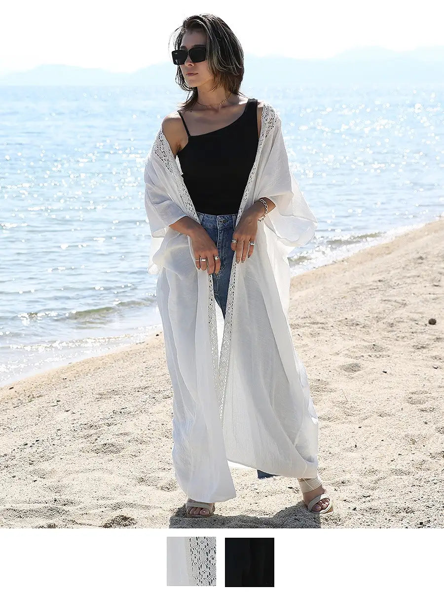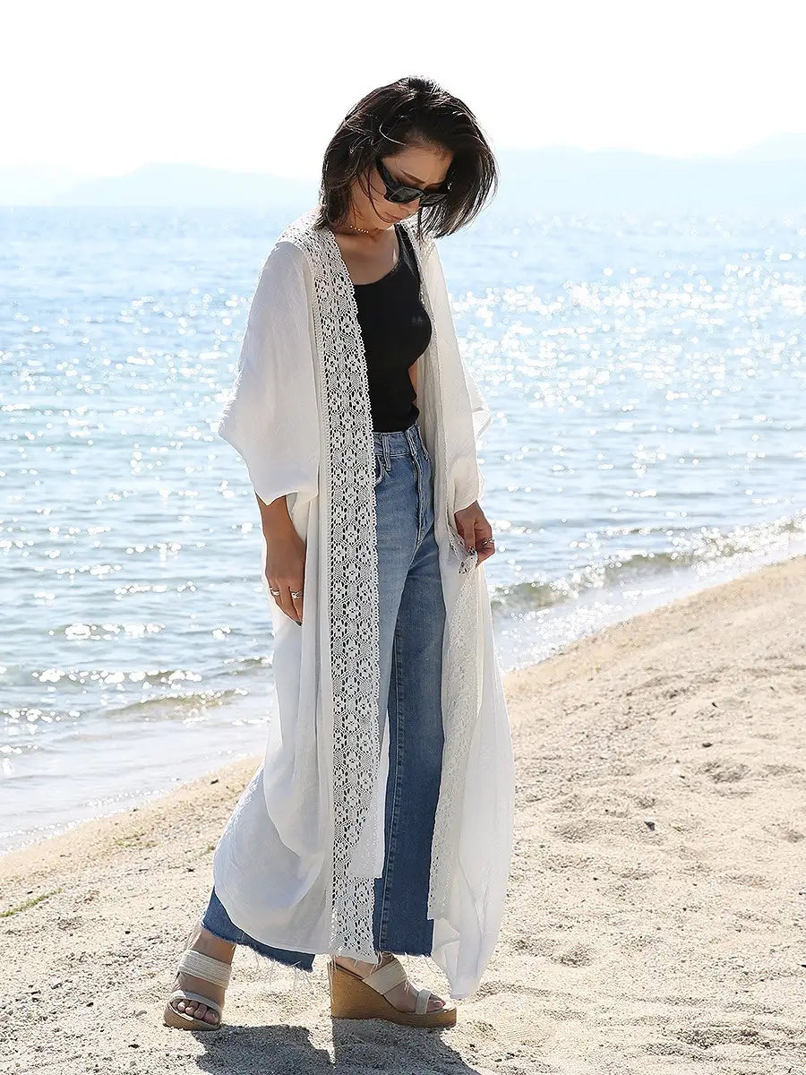 roomy by the sea(ルーミーバイザシー)レース切り替えロング丈羽織りカバーアップ