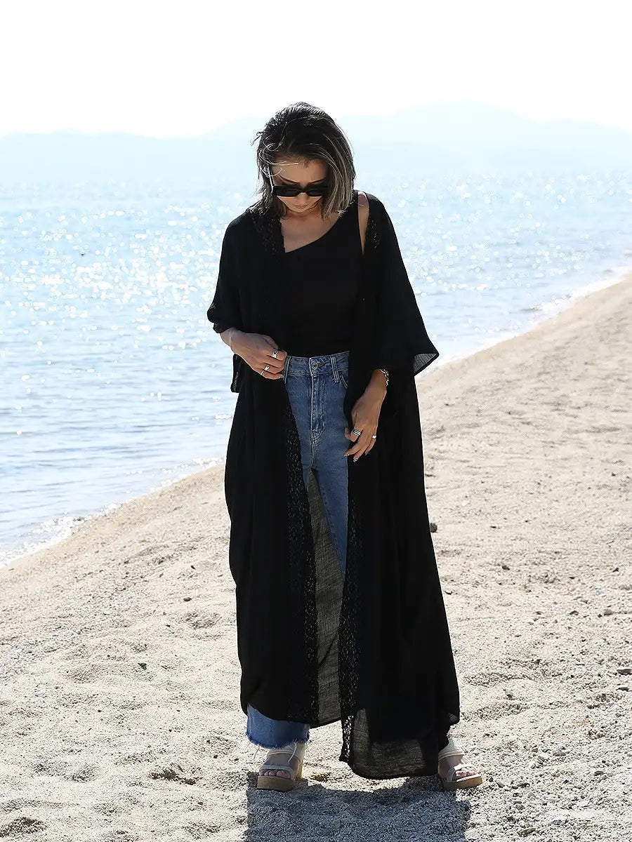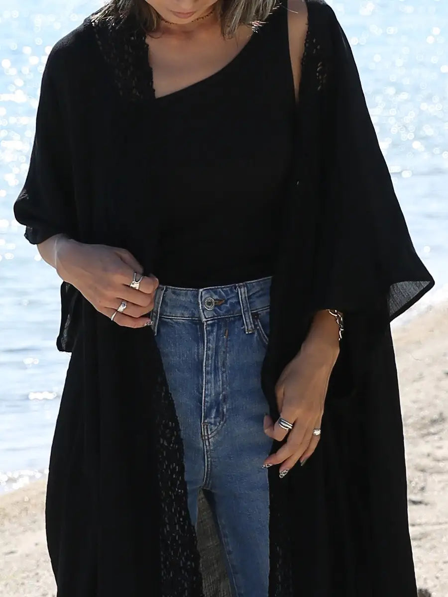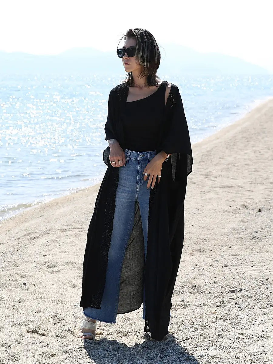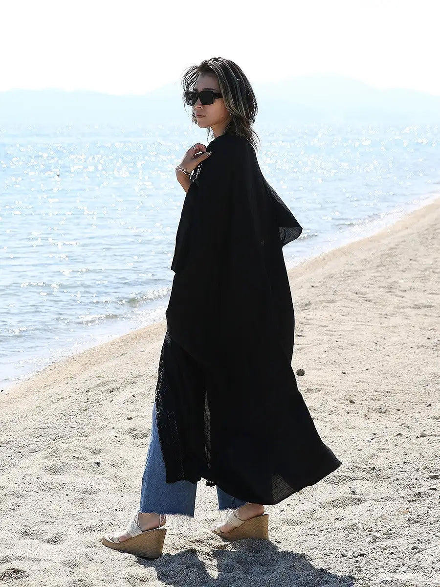 roomy by the sea(ルーミーバイザシー)レース切り替えロング丈羽織りカバーアップ