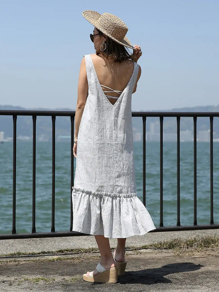 MOLABI(モラビ)近江ちぢみ(麻)背中開きマキシワンピース/ライトグレー