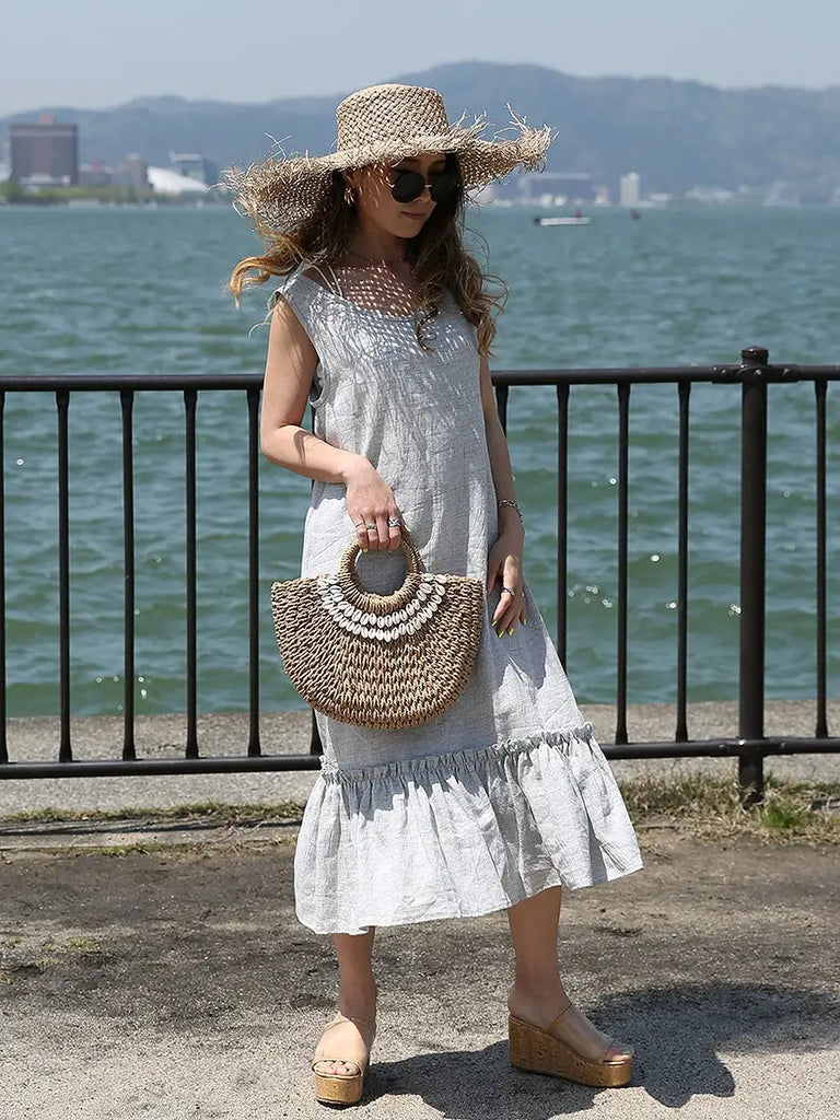 MOLABI(モラビ)近江ちぢみリネンマキシワンピース/ライトグレー