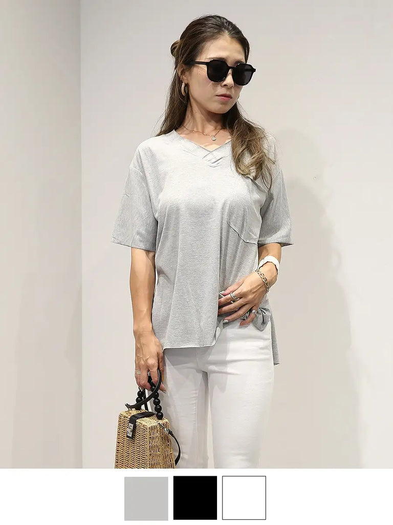 roomy by the sea(ルーミーバイザシー)VネックシンプルTシャツ