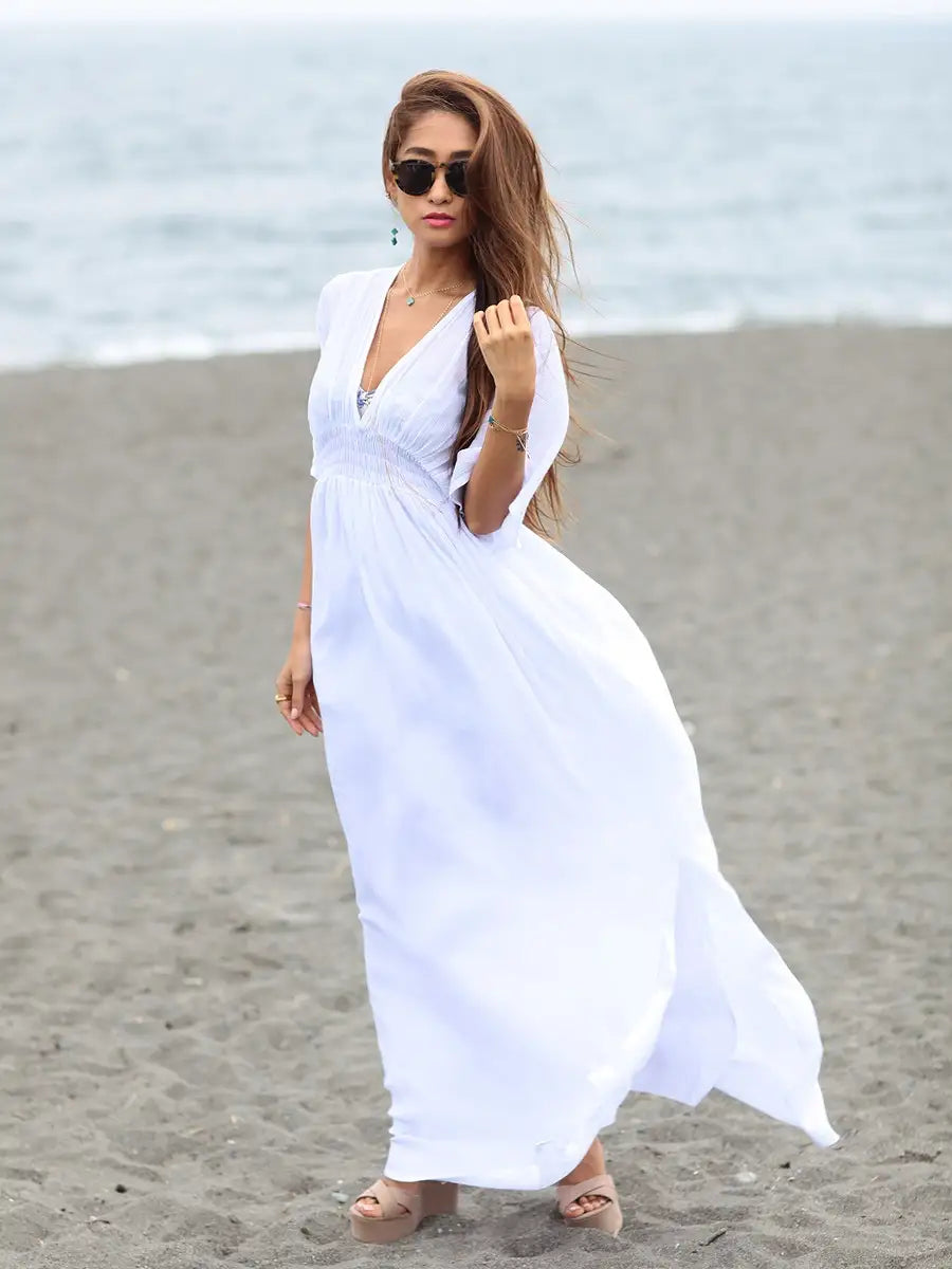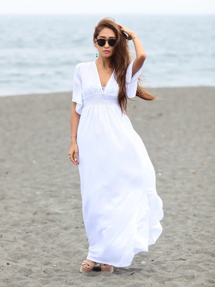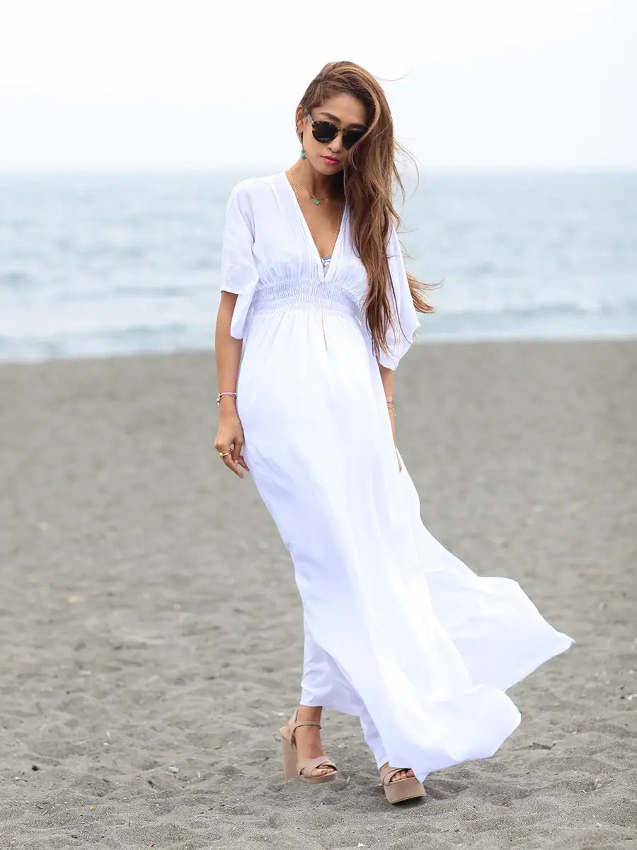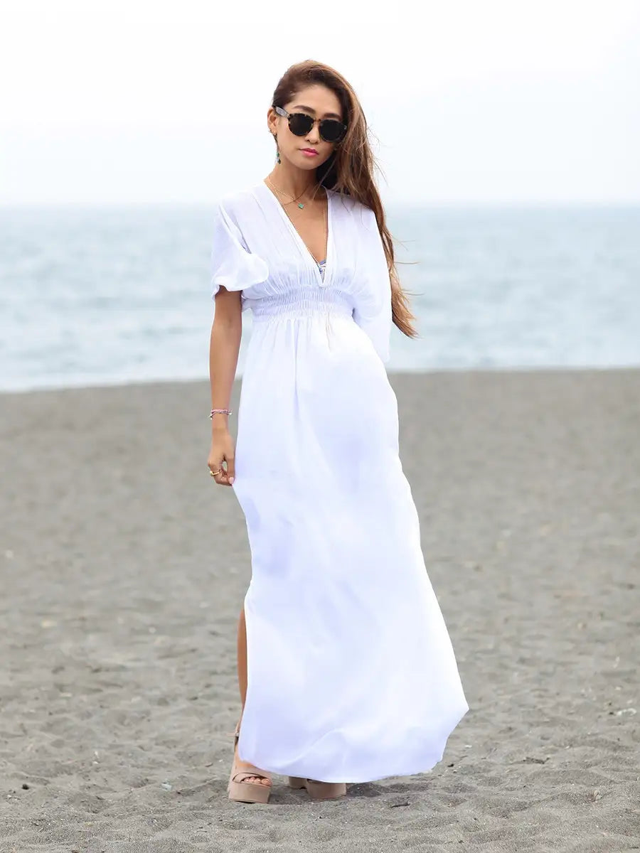 ビーチでもシティでも場所を選ばずサラッと1枚で大活躍する大人のマキシワンピースです!