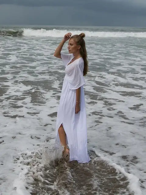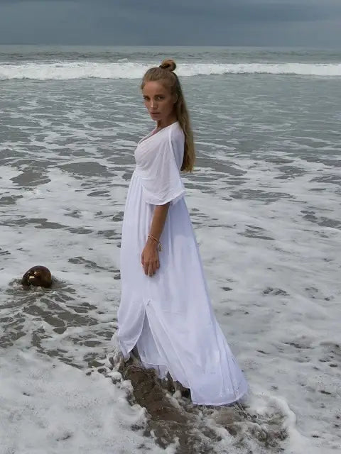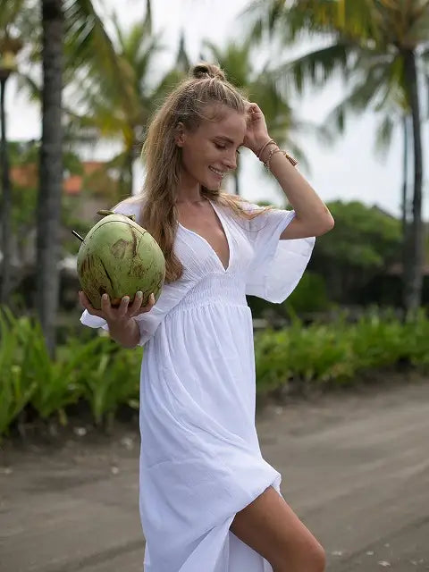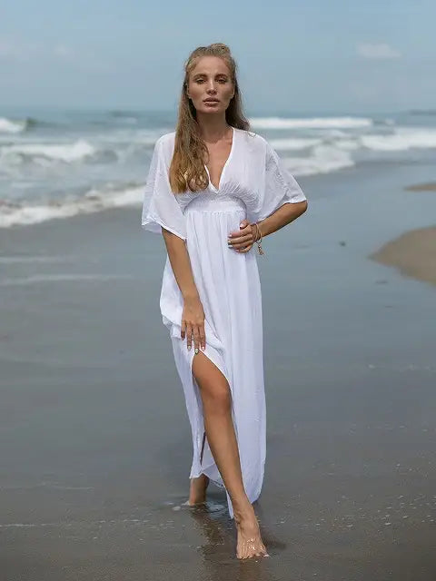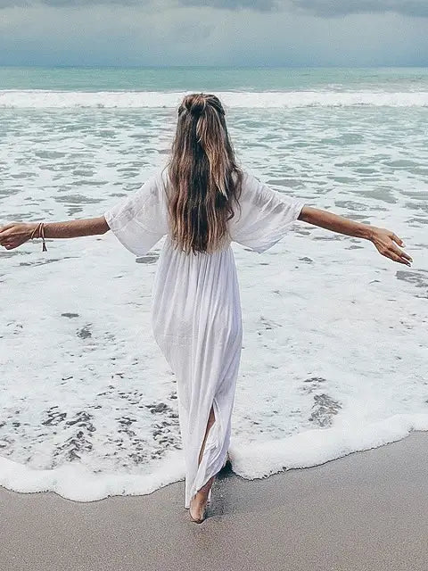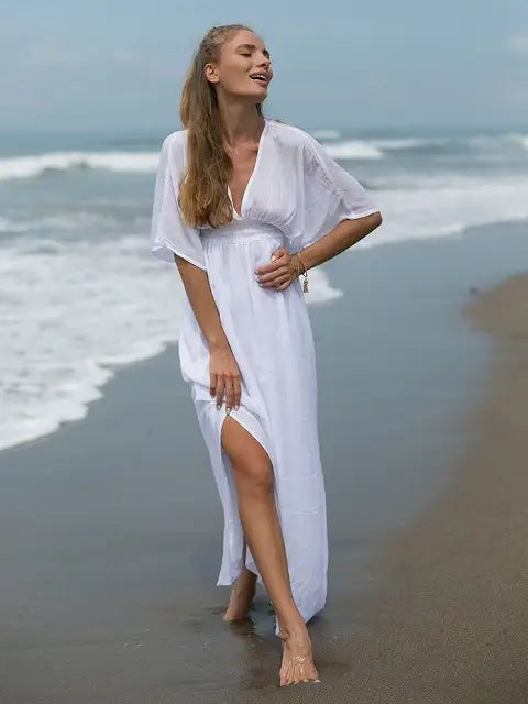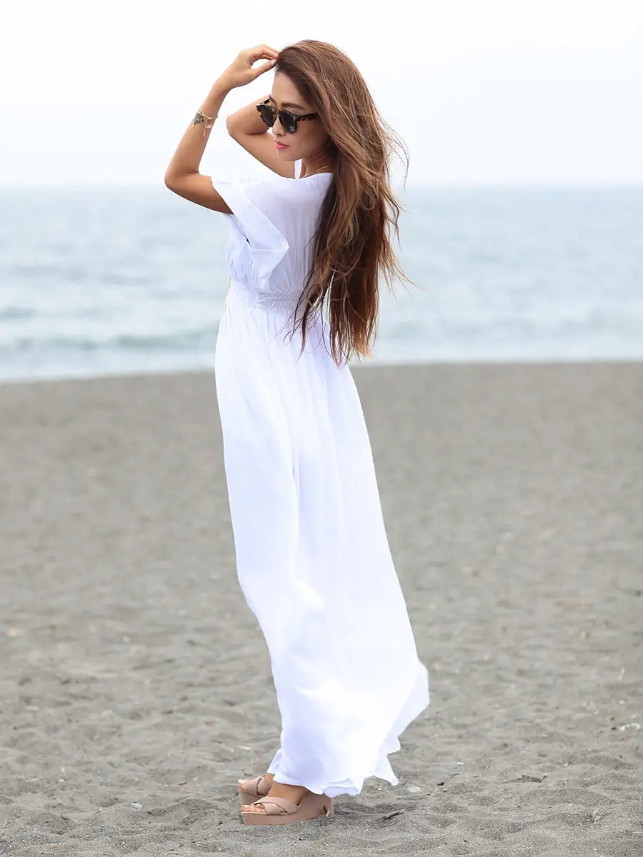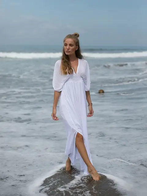 ビーチでもシティでも場所を選ばずサラッと1枚で大活躍する大人のマキシワンピースです!