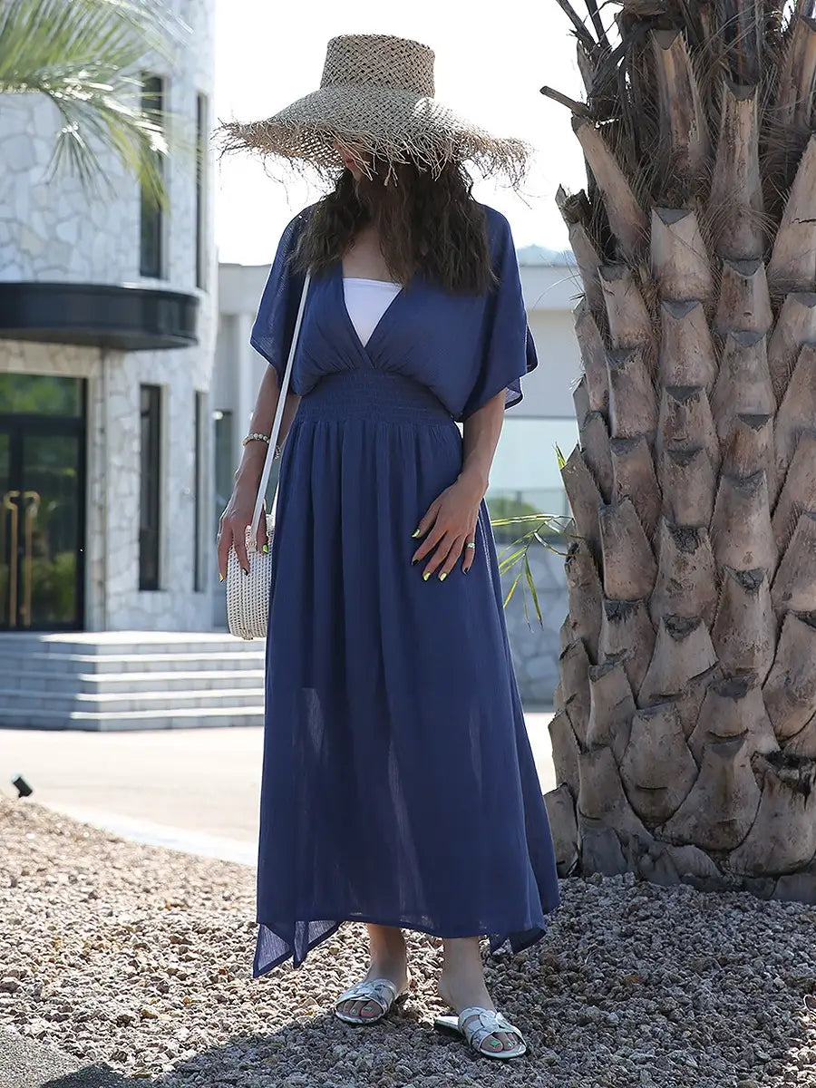 ビーチでもシティでも場所を選ばずサラッと1枚で大活躍する大人のマキシワンピースです!