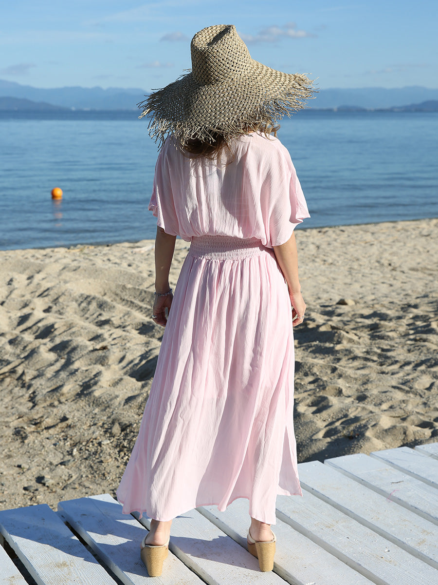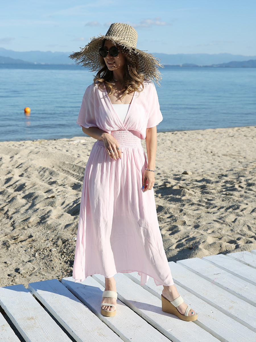 ビーチでもシティでも場所を選ばずサラッと1枚で大活躍する大人のマキシワンピースです!