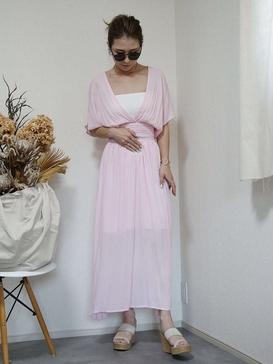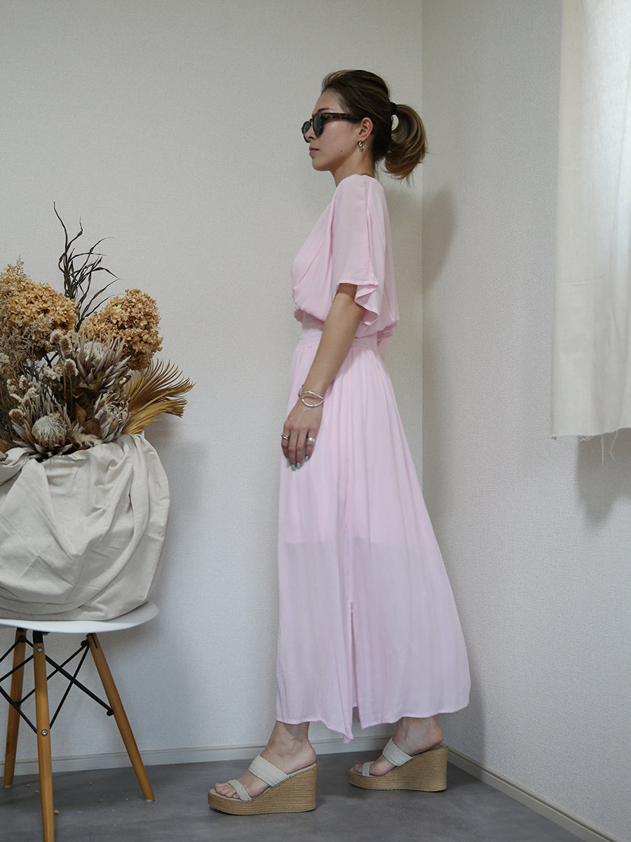 胸元が深いVネックになっていて、デコルテをきれいに演出してくれるマキシワンピです。