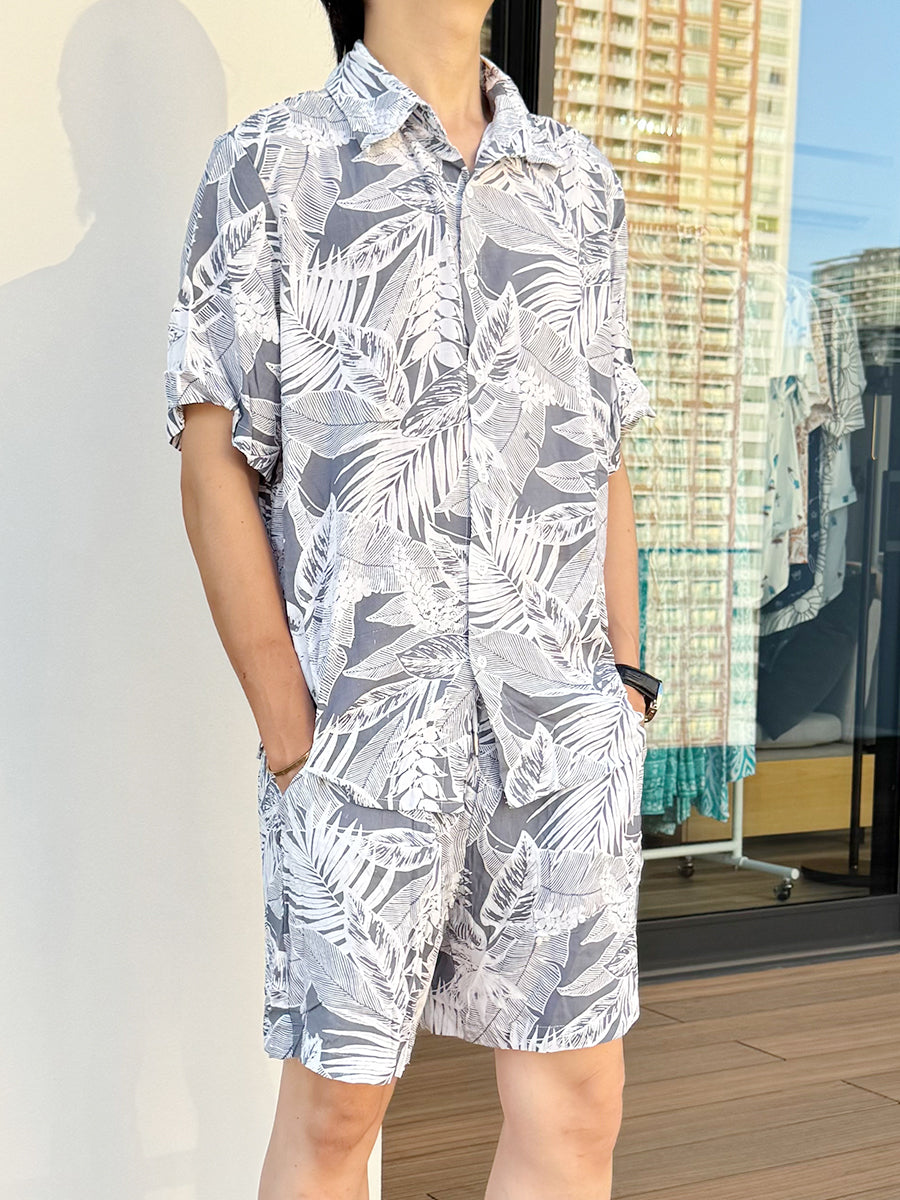 ボタニカル柄メンズセットアップ|シャツ&ショートパンツ