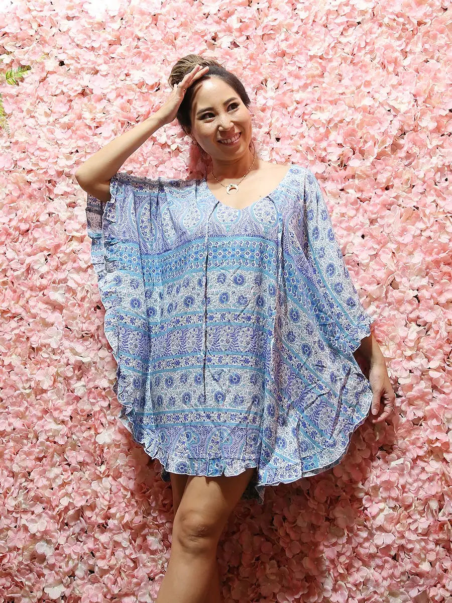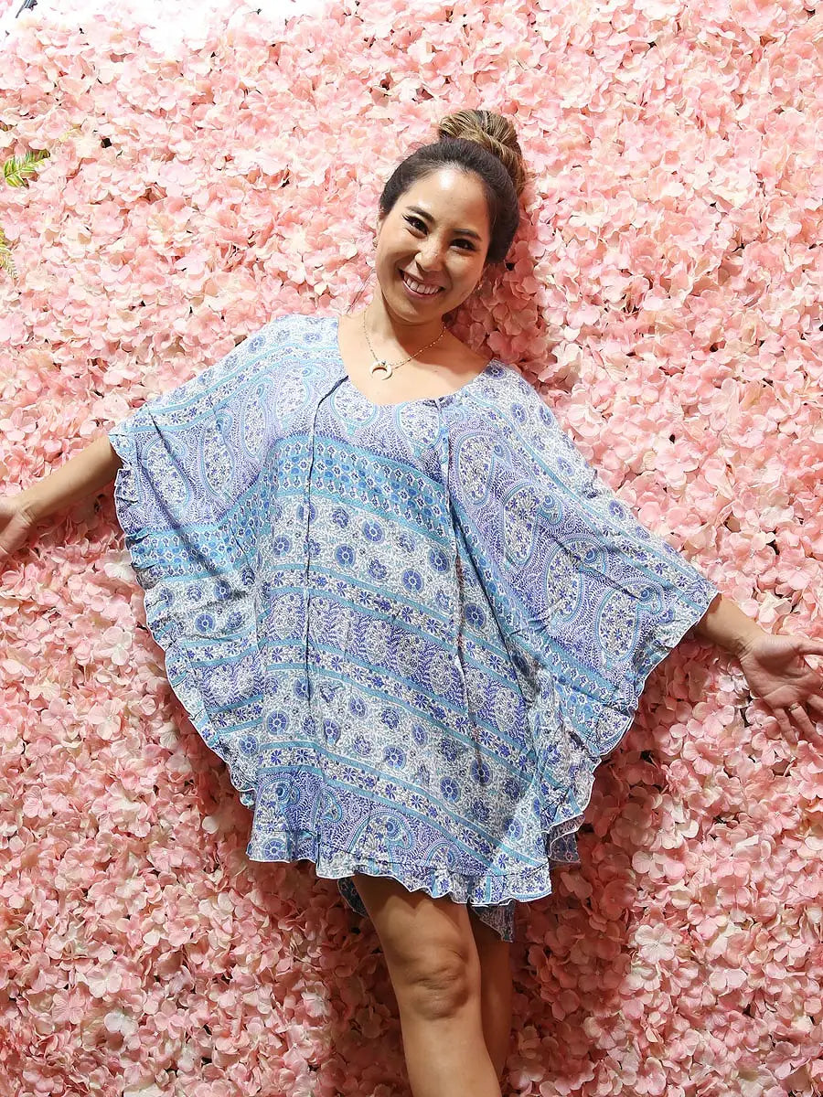 ブルーのペイズリー柄が可愛いチュニックワンピです。