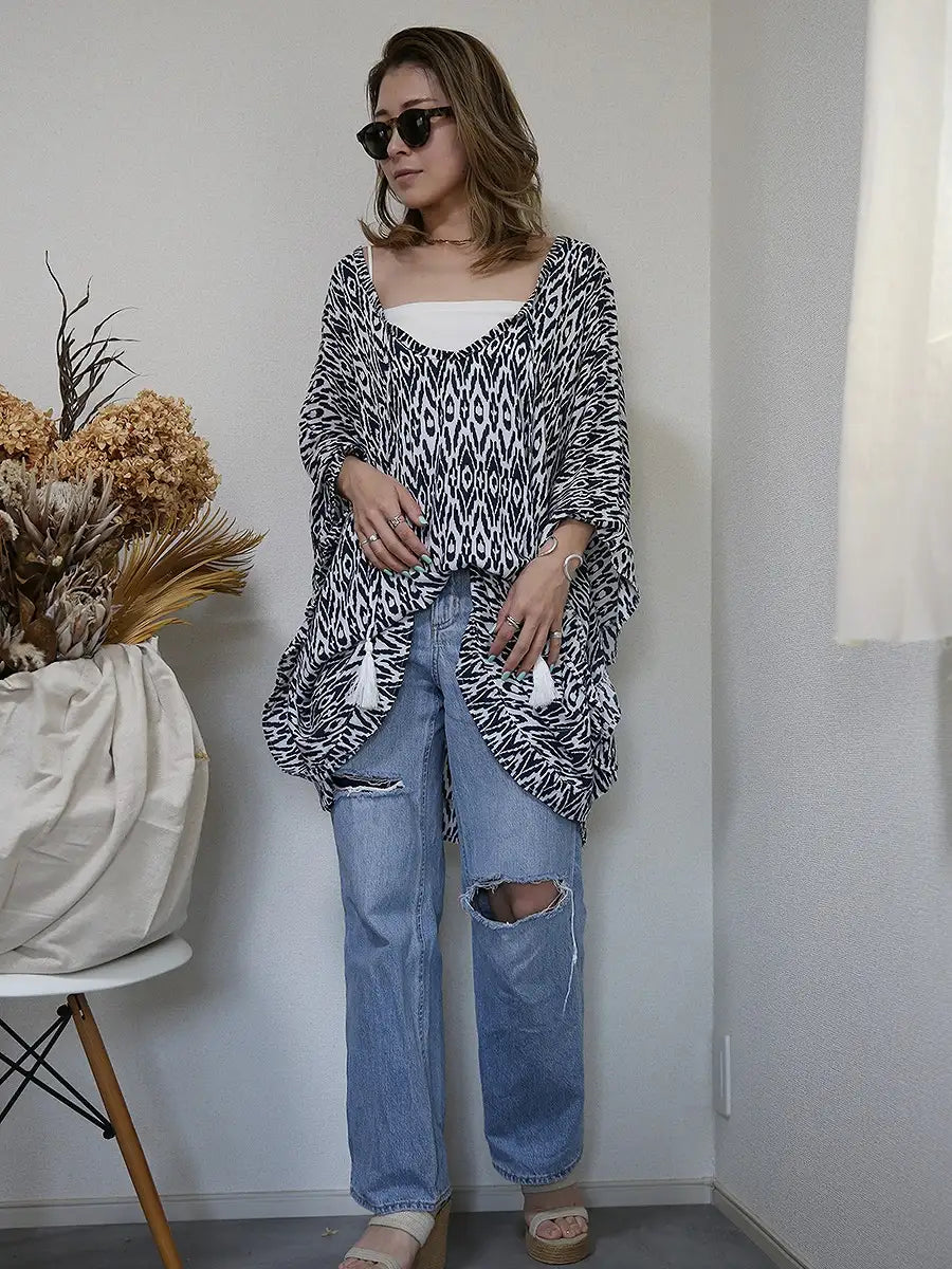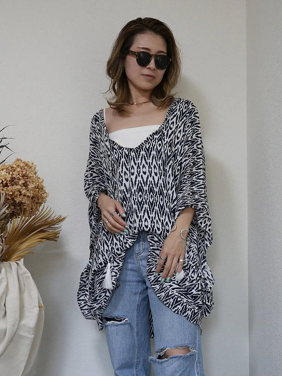 大人の女性にオススメなバティック柄のチュニックワンピースです。