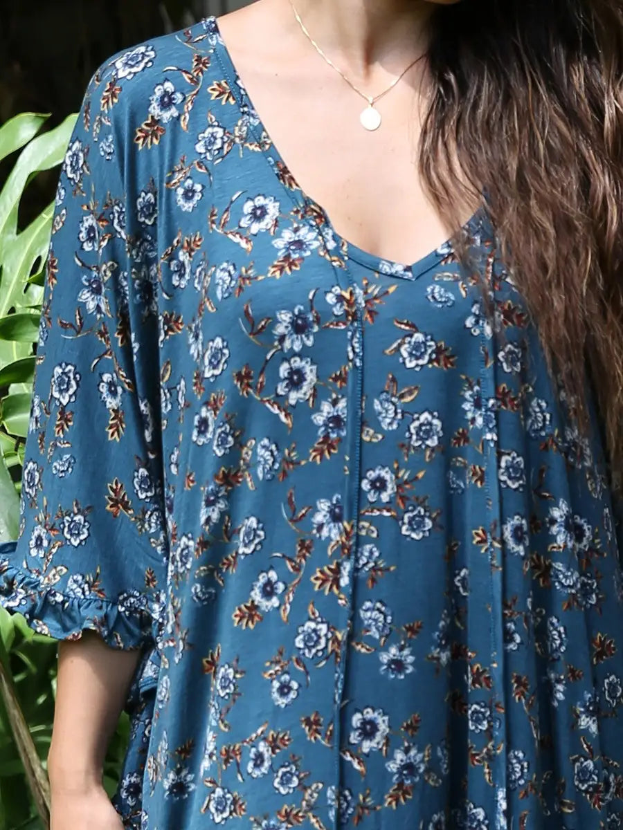 LAUT BLUE(ラウトブルー)花柄チュニックワンピース