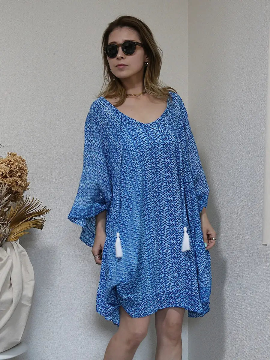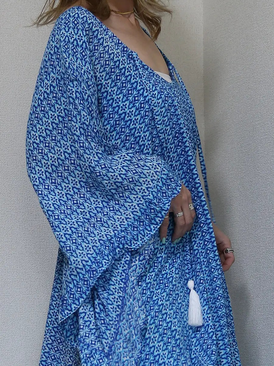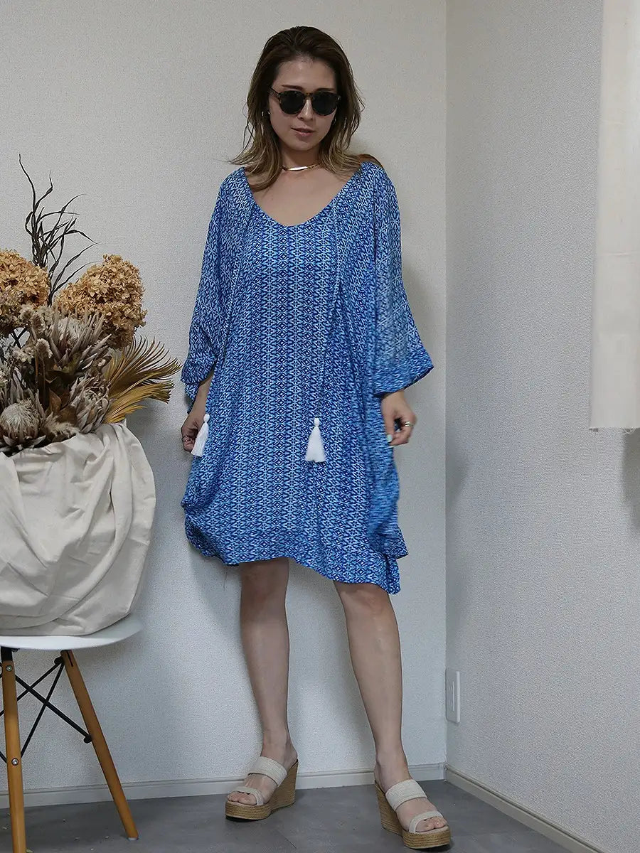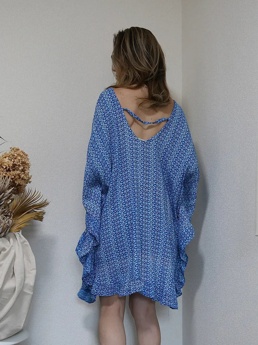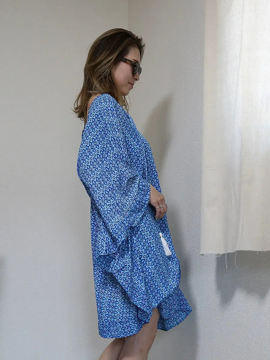 LAUT BLUE(ラウトブルー)バタフライチュニックワンピース/モロッカン柄