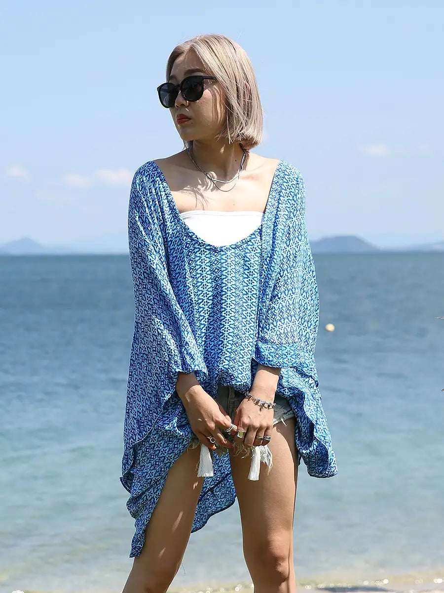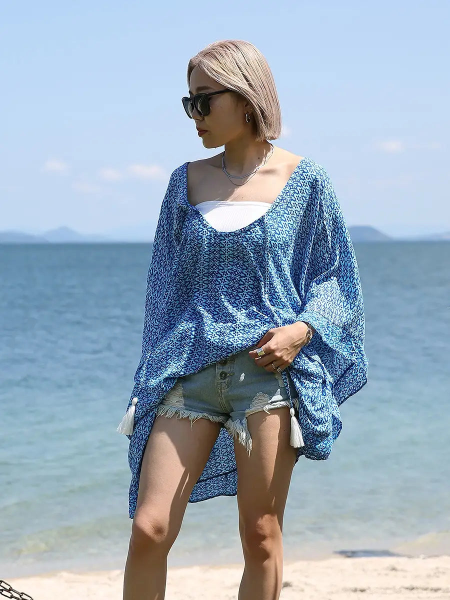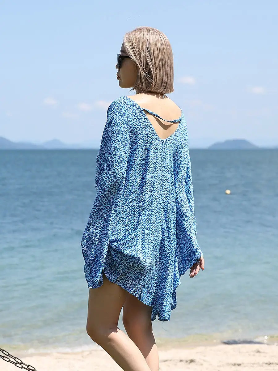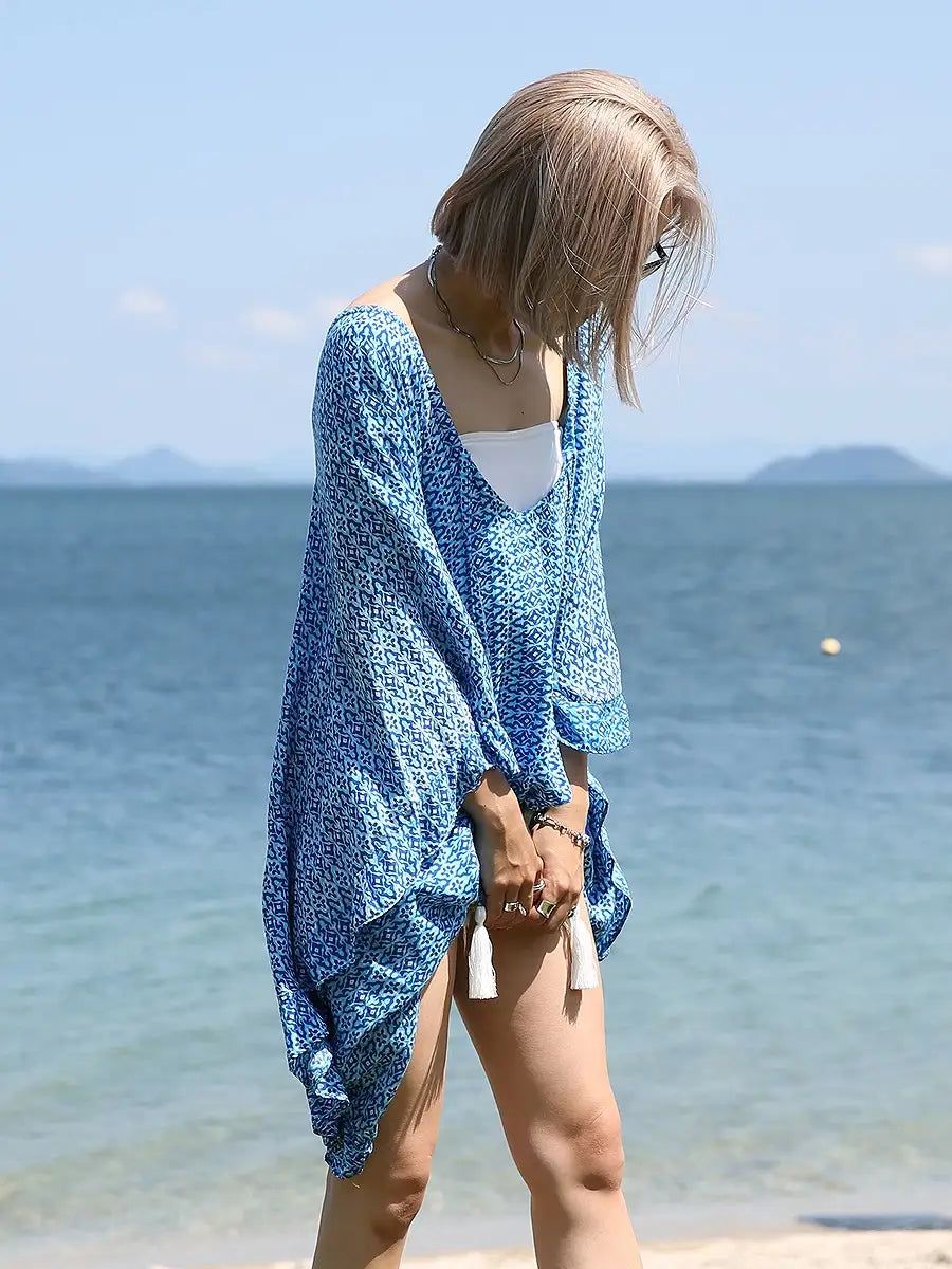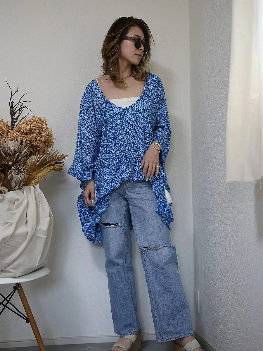 LAUT BLUE(ラウトブルー)バタフライチュニックワンピース/モロッカン柄
