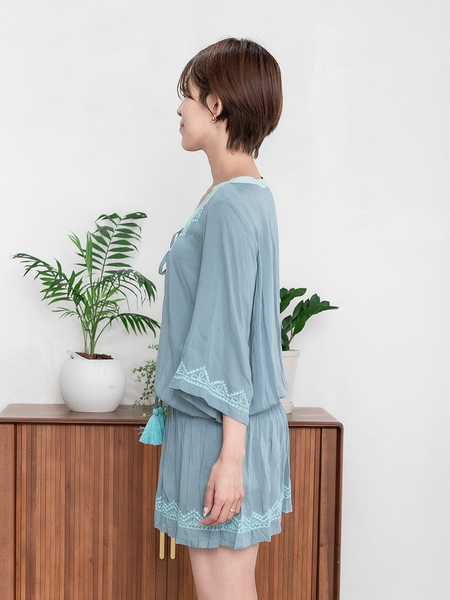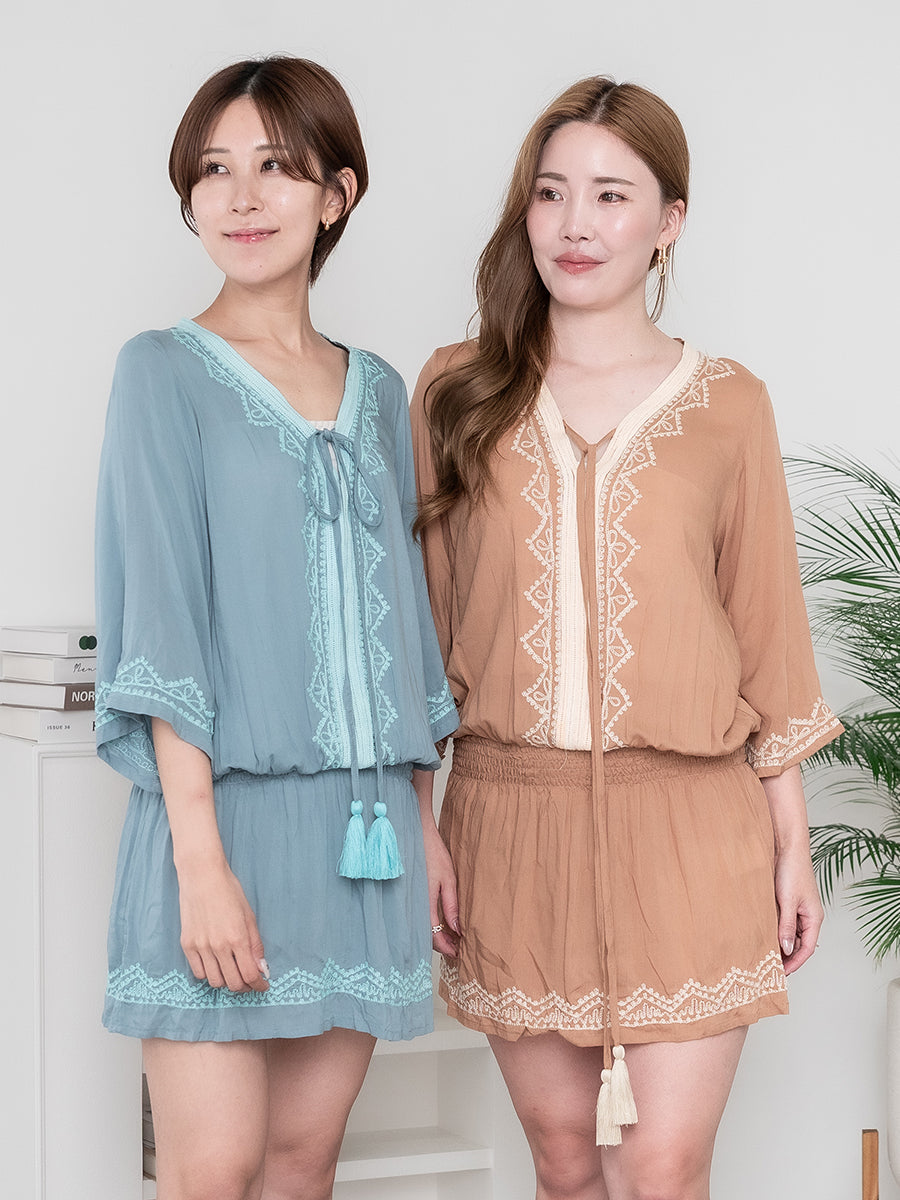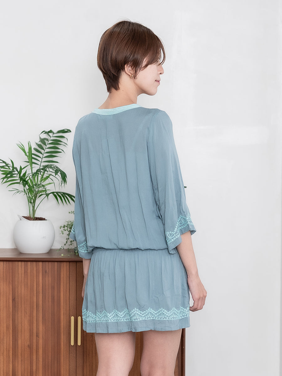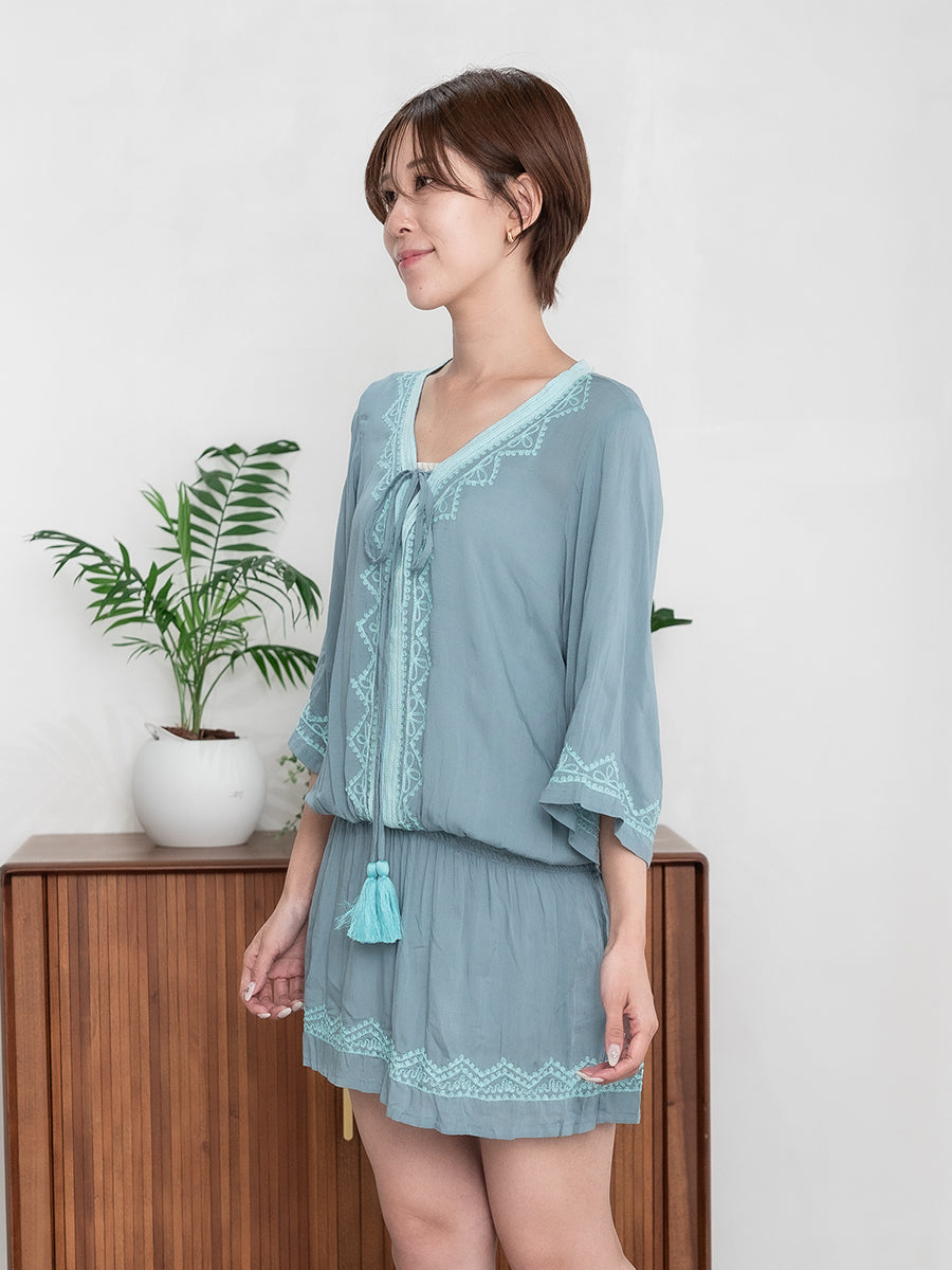 LAUT BLUE(ラウトブルー)五分袖刺繍チュニックワンピース