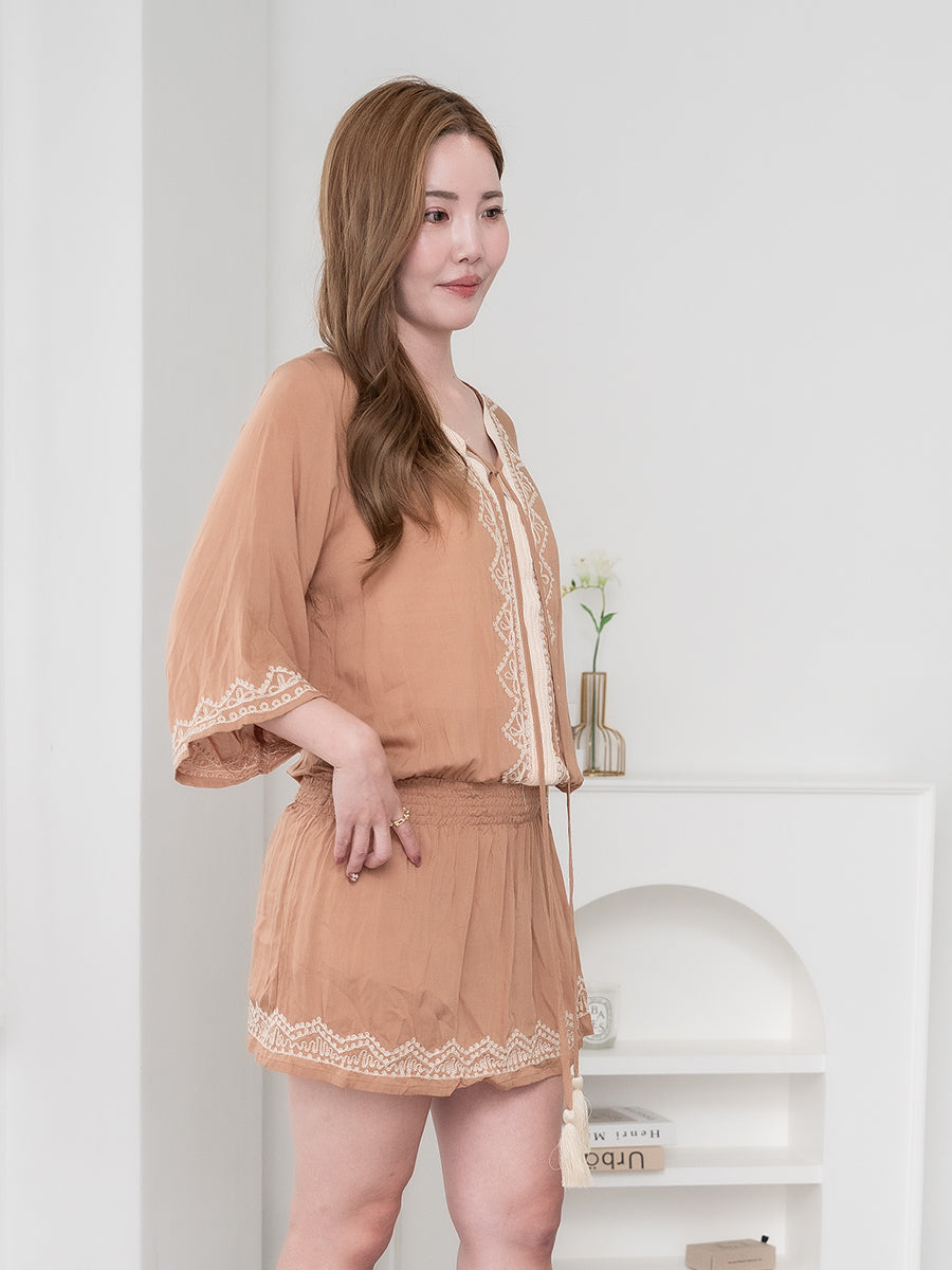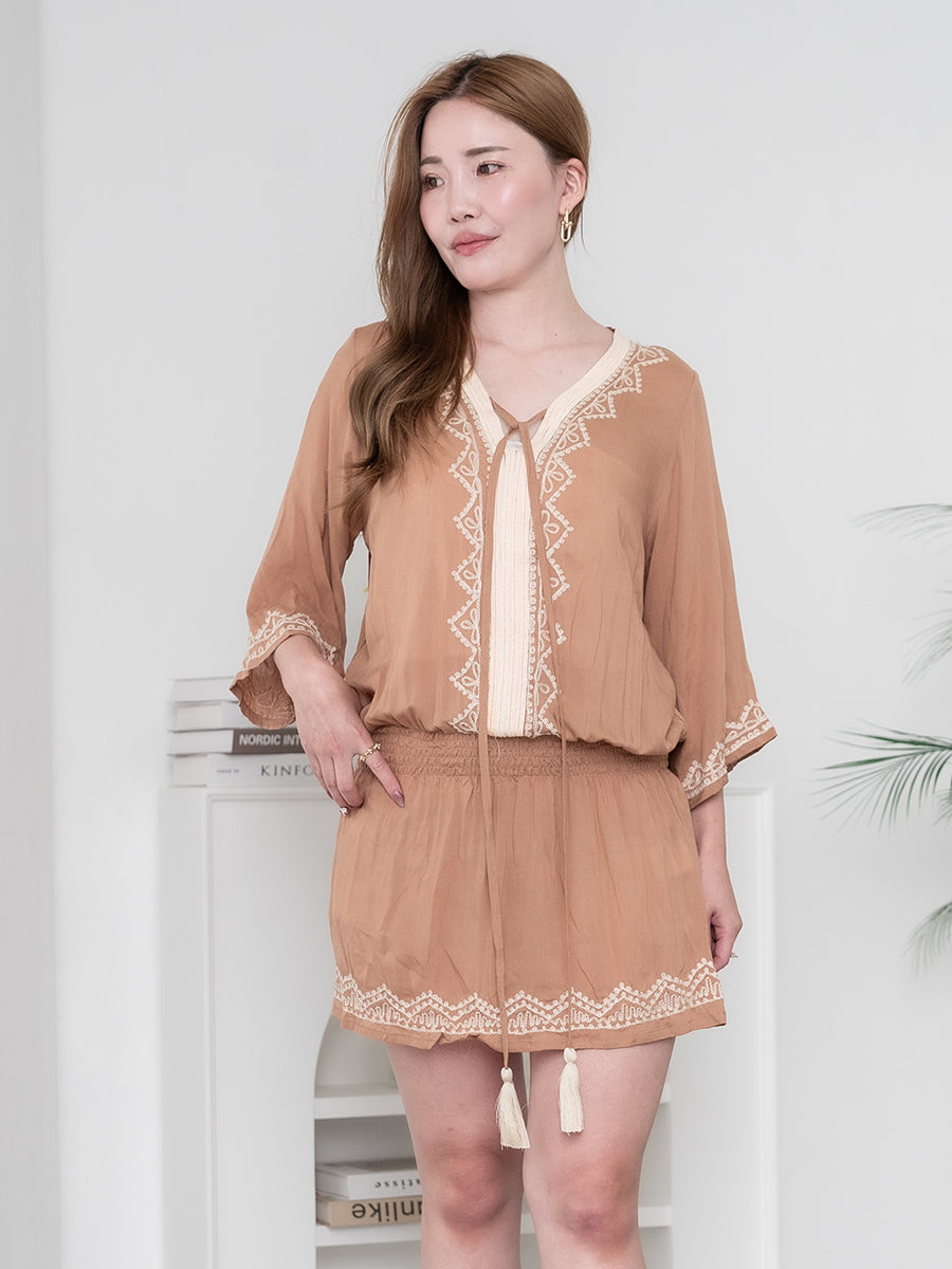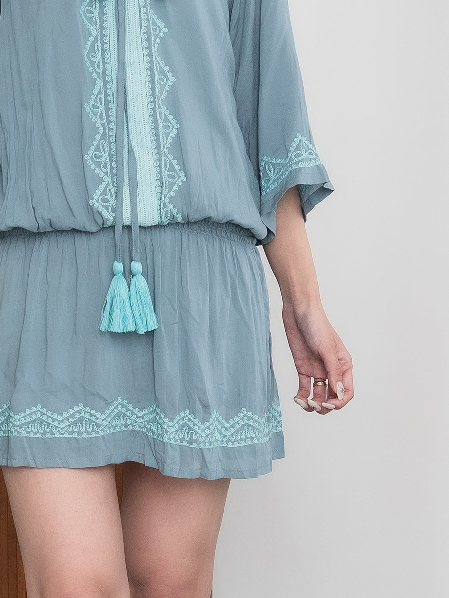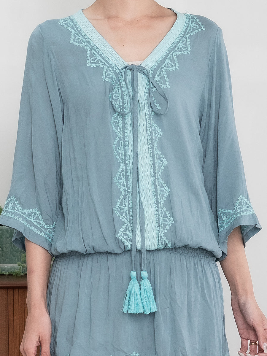 LAUT BLUE(ラウトブルー)五分袖刺繍チュニックワンピース