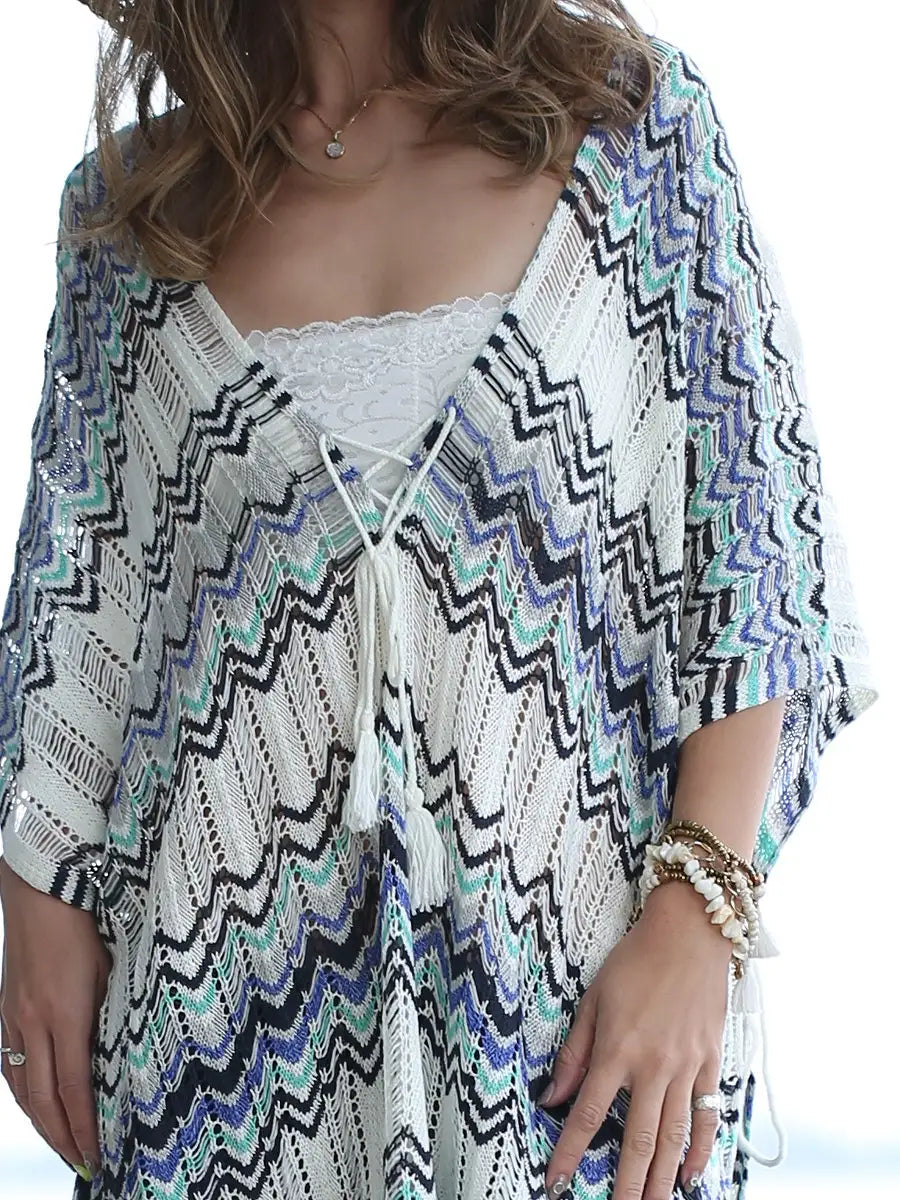 roomy by the sea(ルーミーバイザシー)クロシェ編みチュニックワンピース。