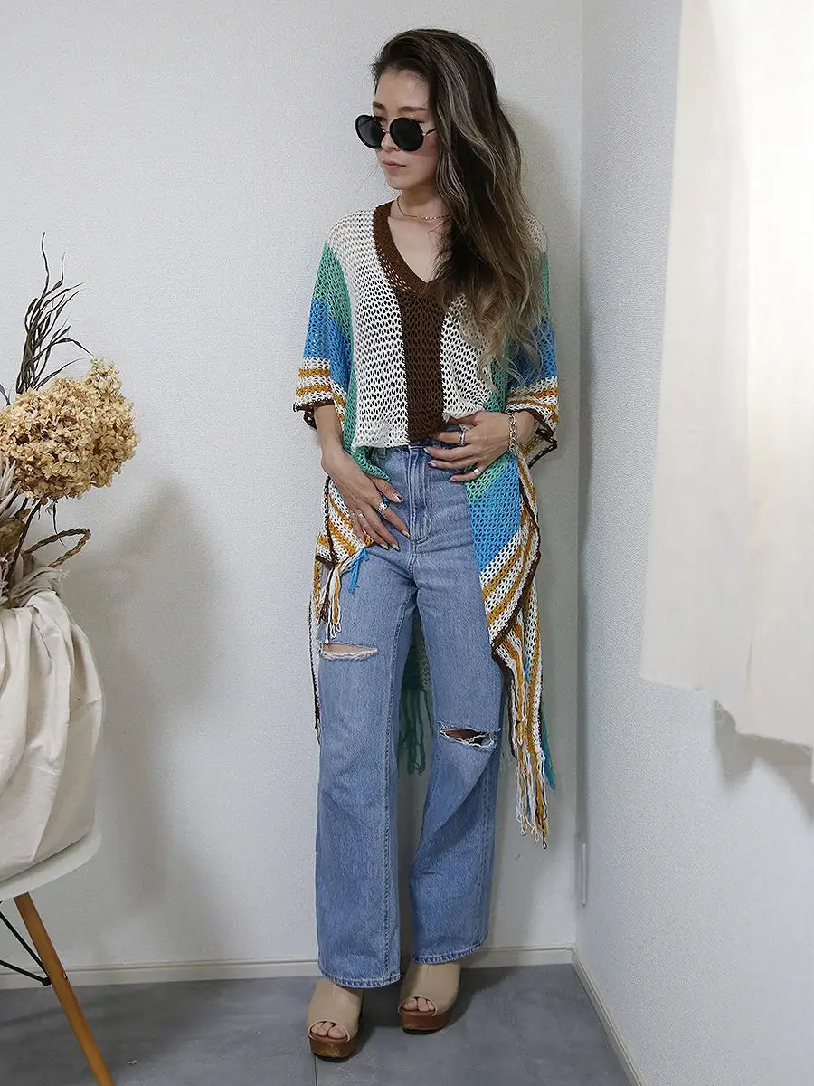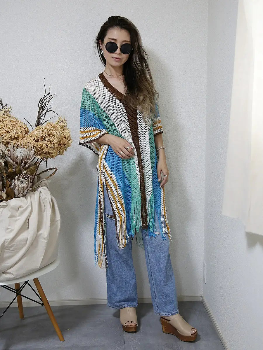 roomy by the sea(ルーミーバイザシー)ボヘミアンサマーニットチュニックワンピース