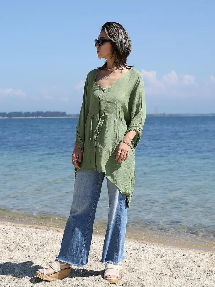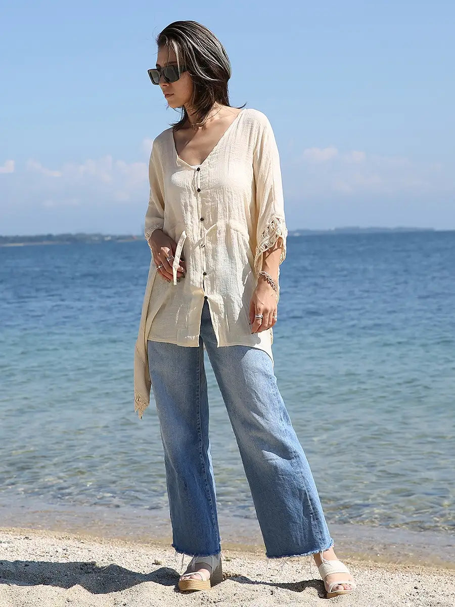 お尻まですっぽり隠れるチュニックワンピースですので、体型カバーにも◎