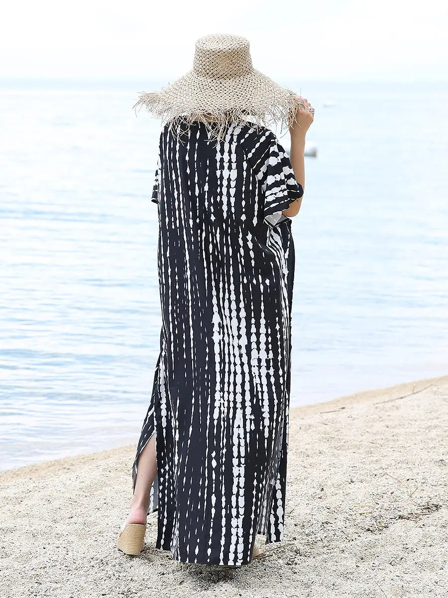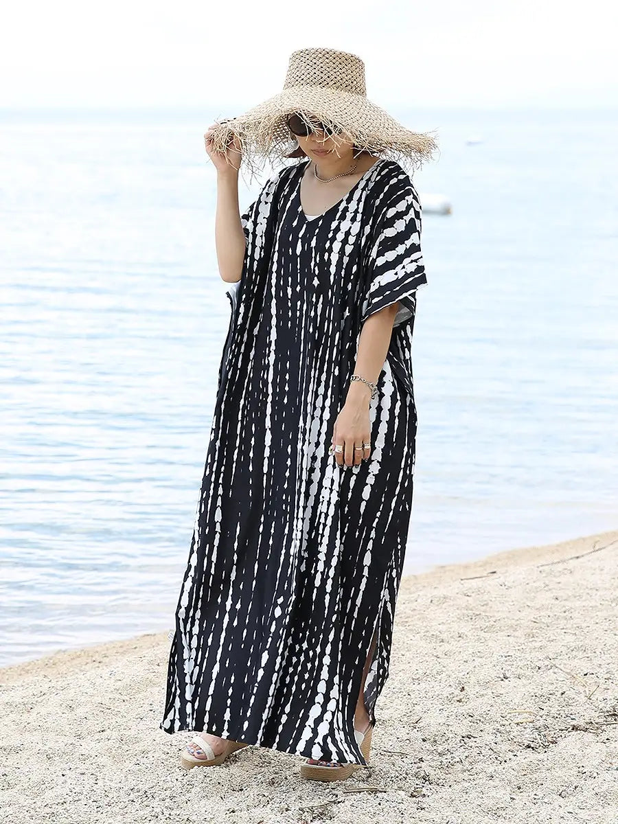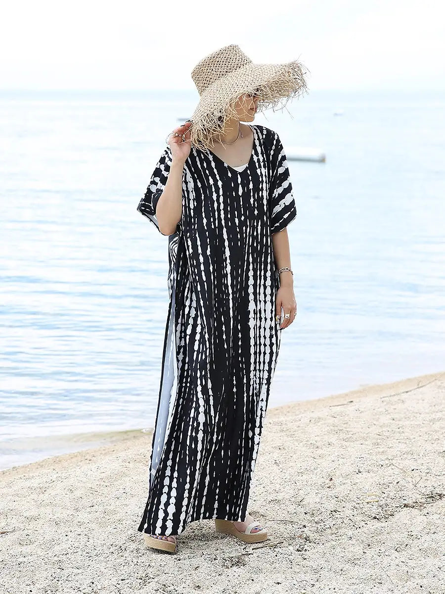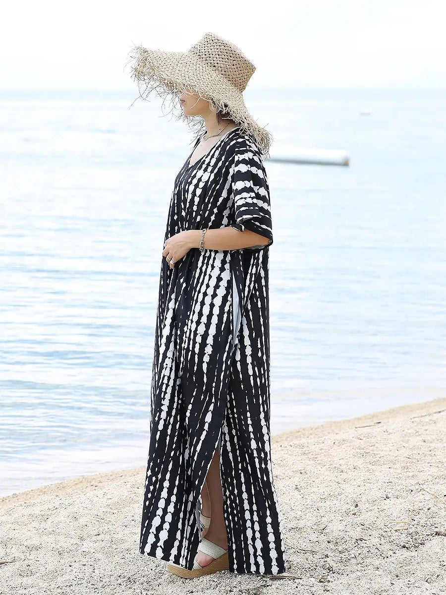 ビーチ・リゾートシーンで映える落ち感のあるマキシワンピースです。