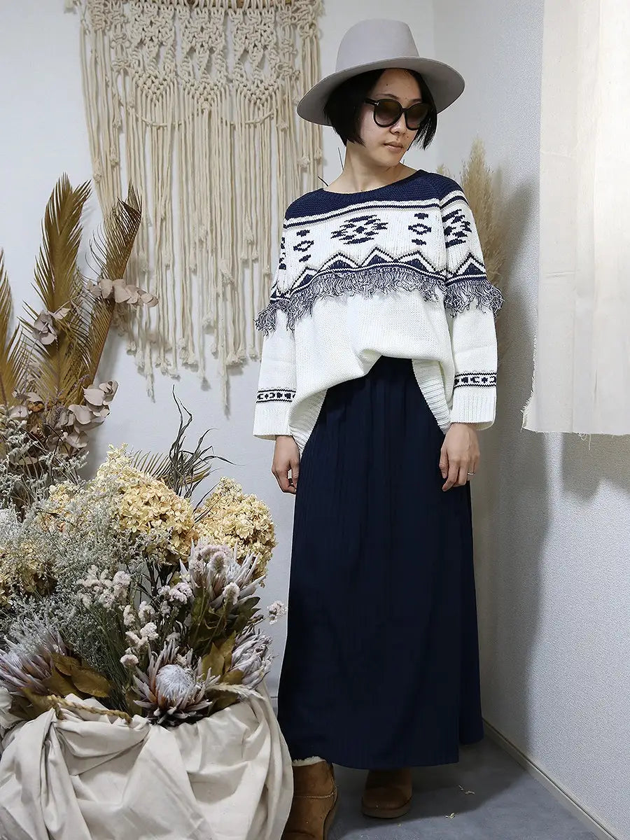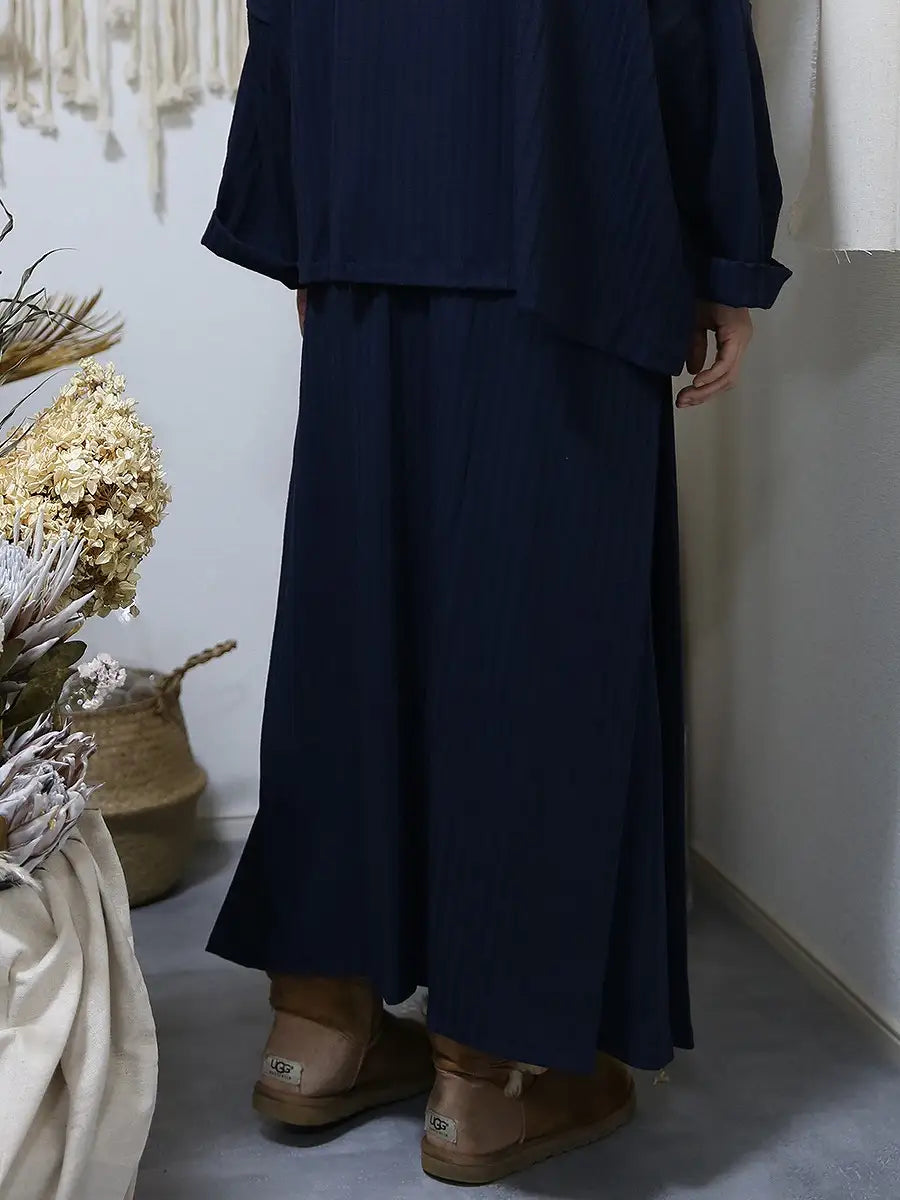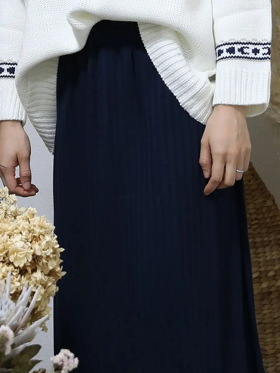 シンプルなリブニットマキシスカートはどんなコーディネートにも合わせやすくお洒落の幅が広がります。