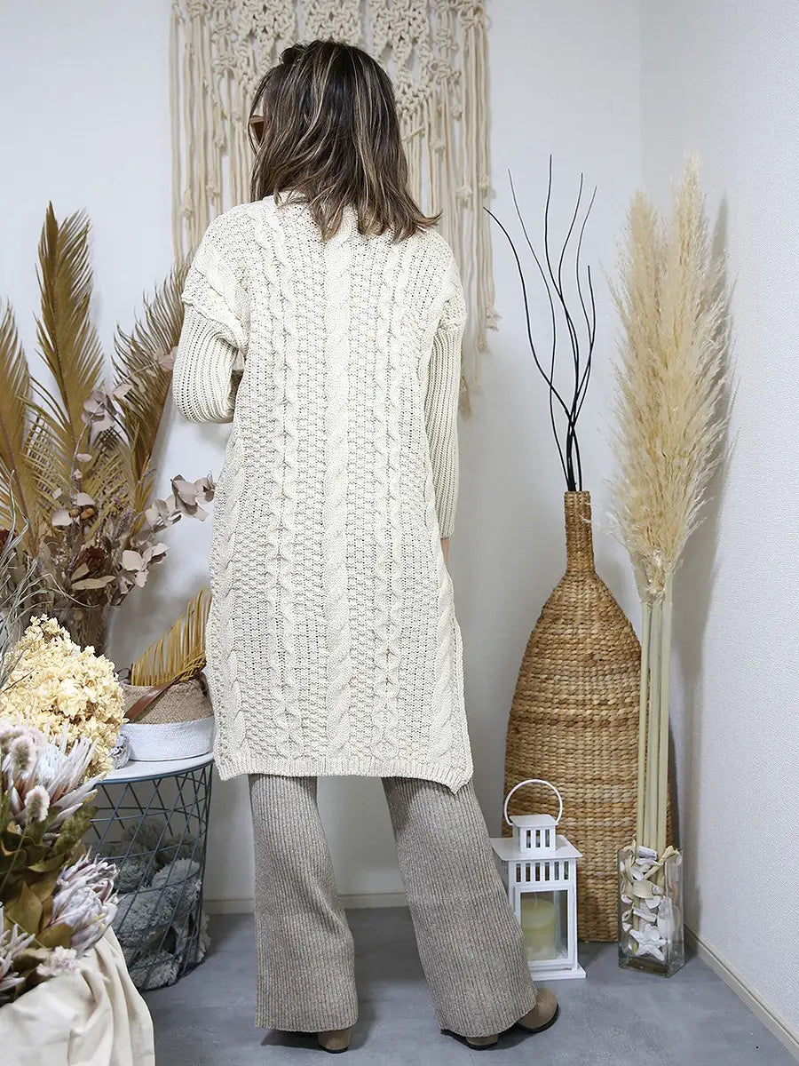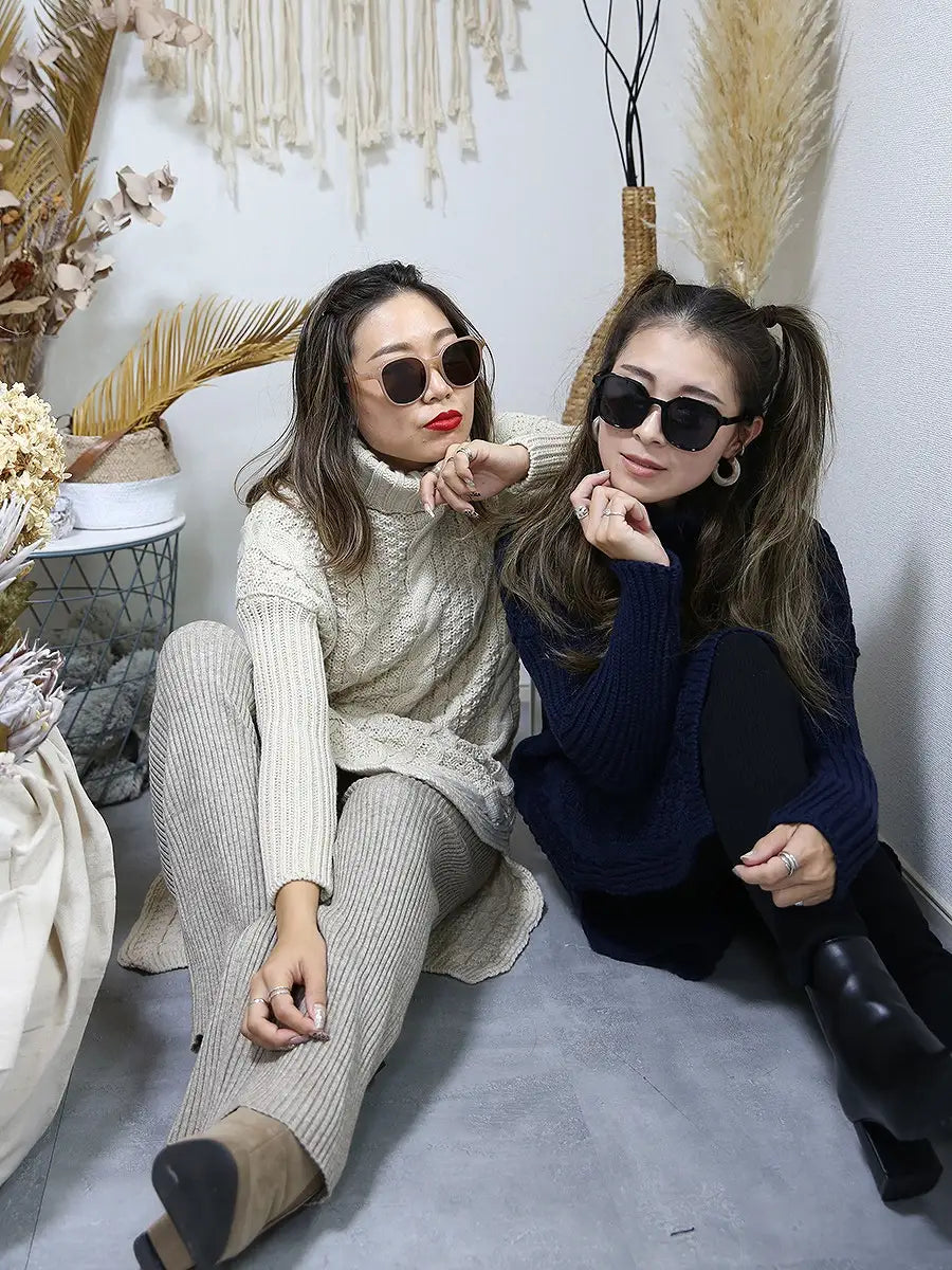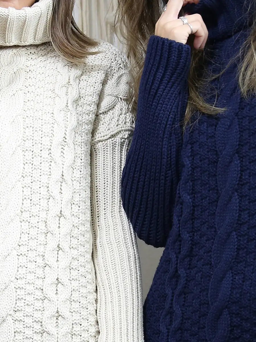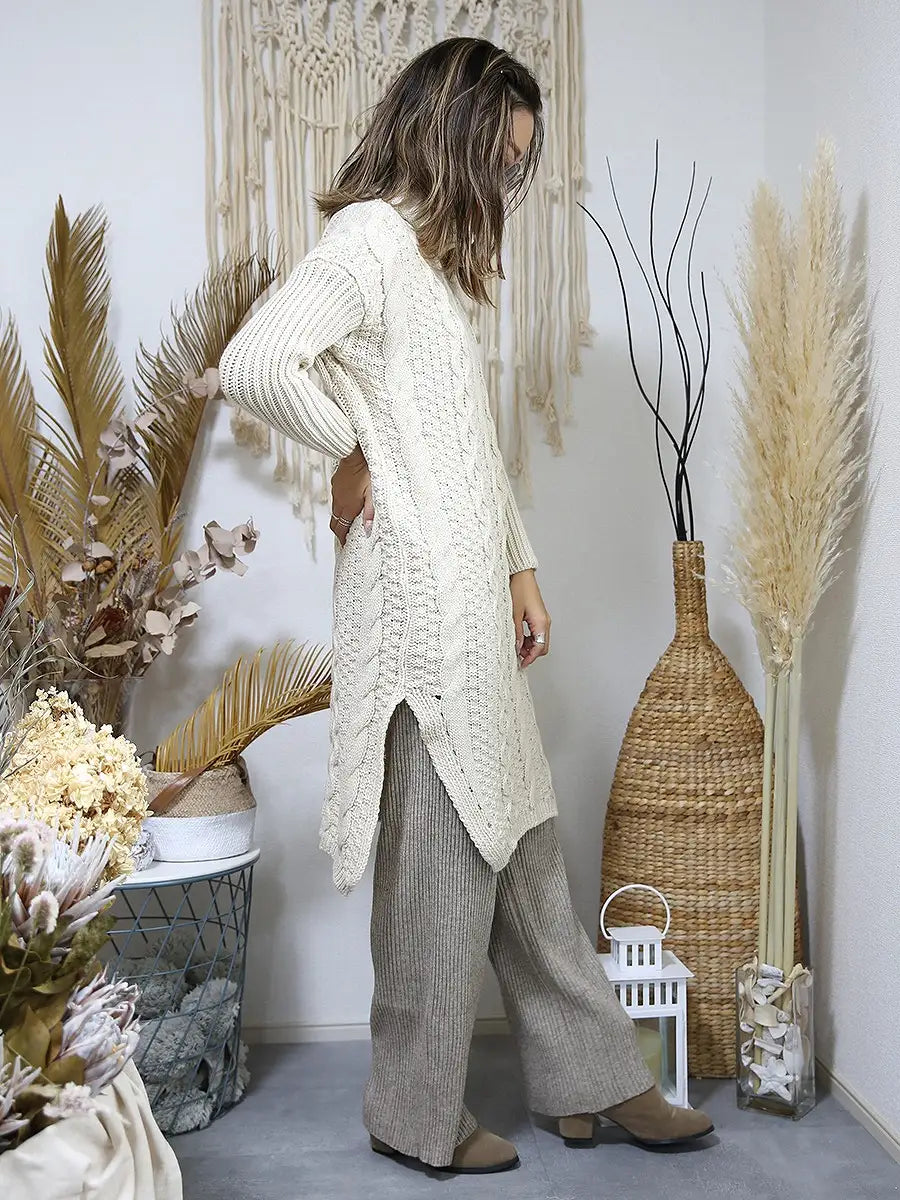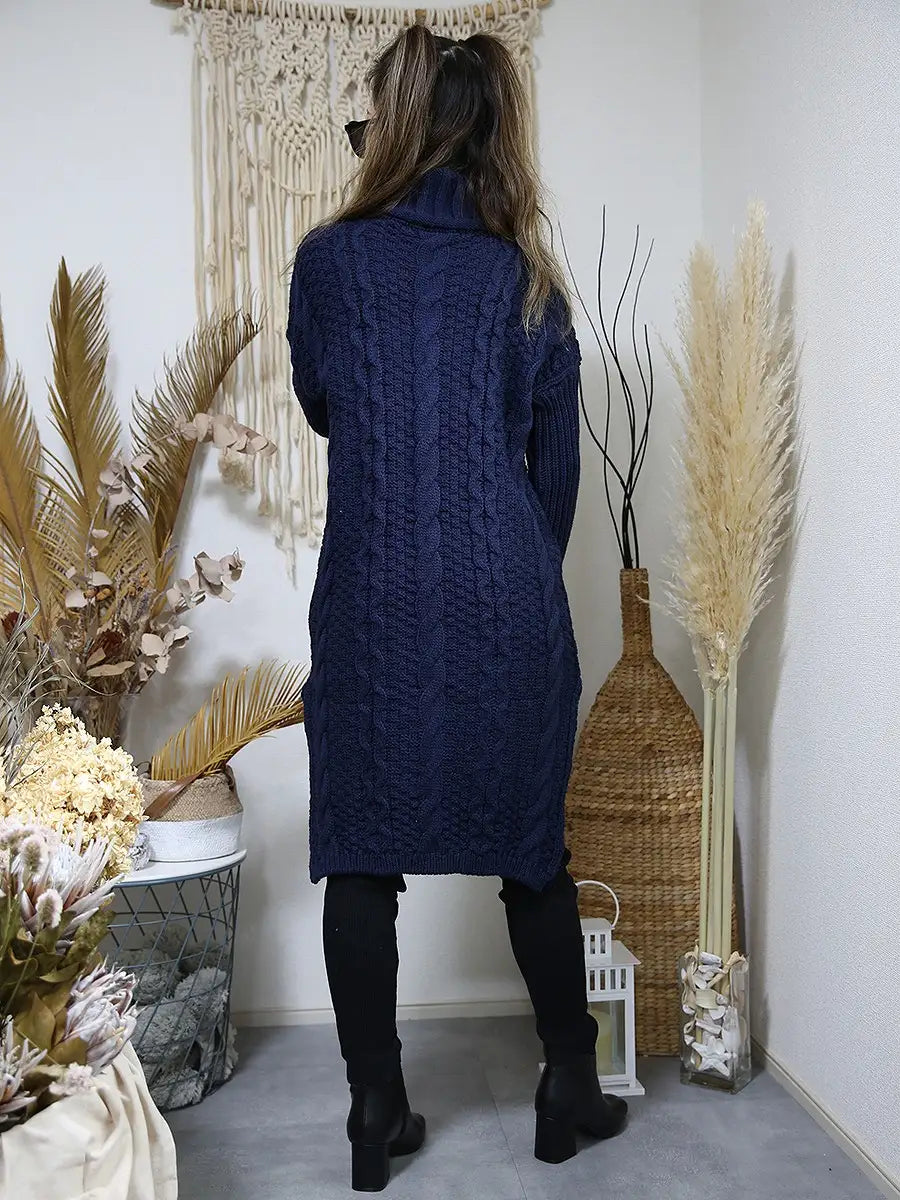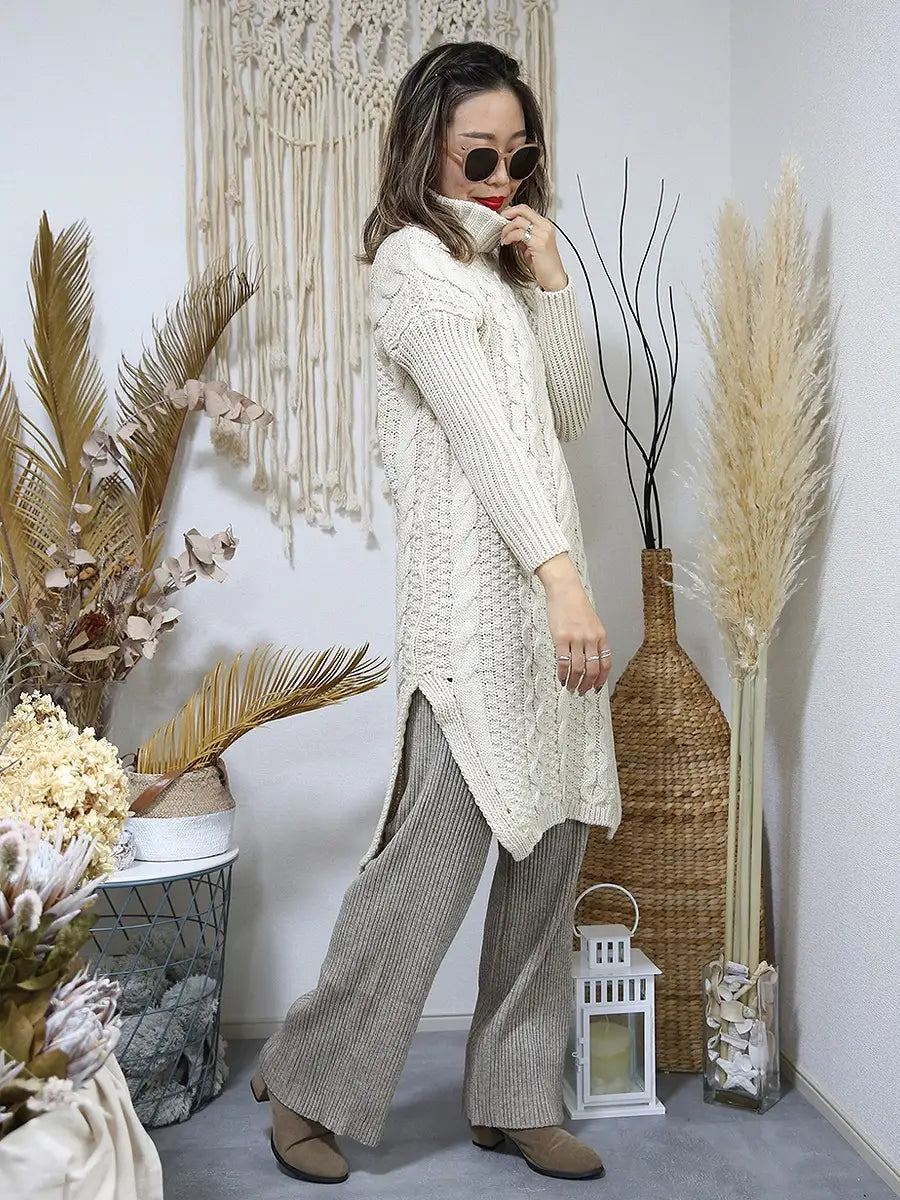 roomy by the sea(ルーミーバイザシー)タートルネックのケーブル編みニットワンピース。