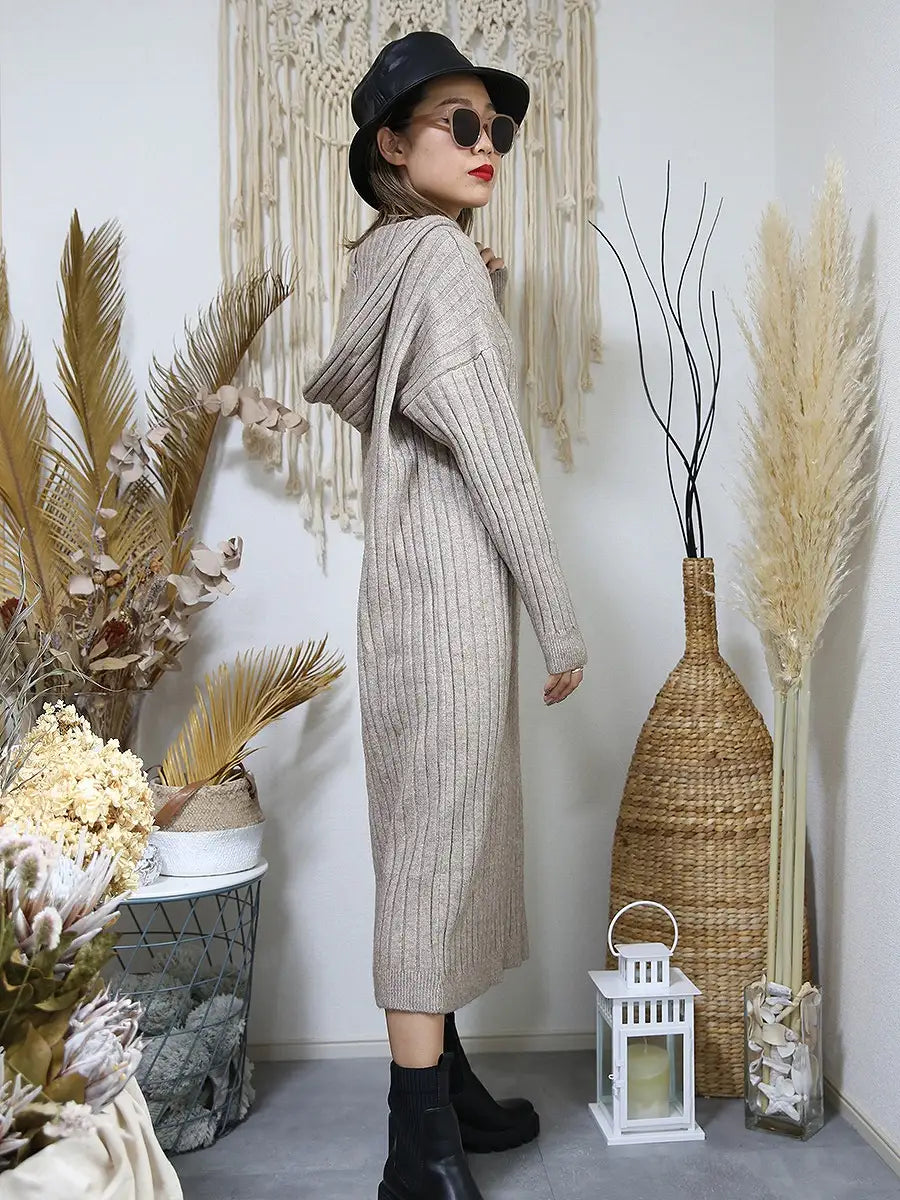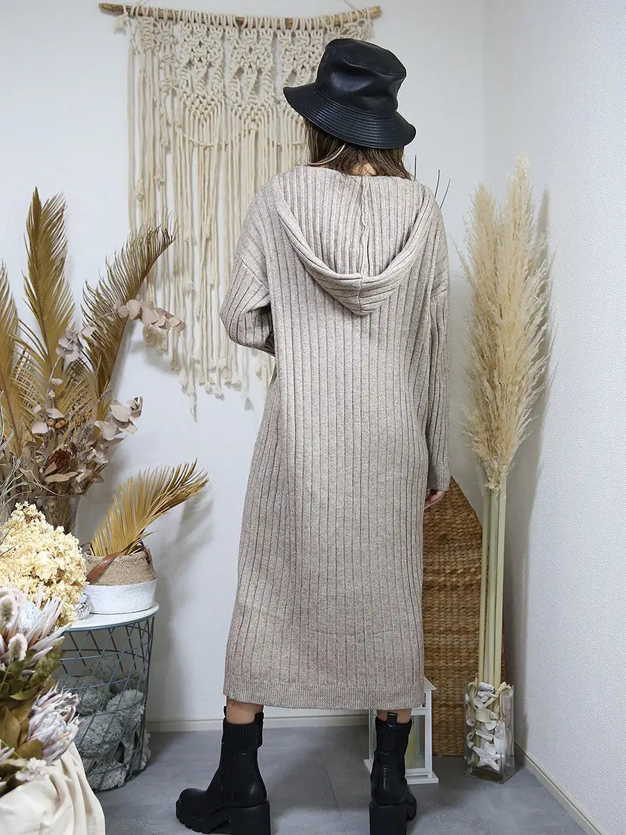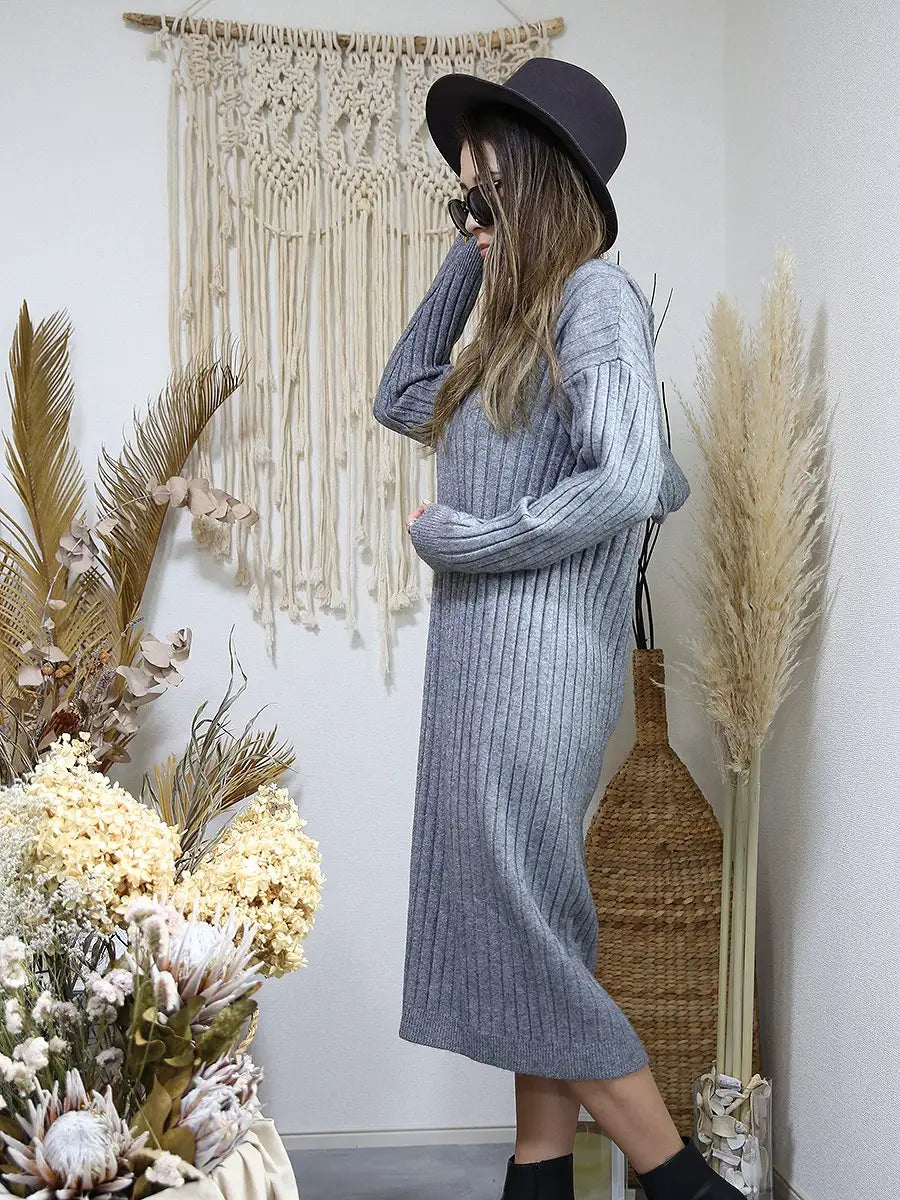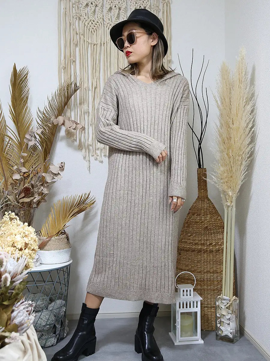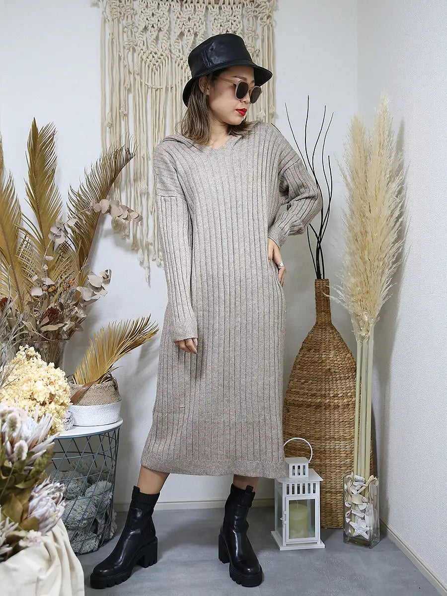 roomy by the sea(ルーミーバイザシー)フード付きリブニットワンピース