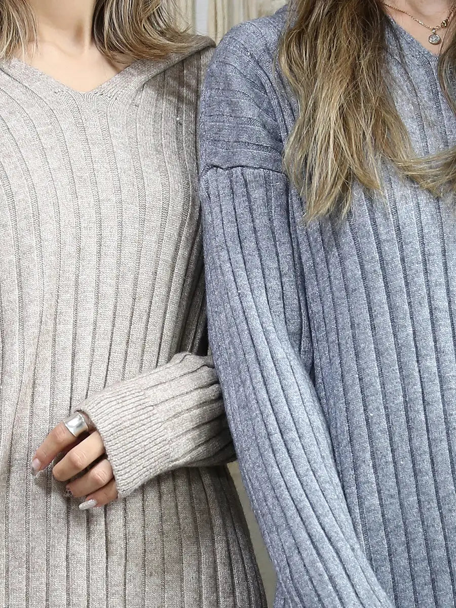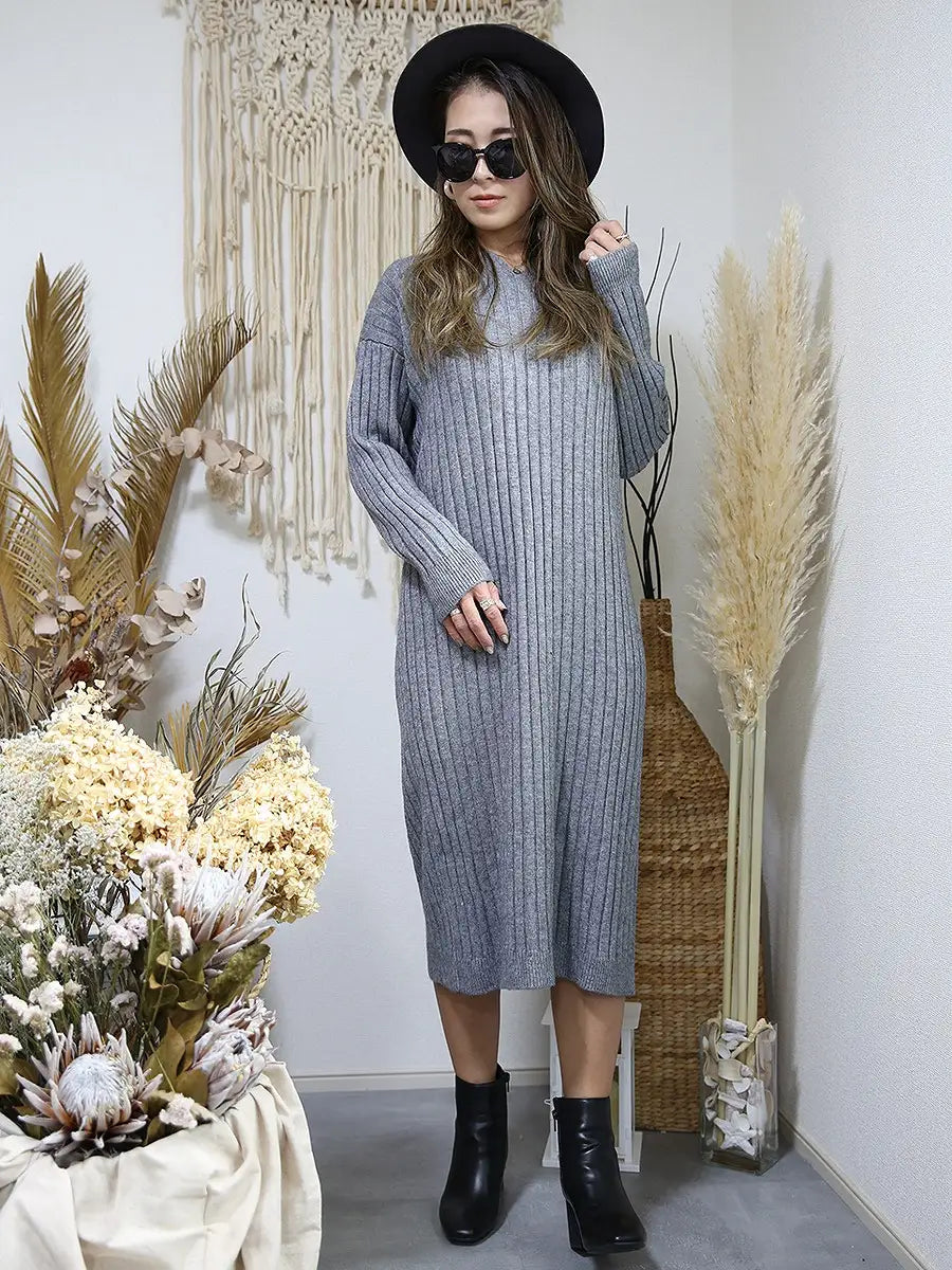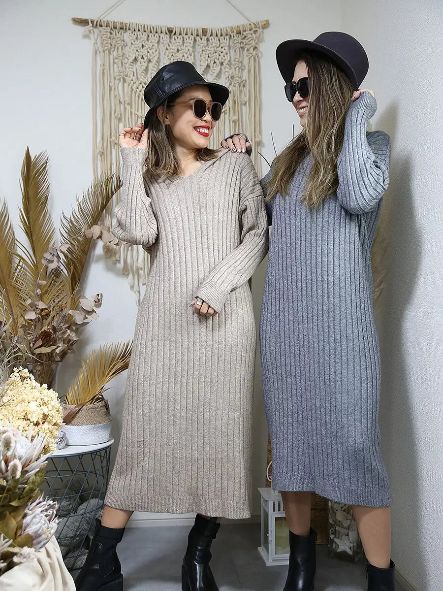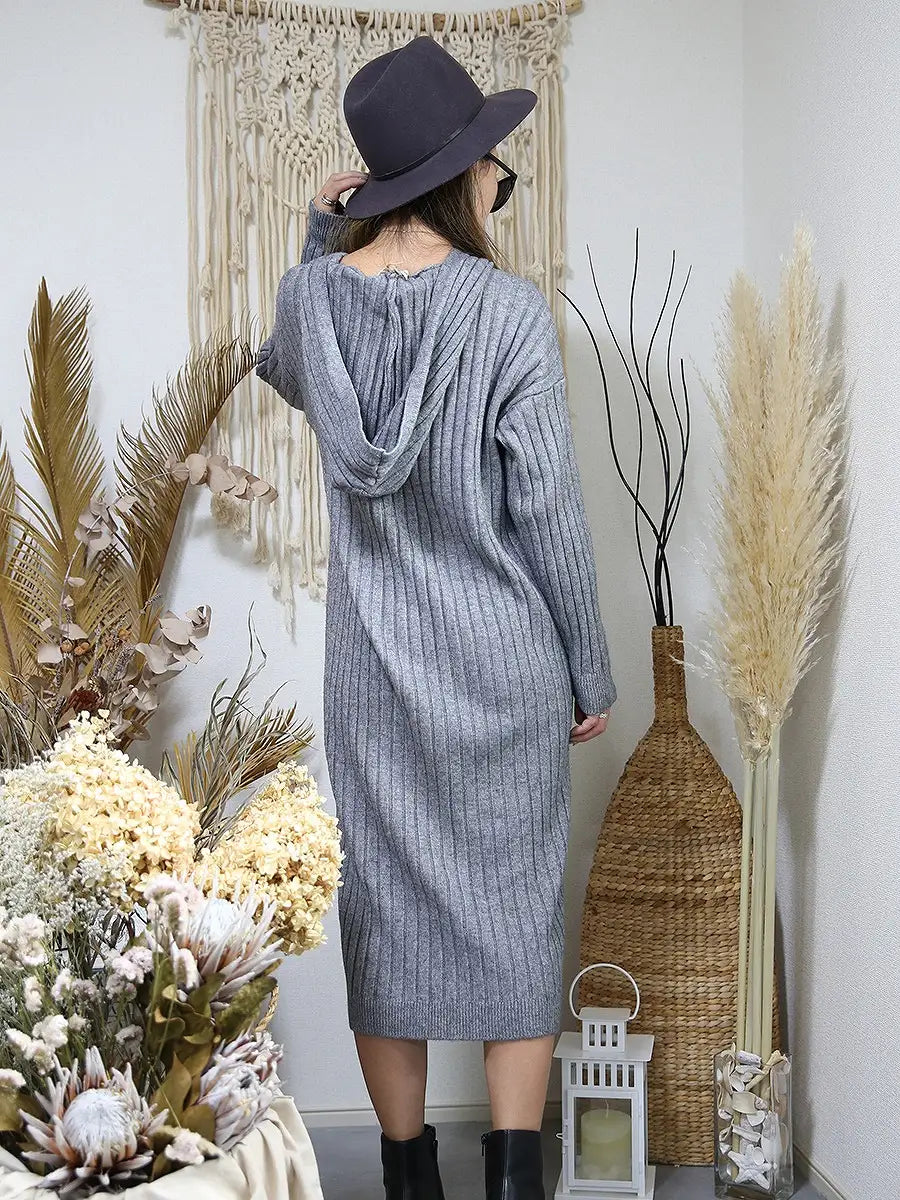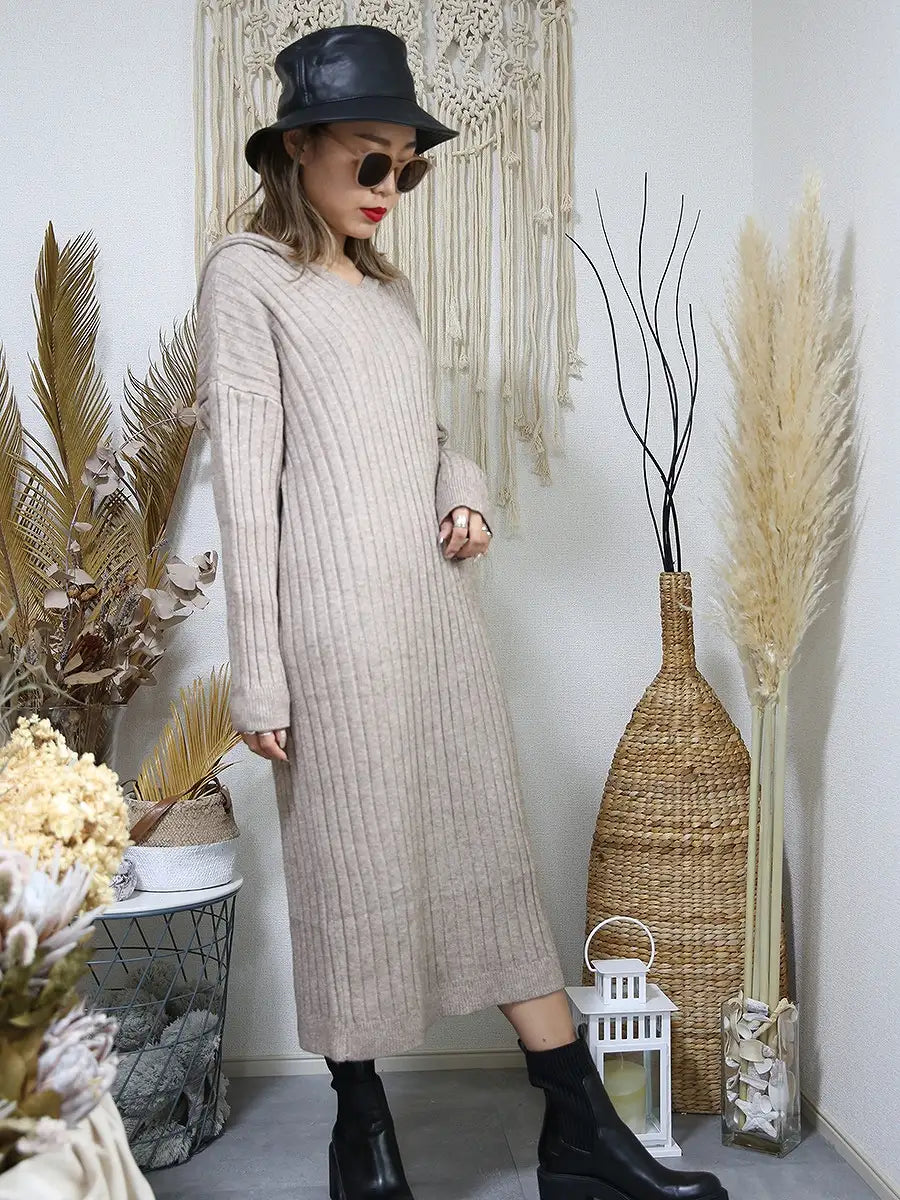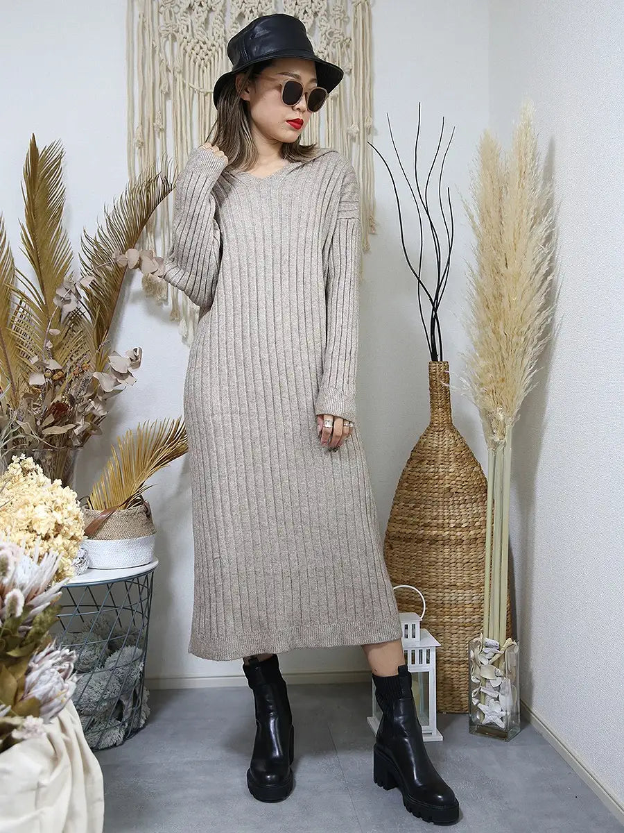 roomy by the sea(ルーミーバイザシー)フード付きリブニットワンピース