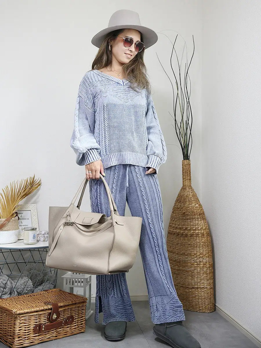 ヴィンテージコットンニットセットアップ/トップス+パンツ