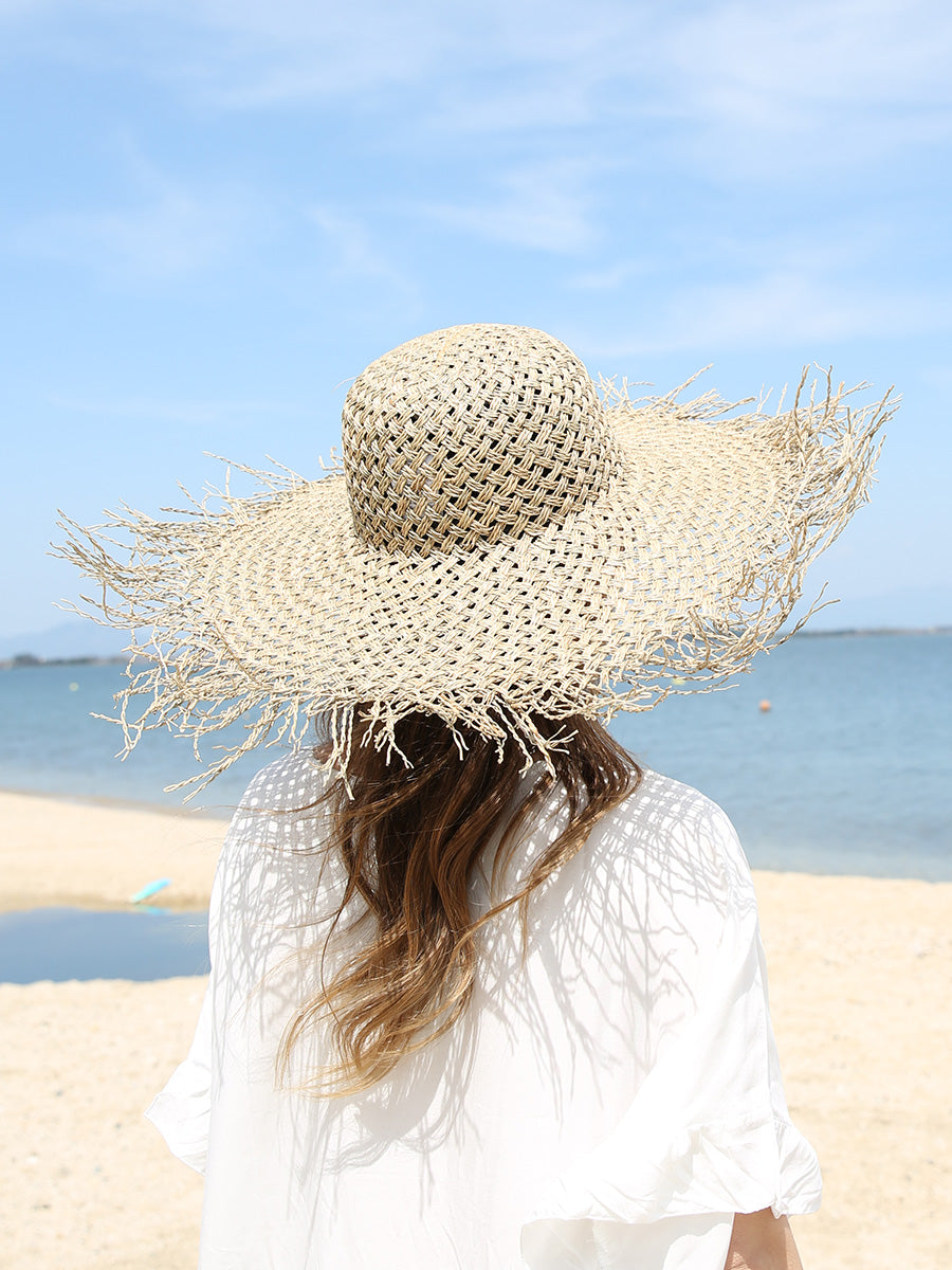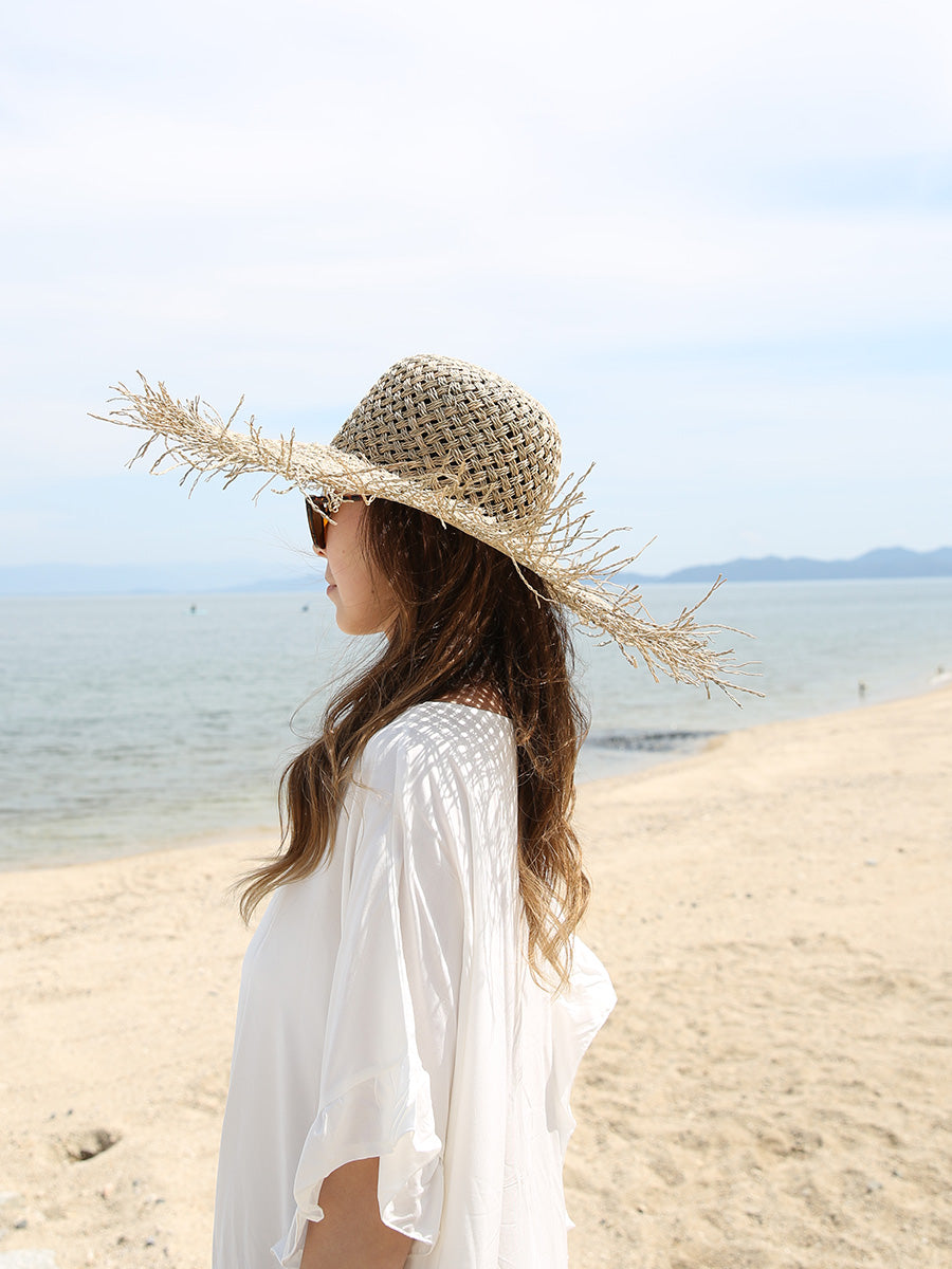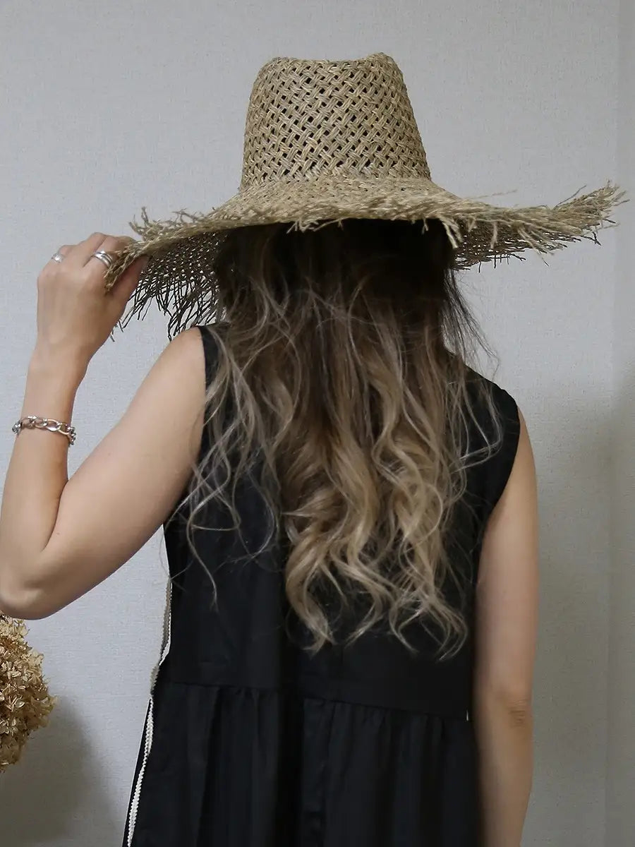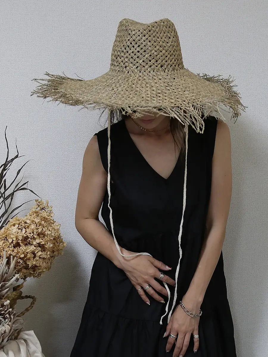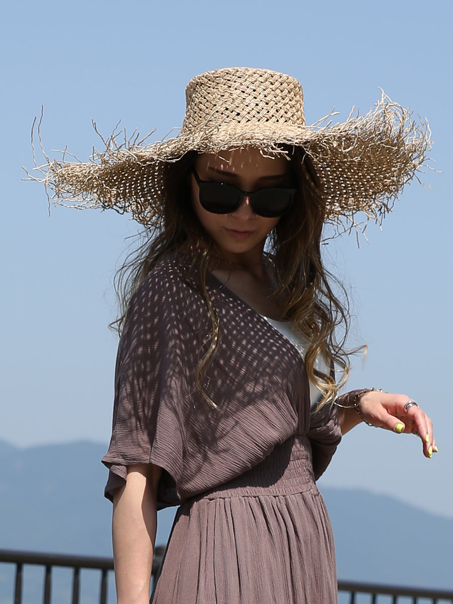つば広ストローハット/フラット,ラウンド,パナマ