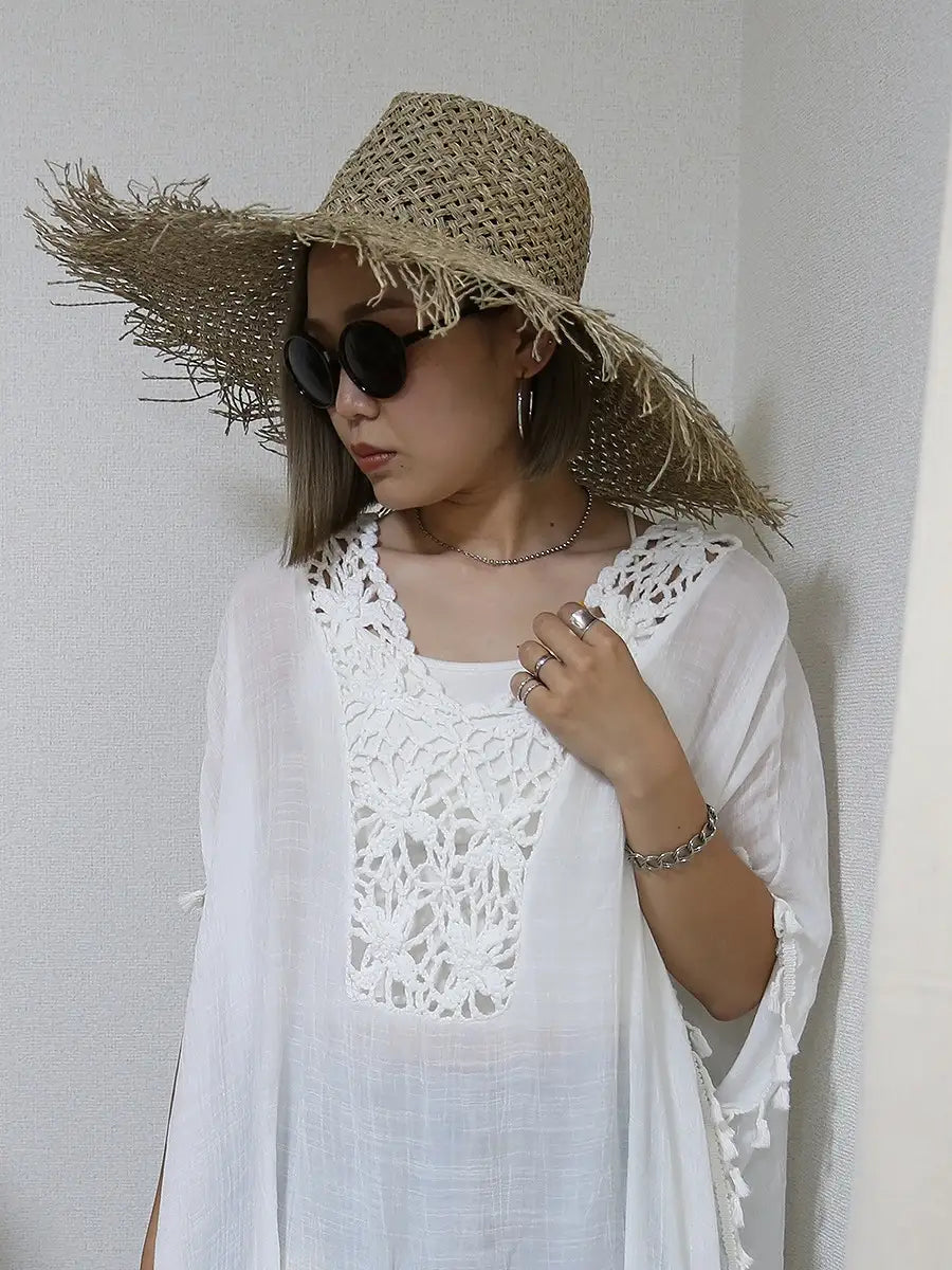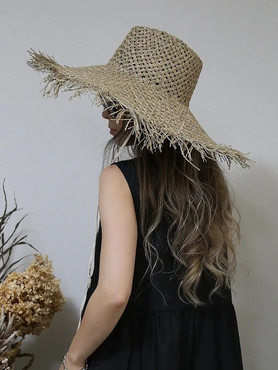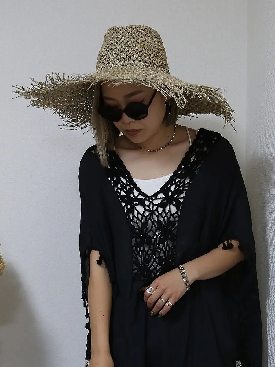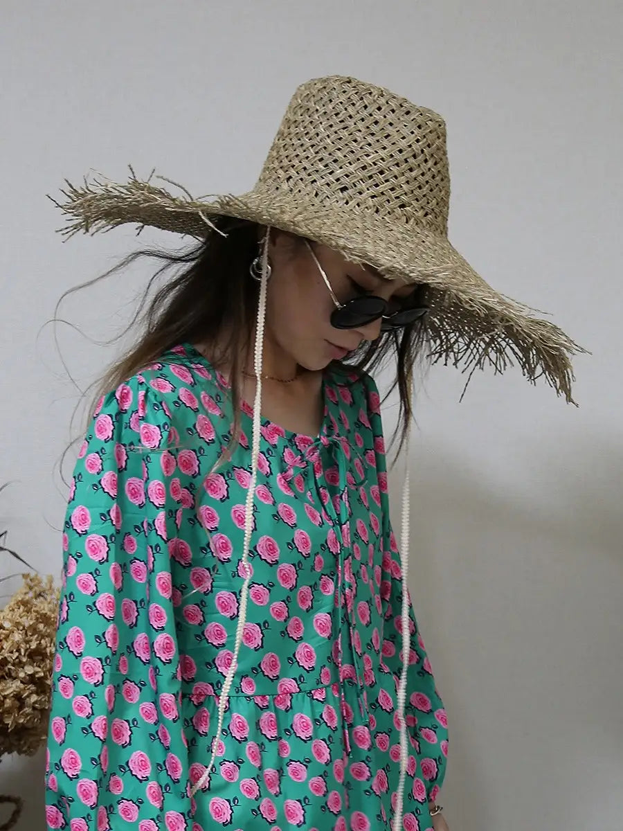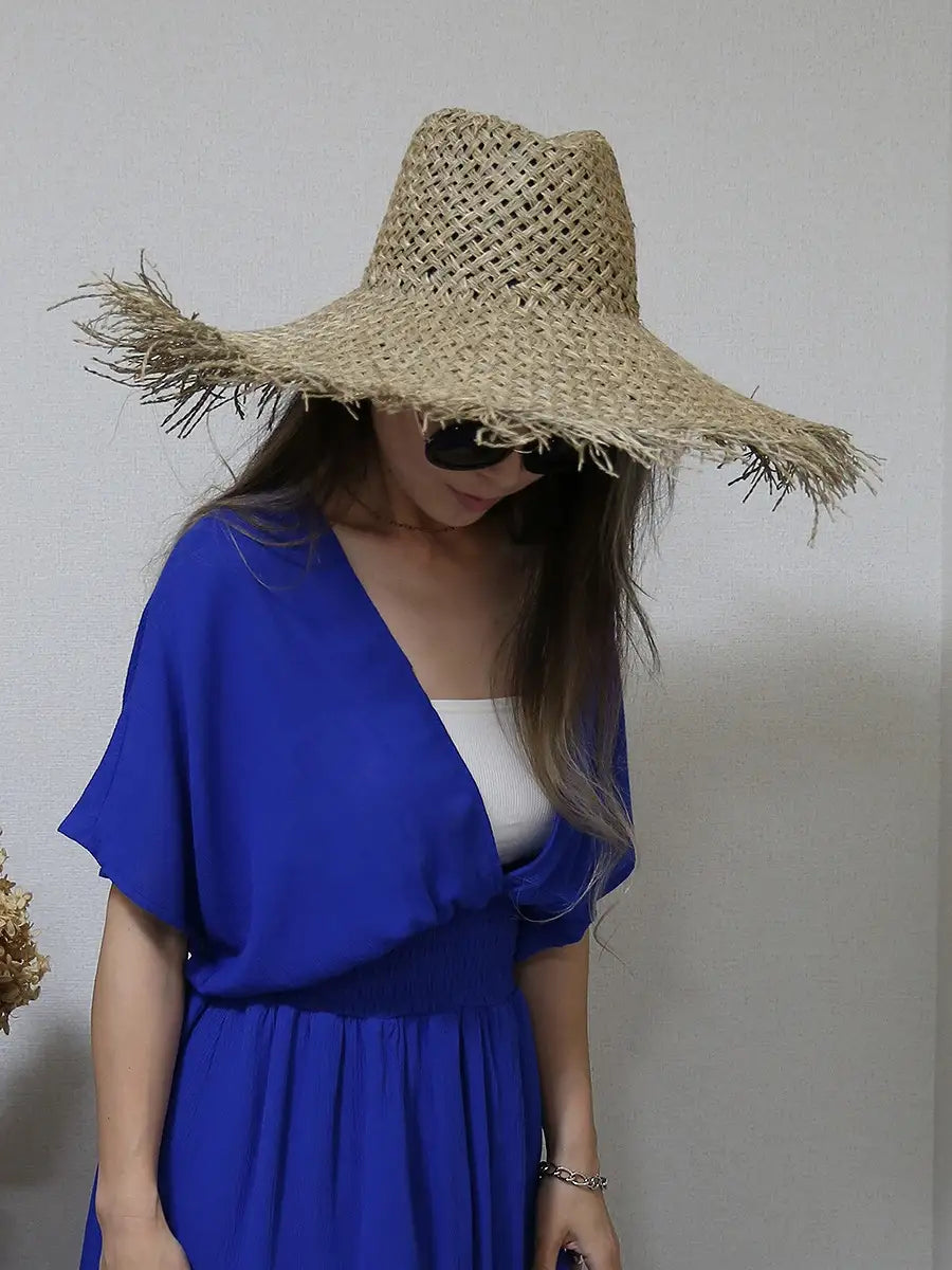 つば広ストローハット/フラット,ラウンド,パナマ