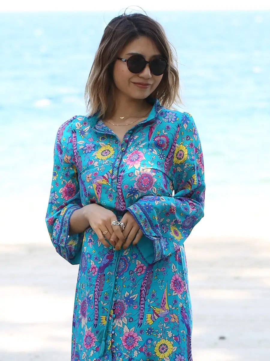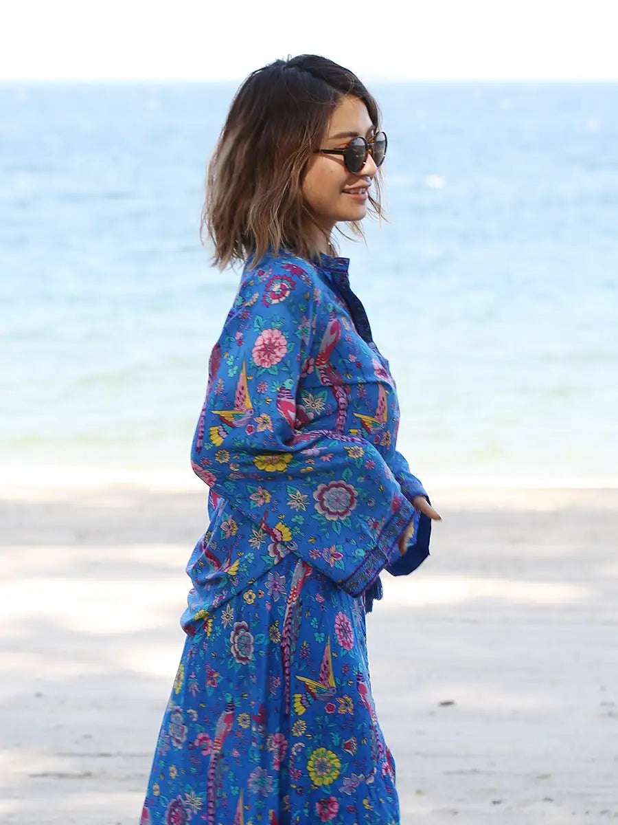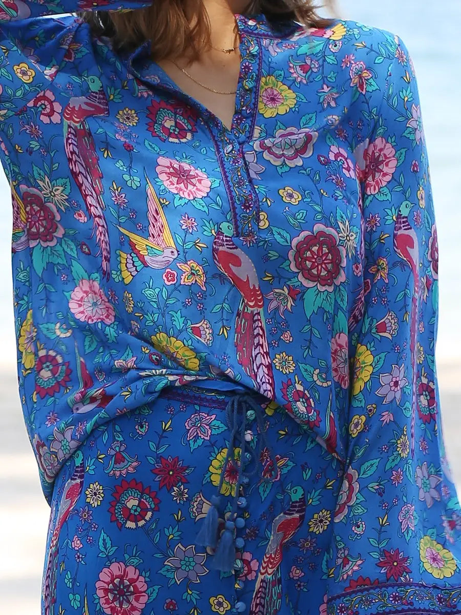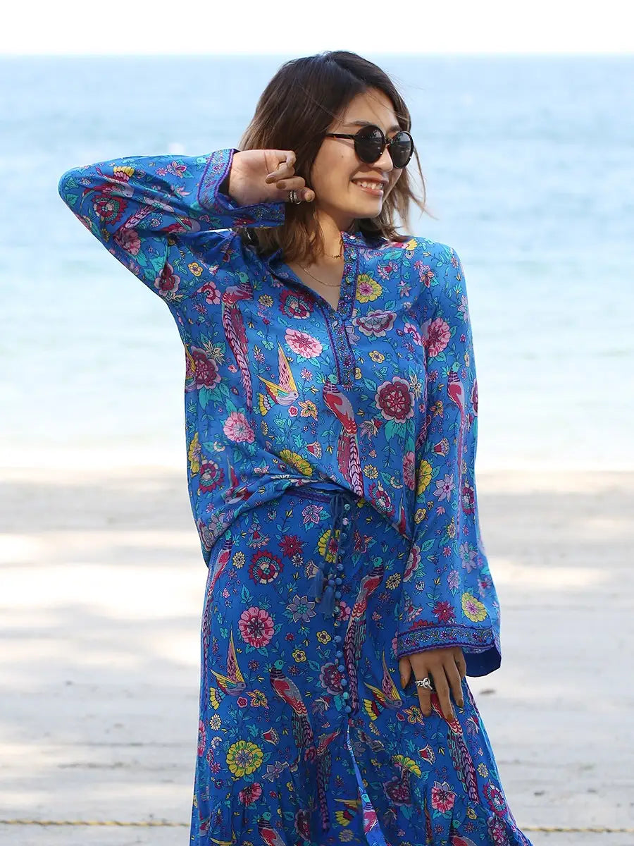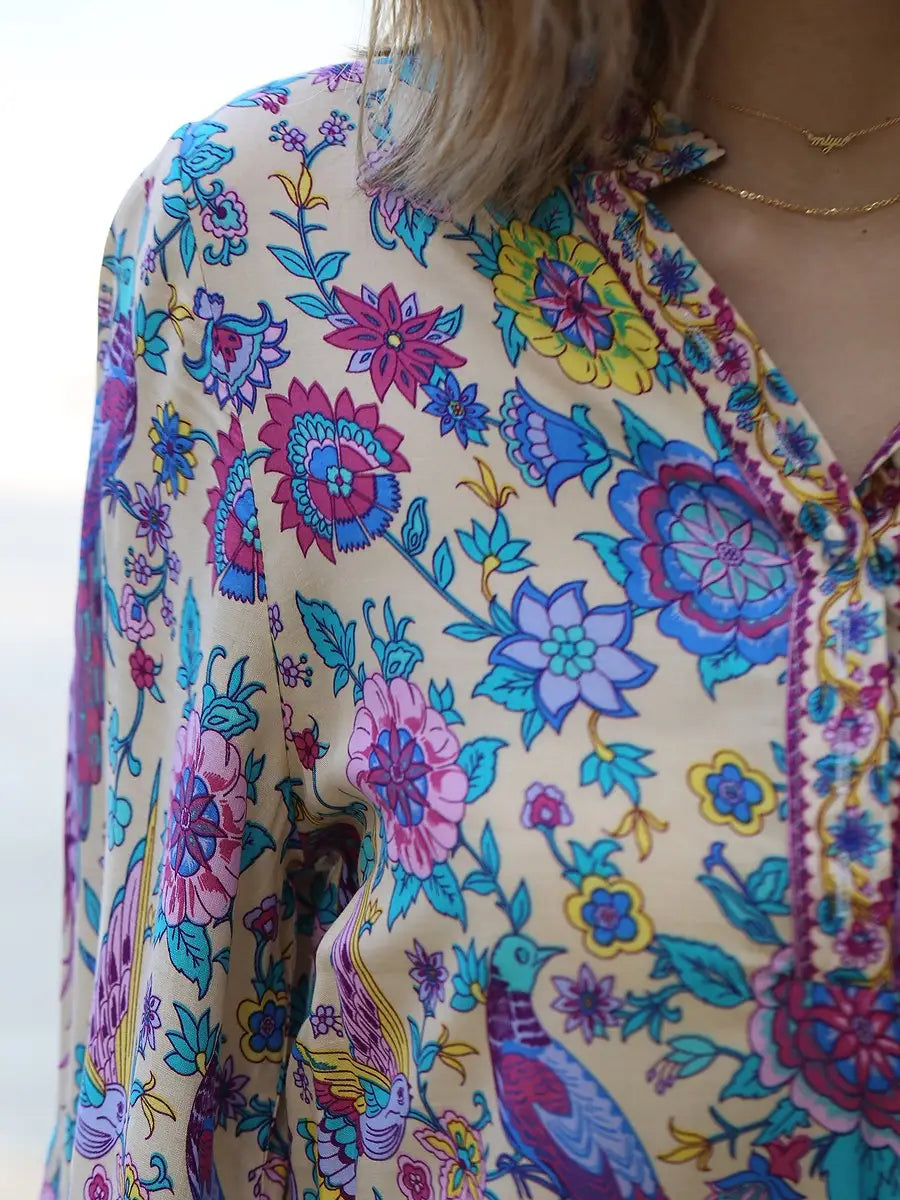 ビーチ・リゾートシーンで着用して頂きたい花柄バードプリントの長袖トップス。