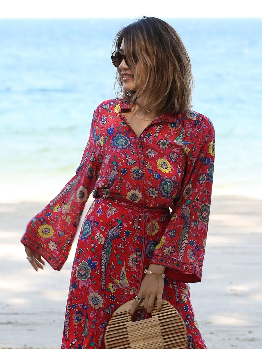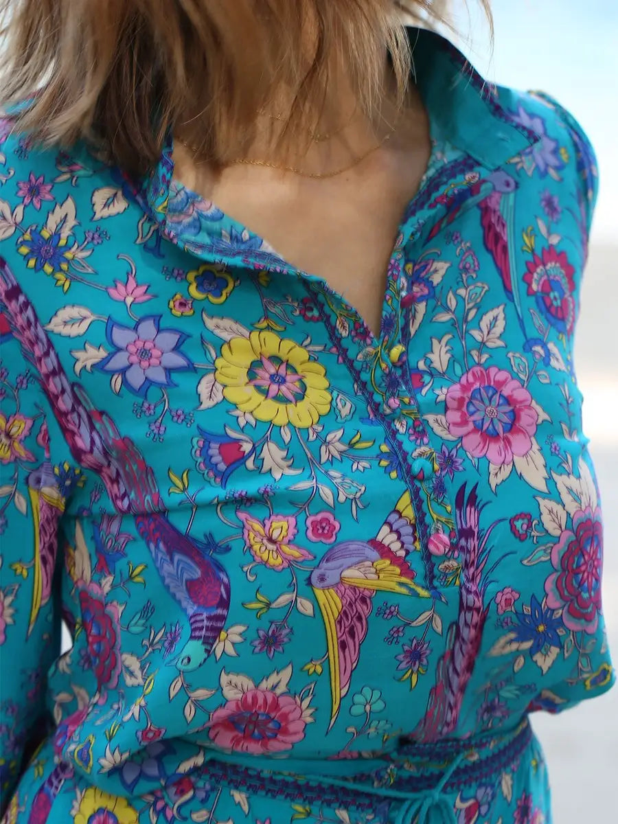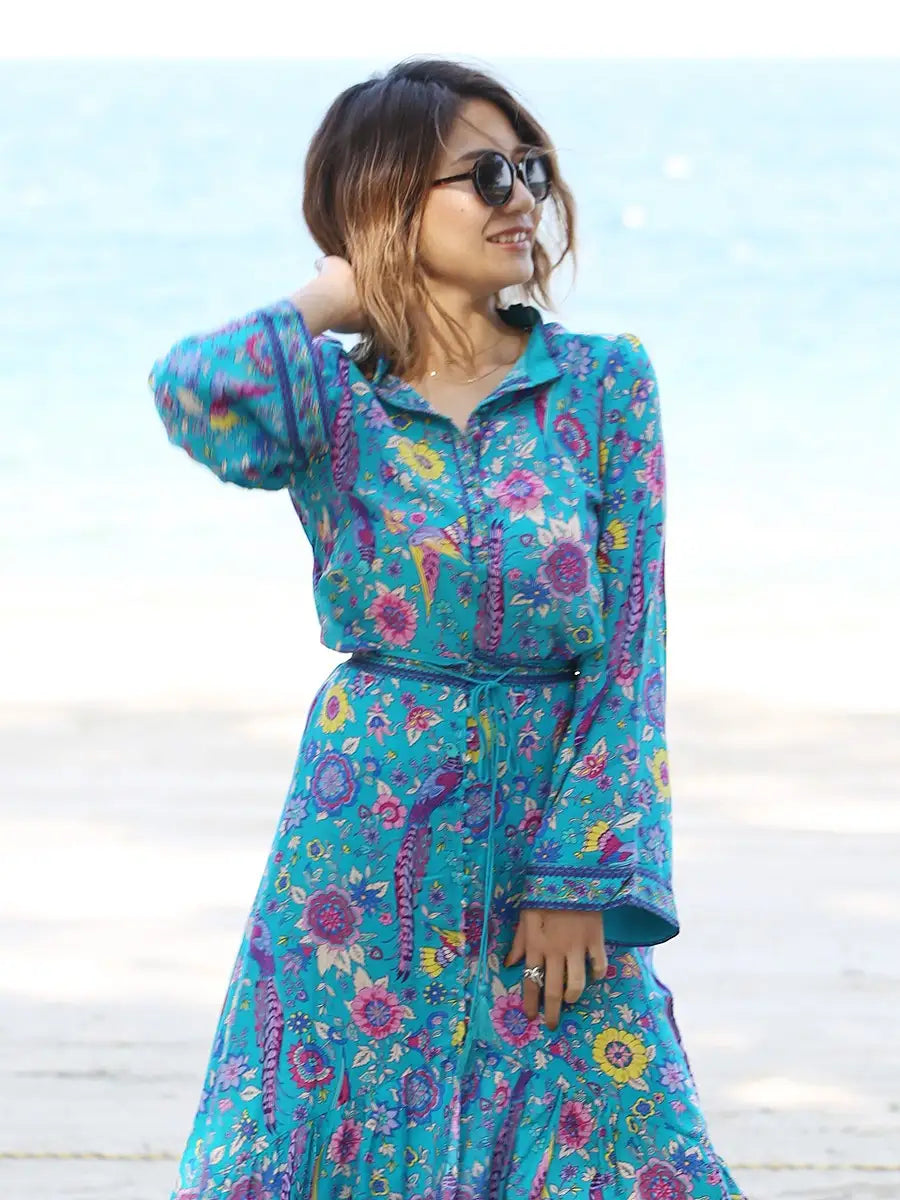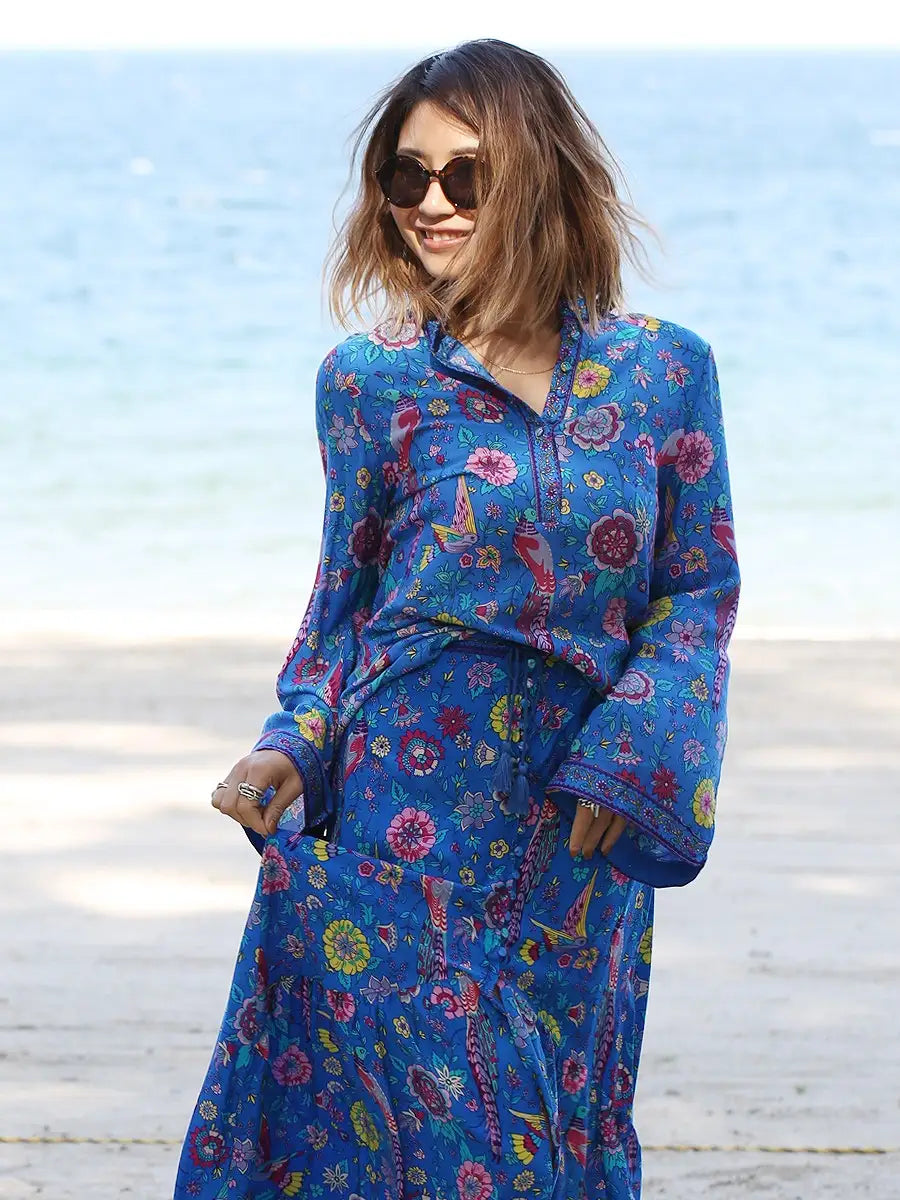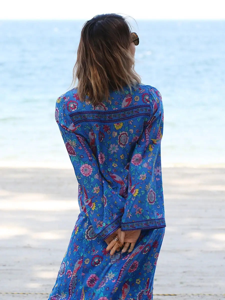 ビーチ・リゾートシーンで着用して頂きたい花柄バードプリントの長袖トップス。