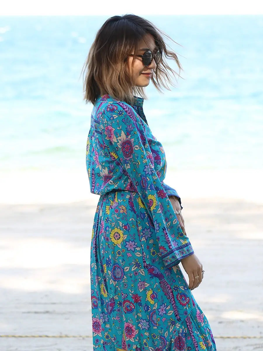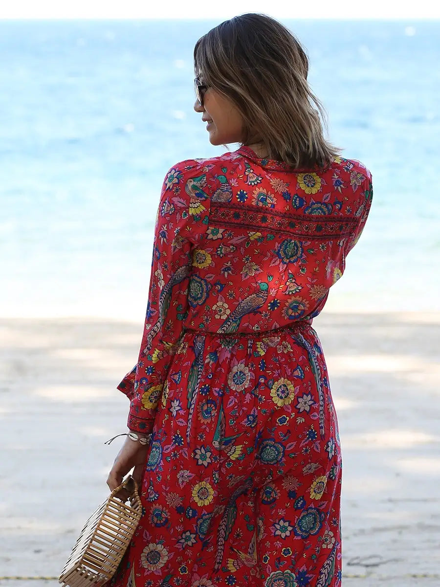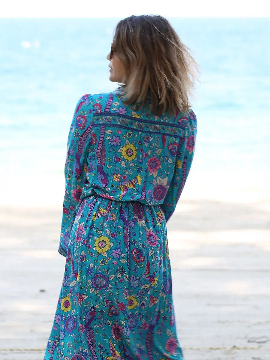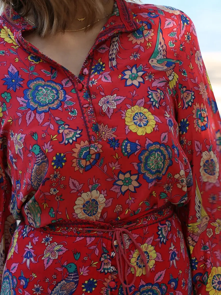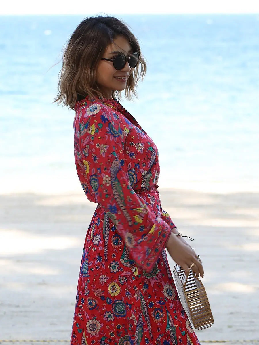 ビーチ・リゾートシーンで着用して頂きたい花柄バードプリントの長袖トップス。