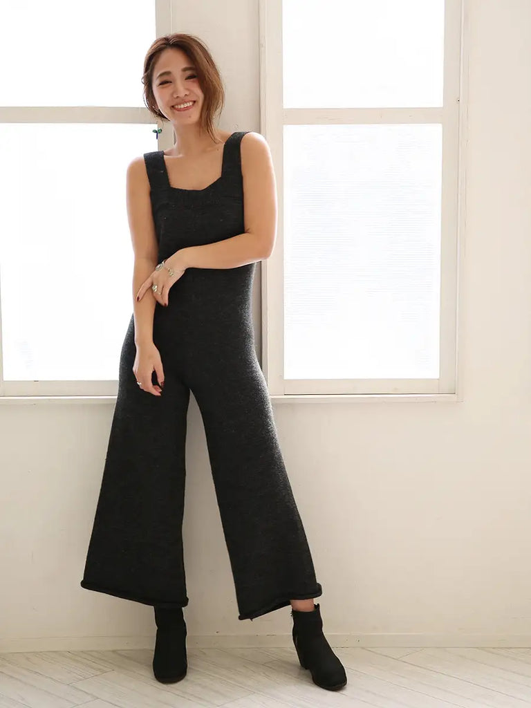 roomy by the sea(ルーミーバイザシー)ワイドパンツクールニットロンパース