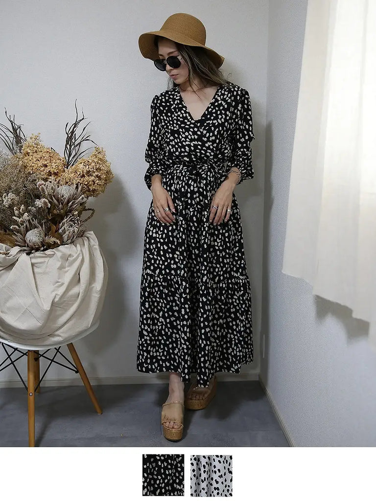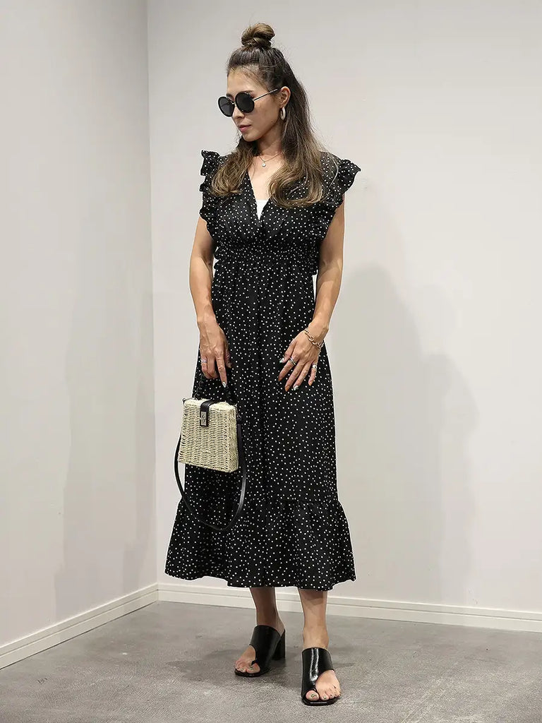 roomy by the sea(ルーミーバイザシー)ドット柄五分袖ミモレ丈ワンピース