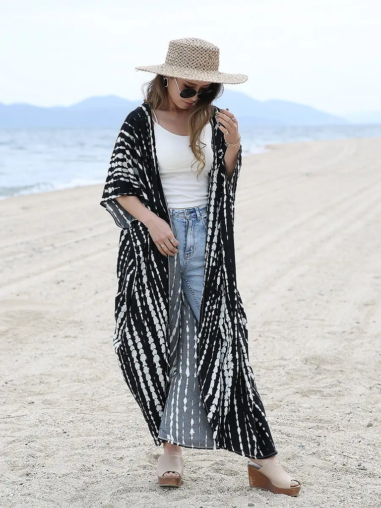 romy by the sea(ルーミーバイザシー)ウェービーモノクロドルマンマキシワンピース