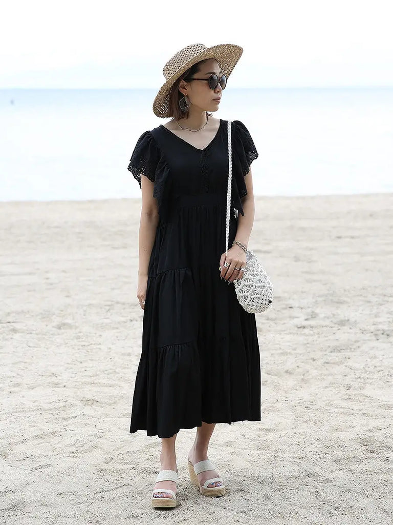 roomy by the sea(ルーミーバイザシー)刺繍半袖マキシワンピース