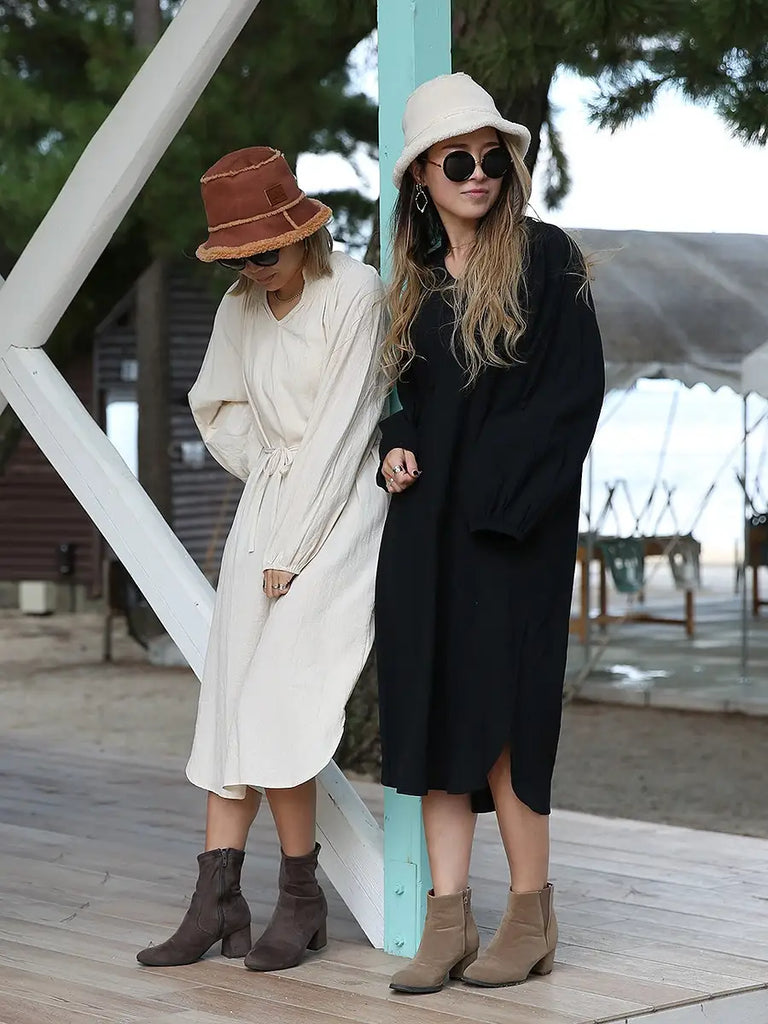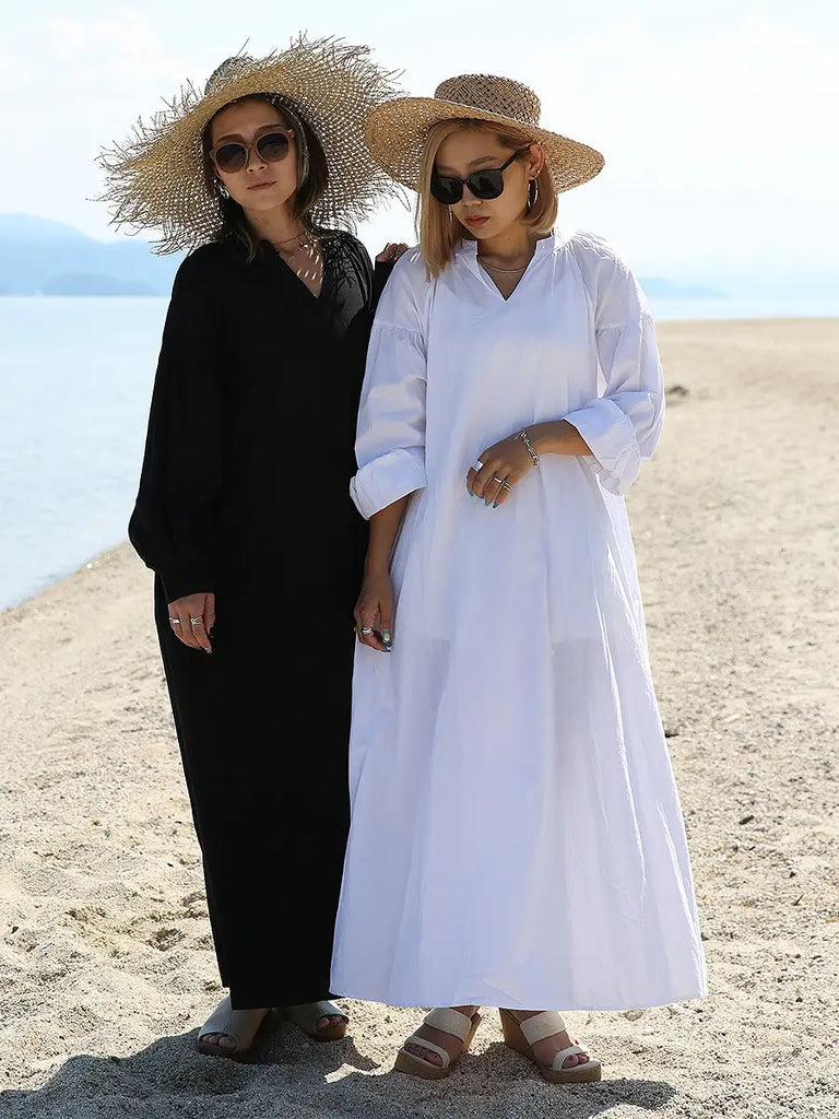 roomy by the sea(ルーミーバイザシー)シンプルな長袖マキシワンピース