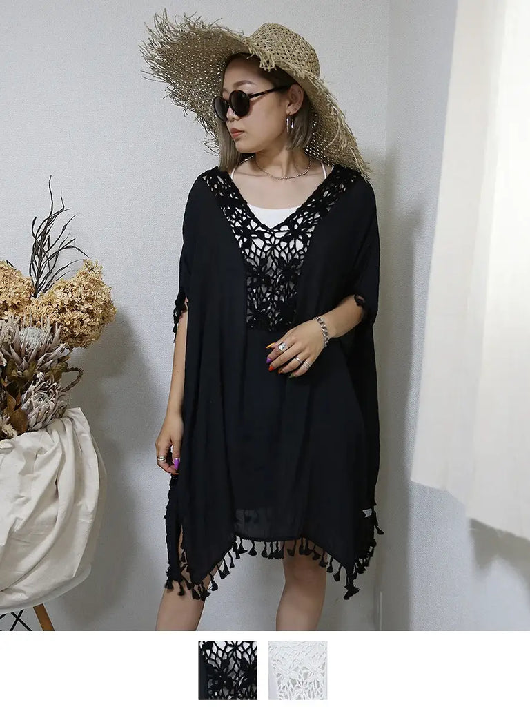 roomy by the sea(ルーミーバイザシー)クロシェ編みタッセルチュニックワンピース