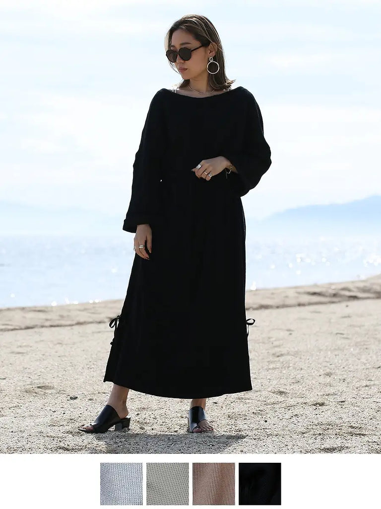 roomy by the sea(ルーミーバイザシー)サマーニット深スリットマキシワンピース