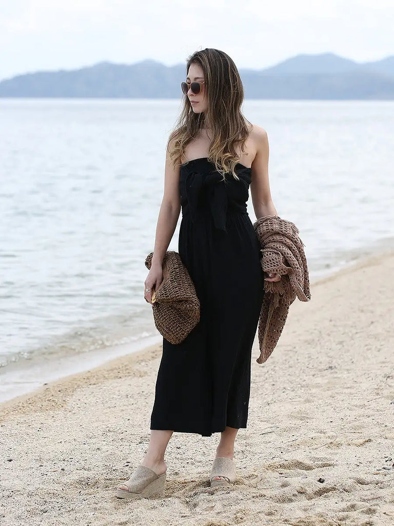 roomy by the sea(ルーミーバイザシー)シンプルなフレア黒マキシワンピース