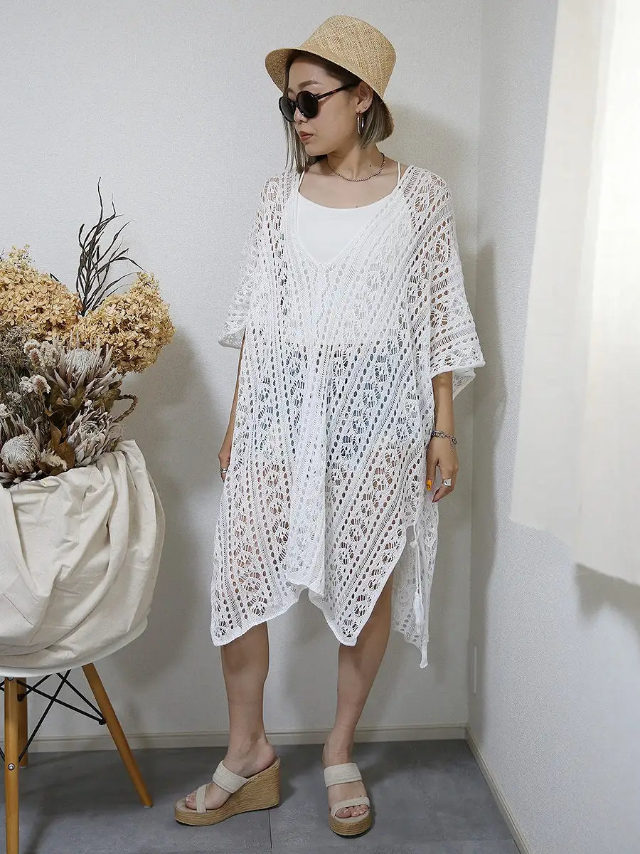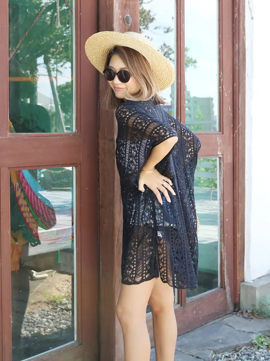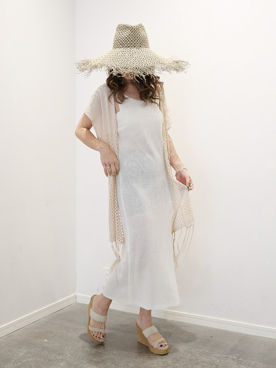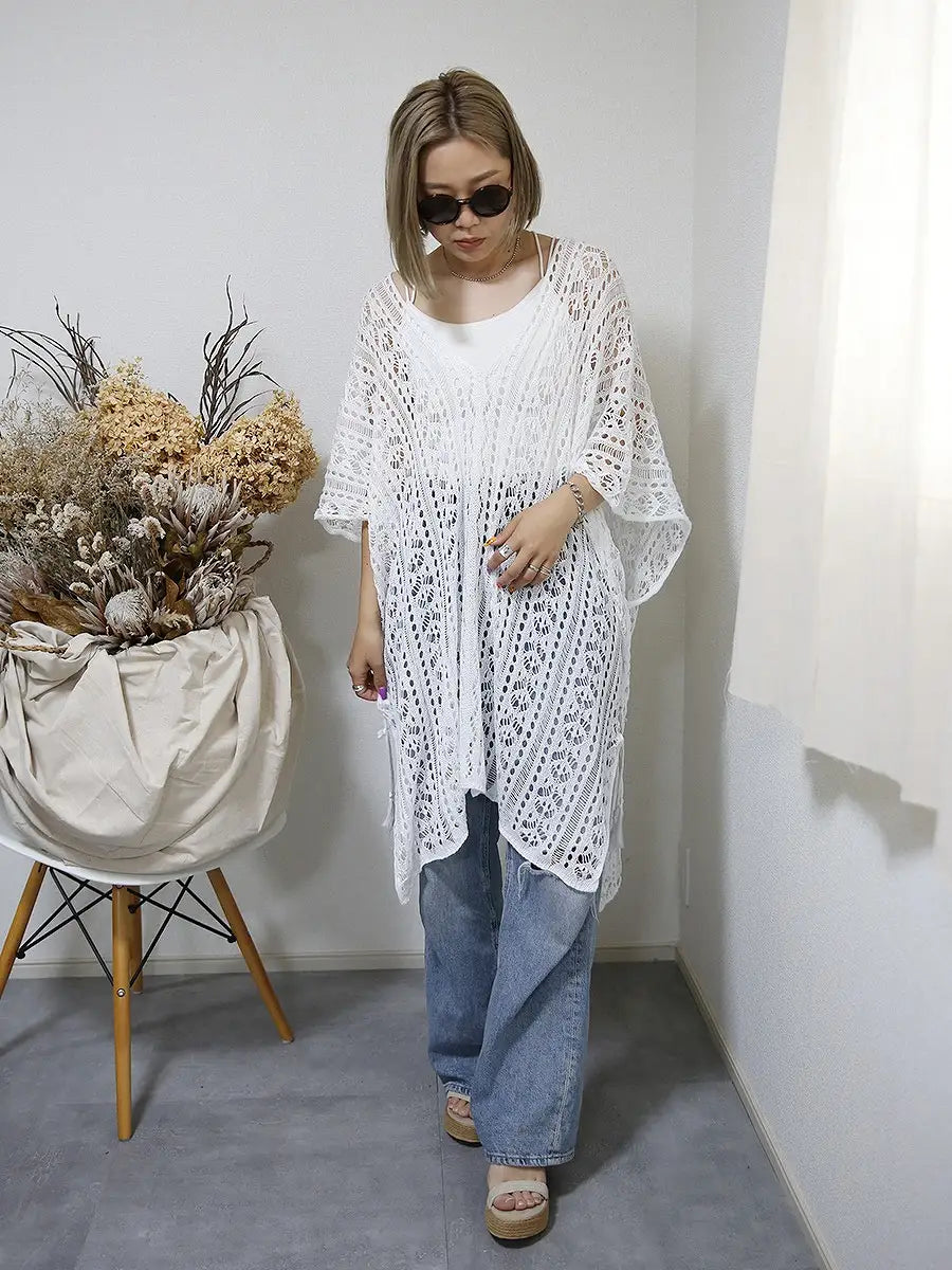 roomy by the sea(ルーミーバイザシー)背中ラウンドクロシェ編みフリンジカバーアップ羽織り